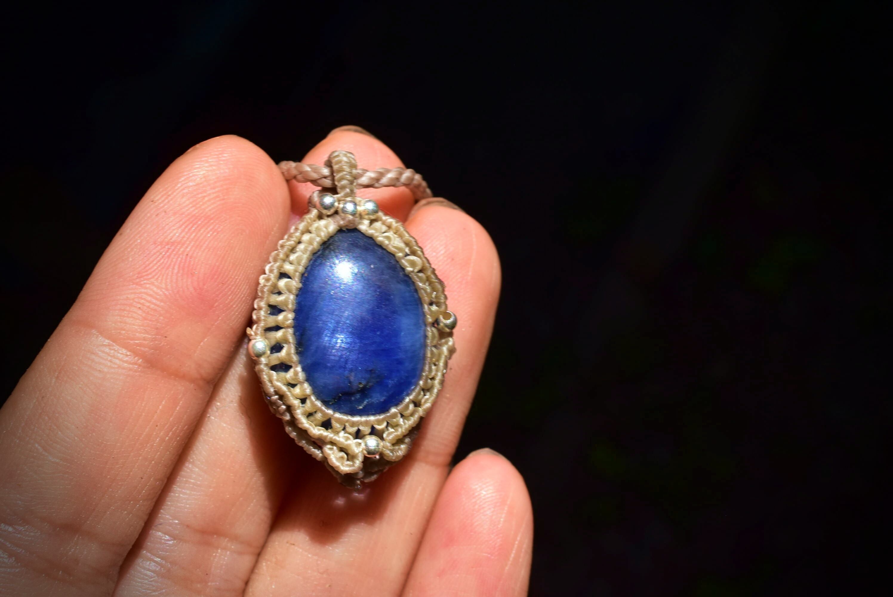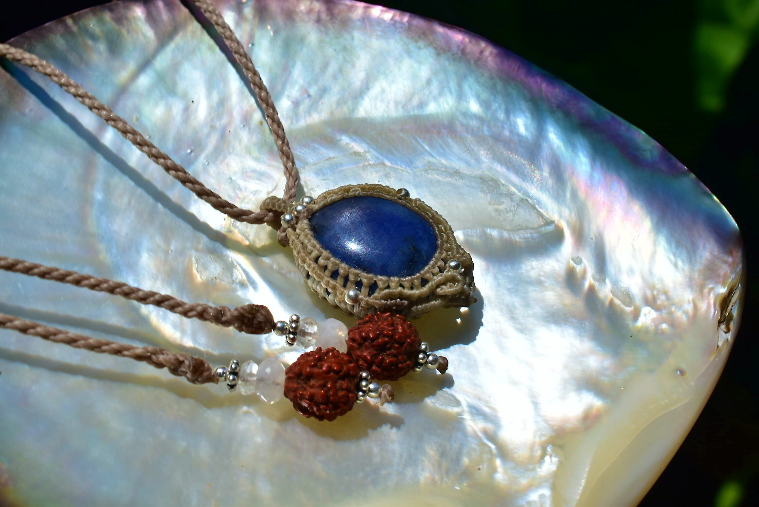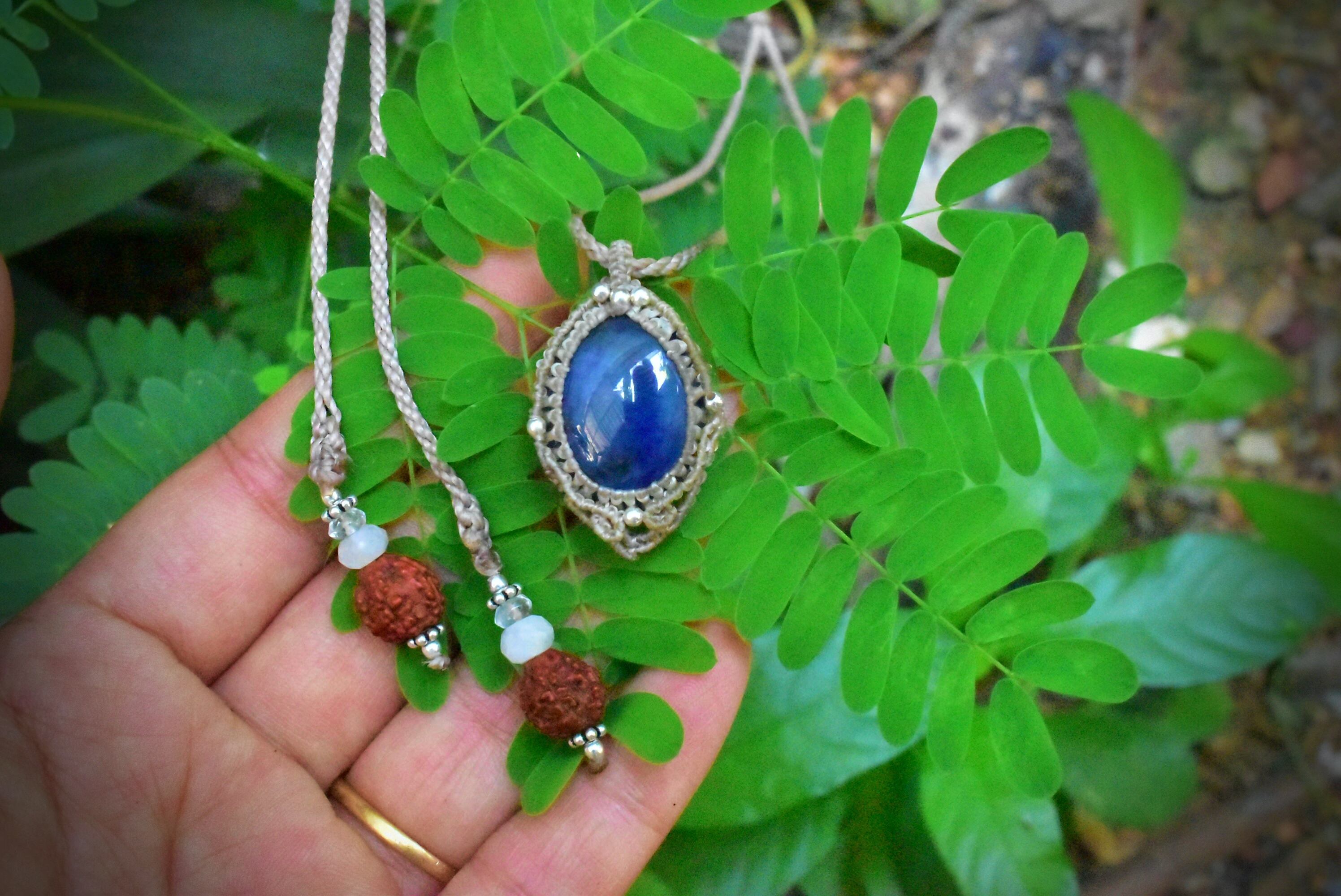 石の周りをアンティークなイメージでマクラメ編み装飾を施し