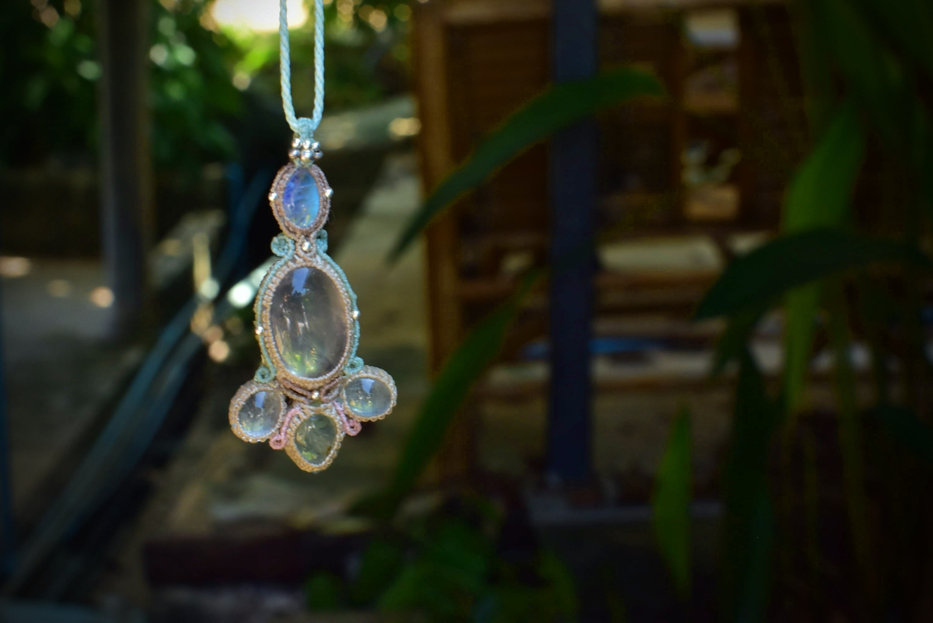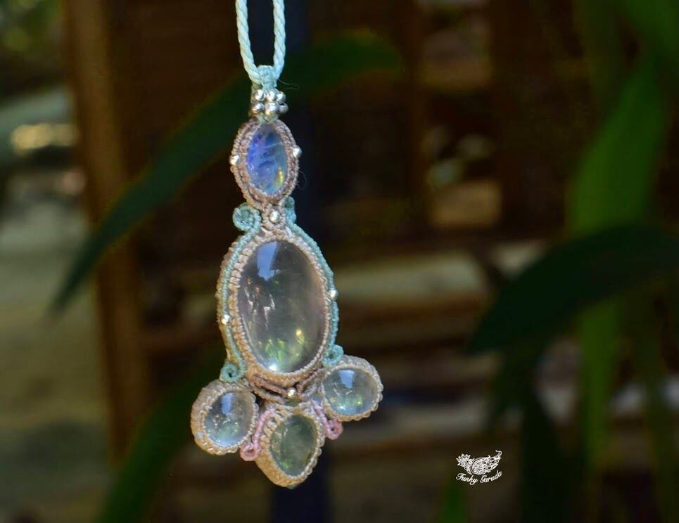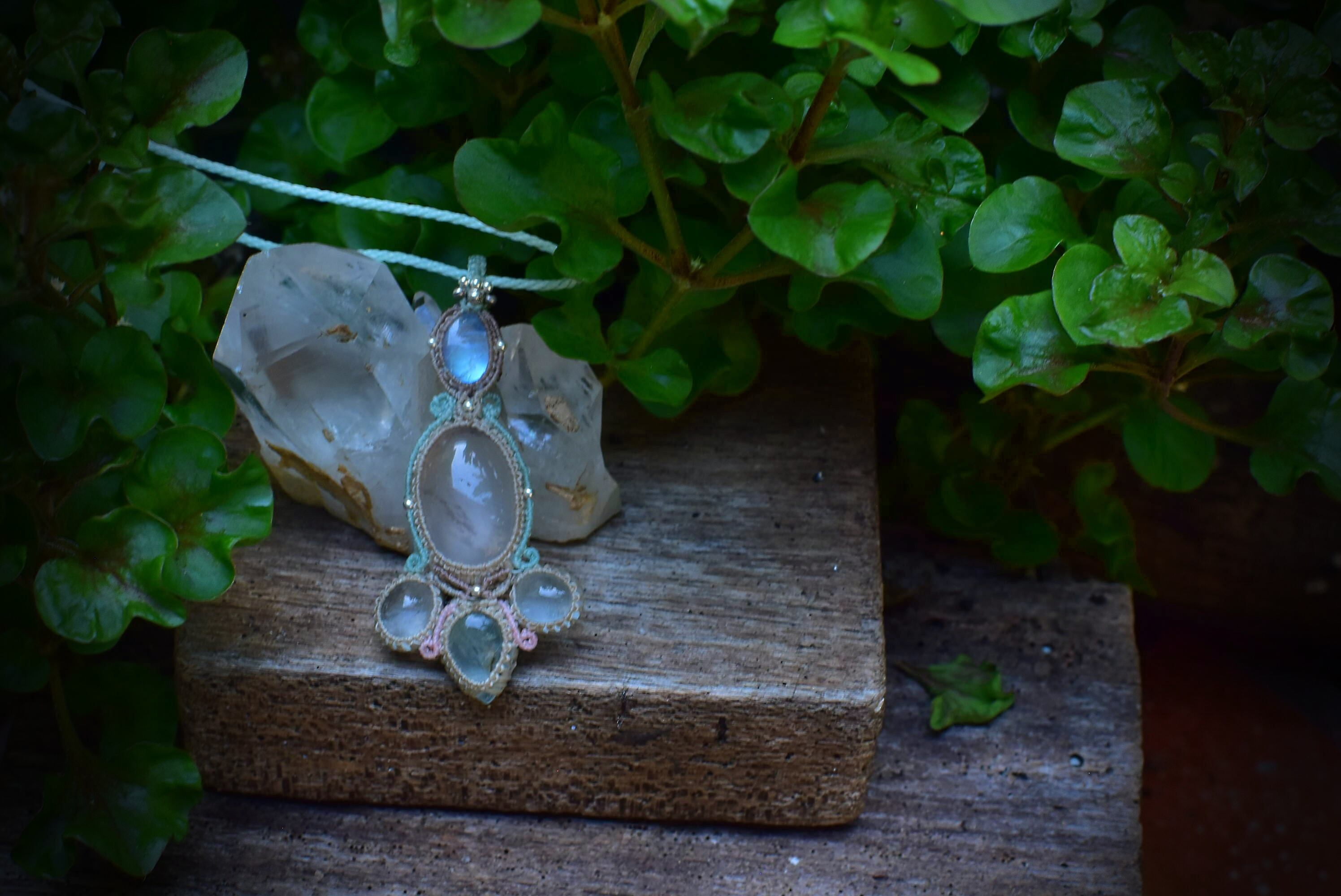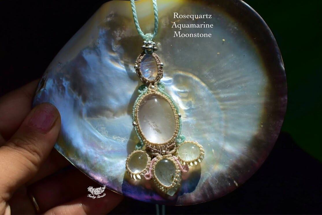ほのかな輝き★高品質ローズクォーツ ムーンストーン マクラメペンダントsrose003