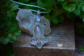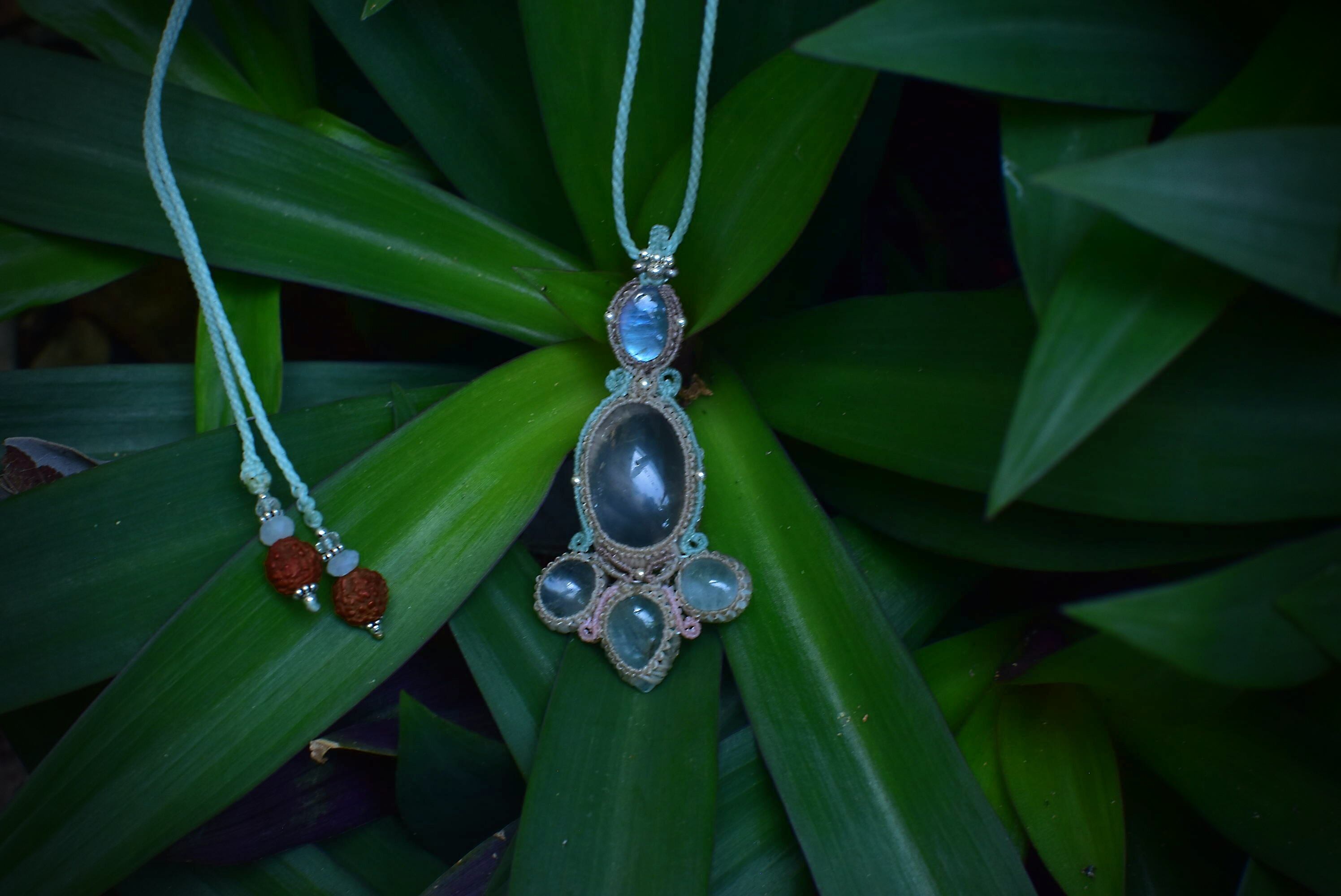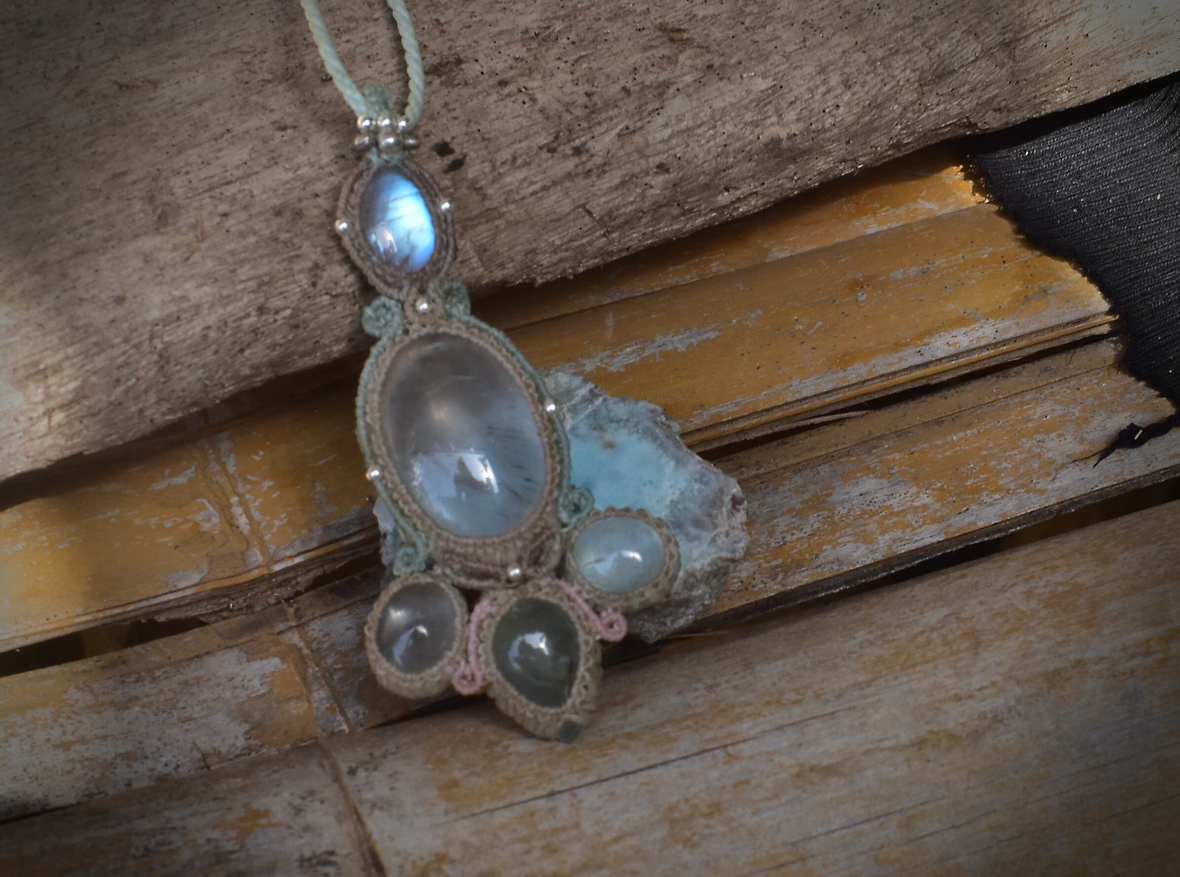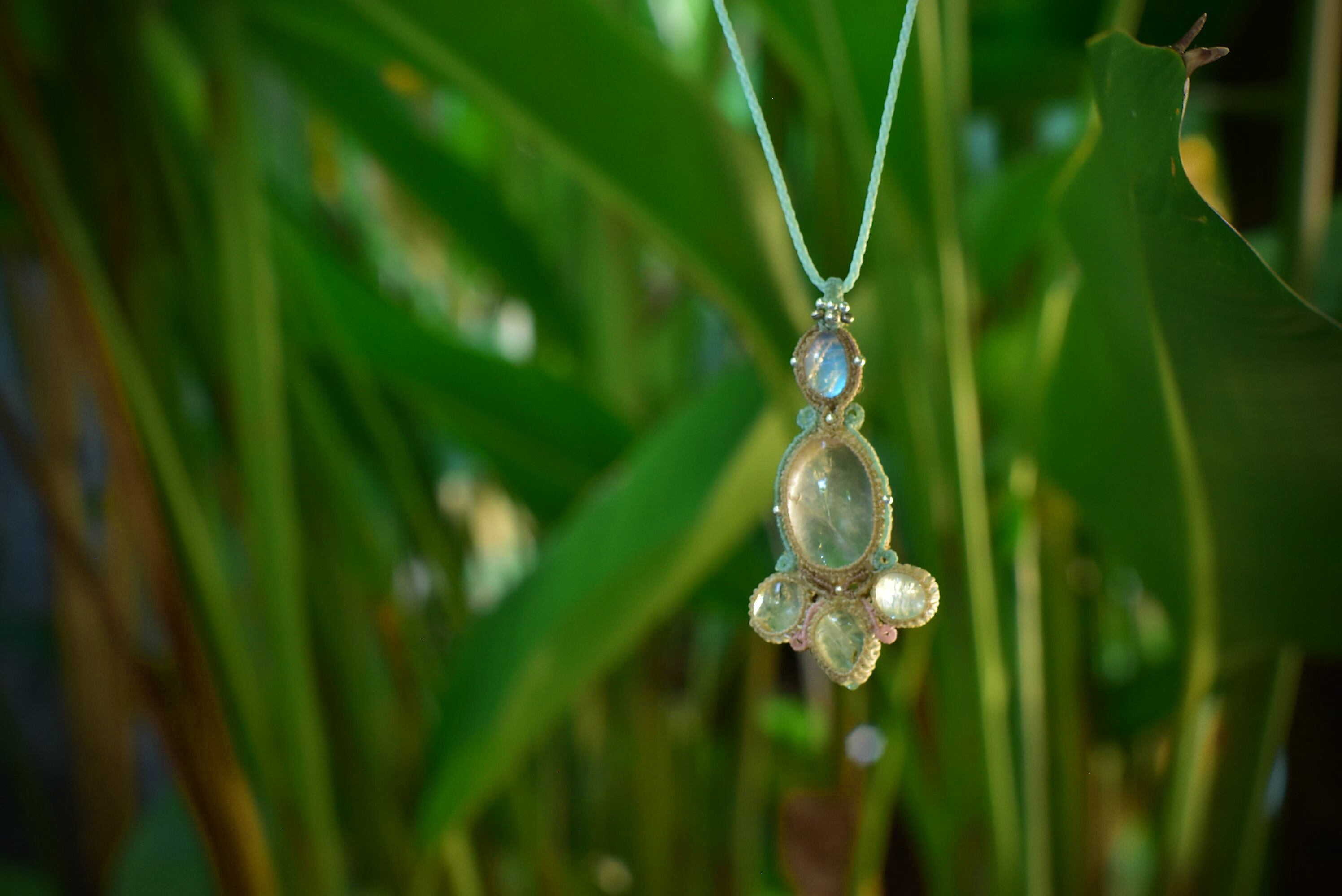 ほのかな輝き★高品質ローズクォーツ ムーンストーン マクラメペンダントsrose003