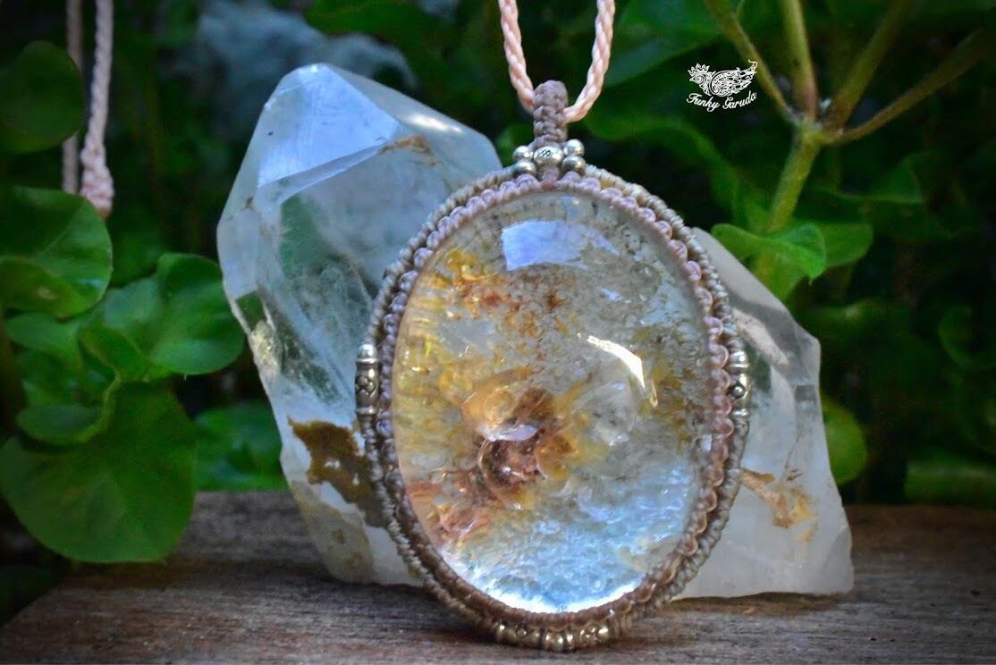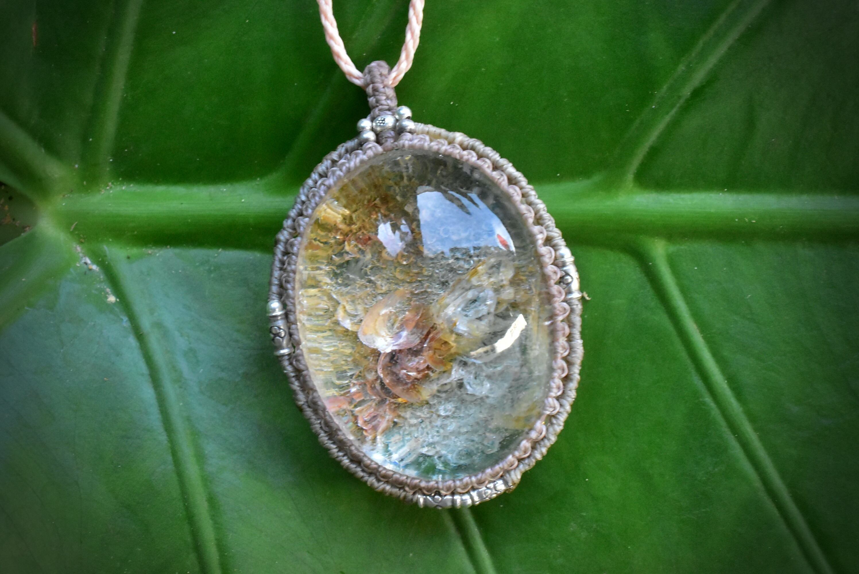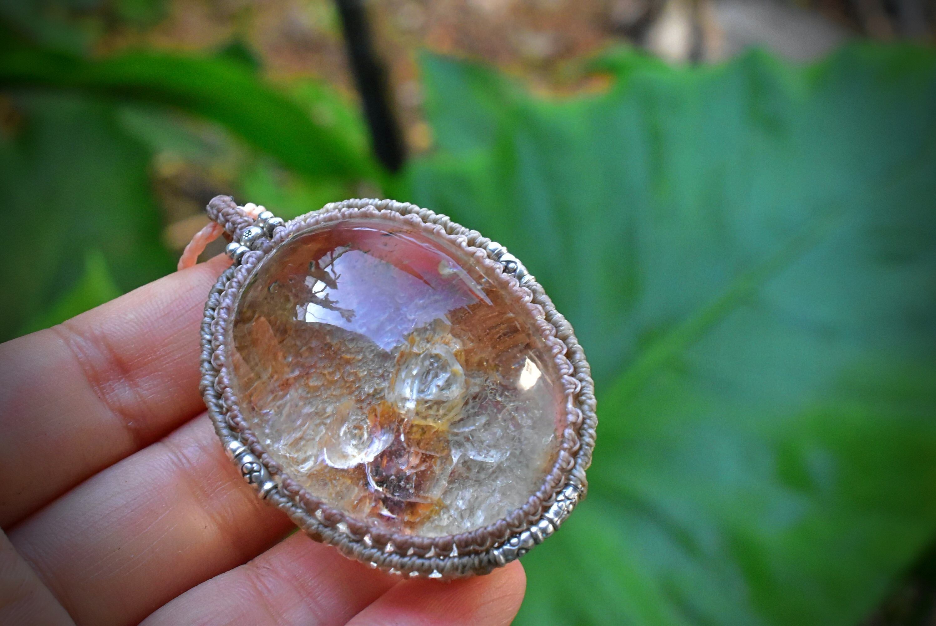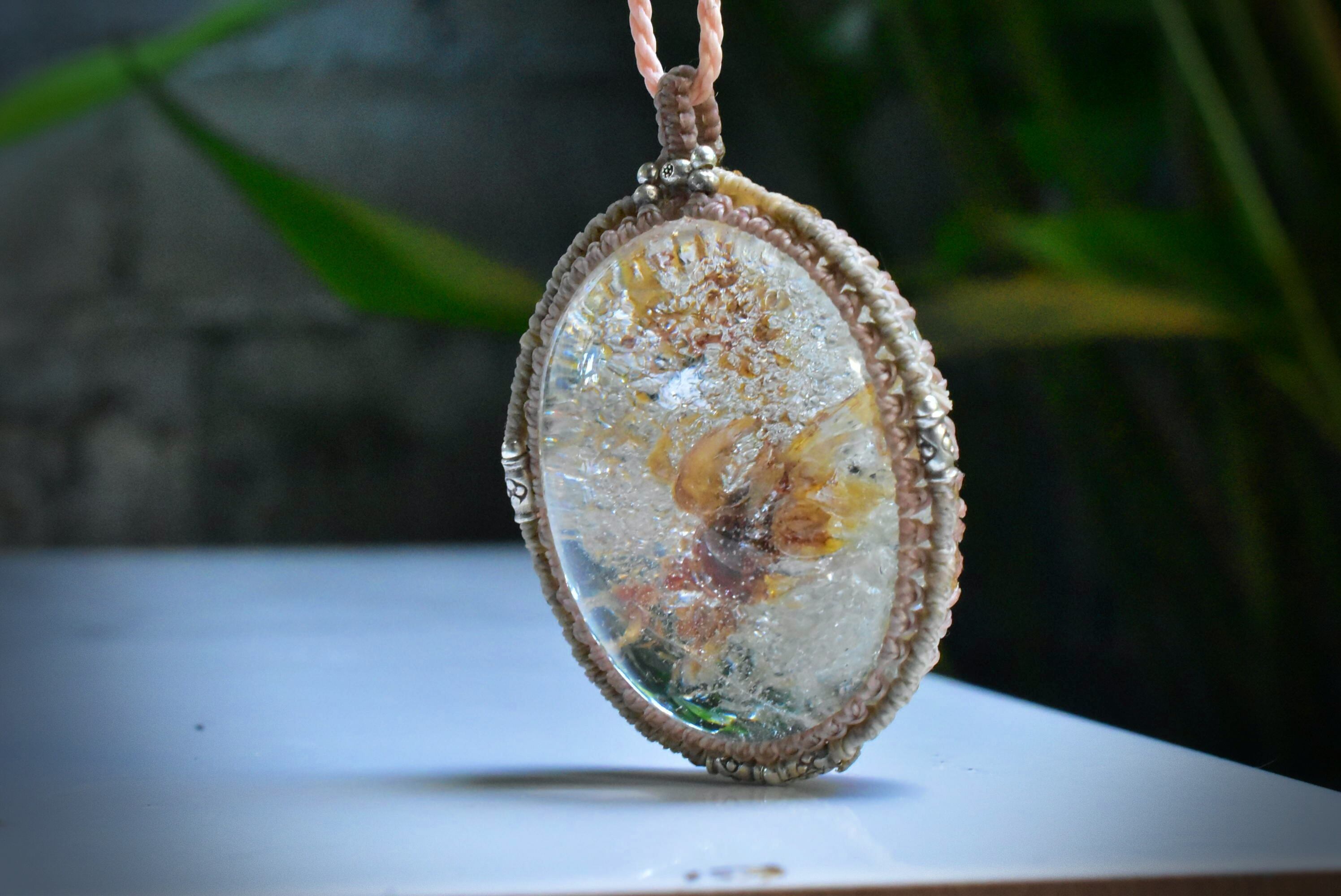 大粒レア★ピンクシラー★クラックインクォーツ マクラメペンダント garm130