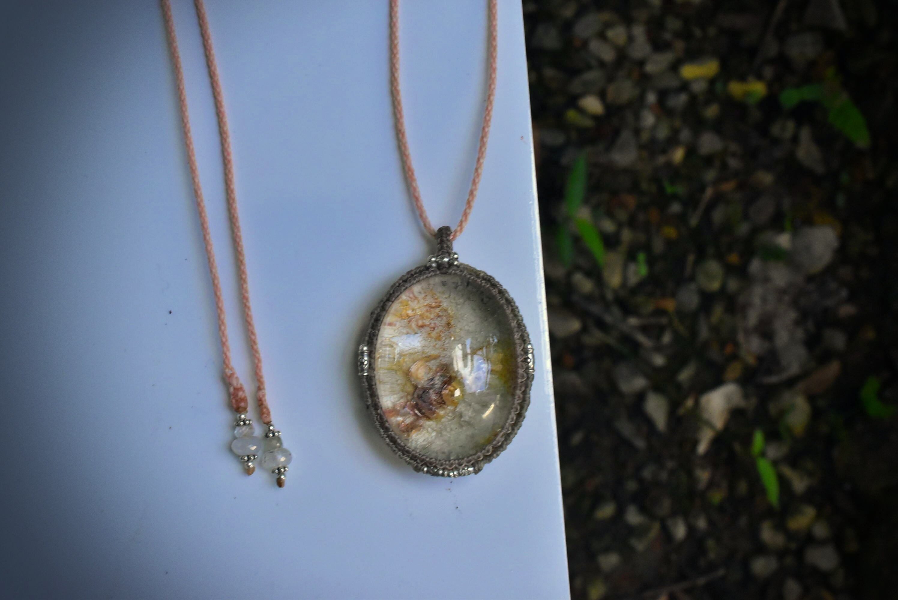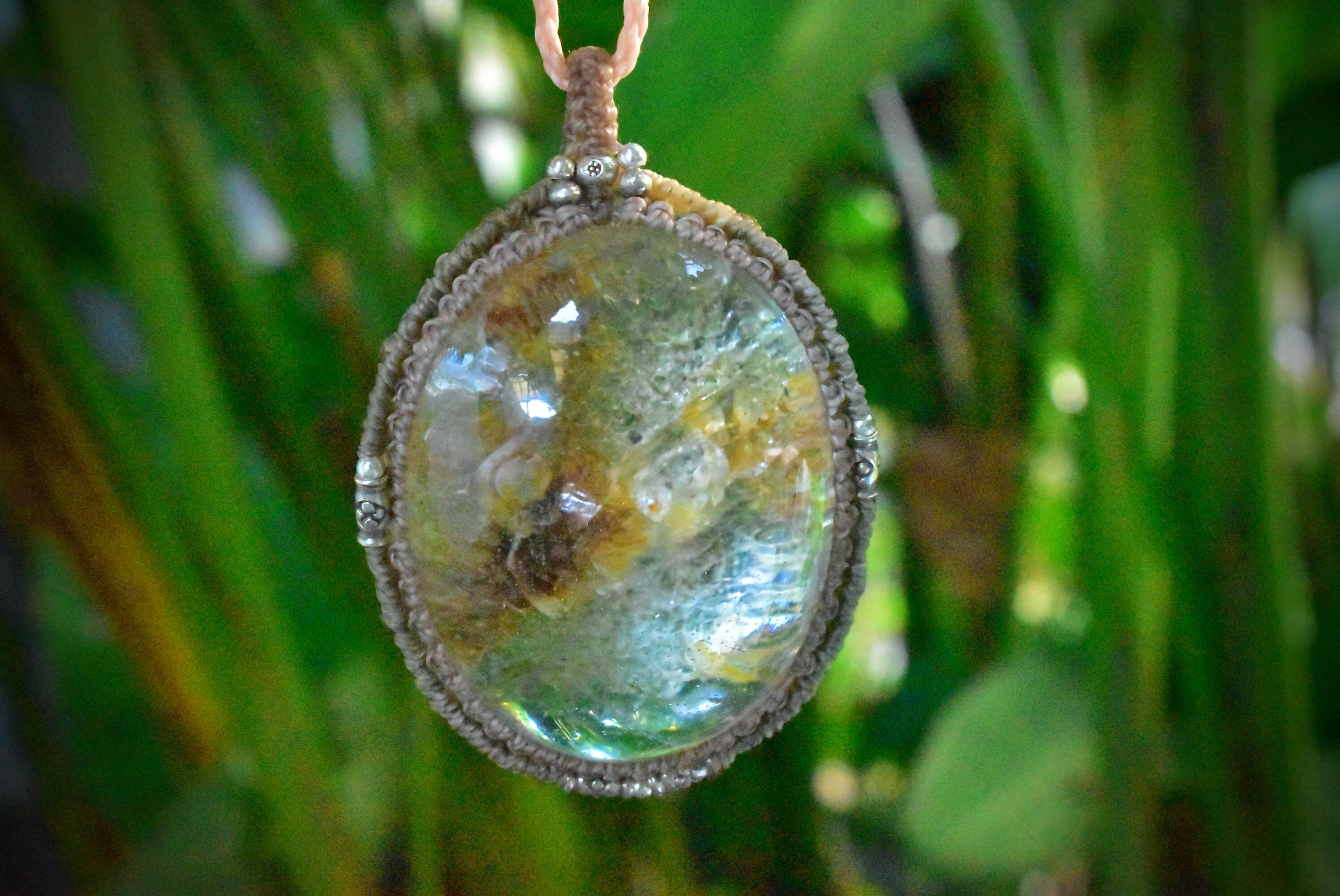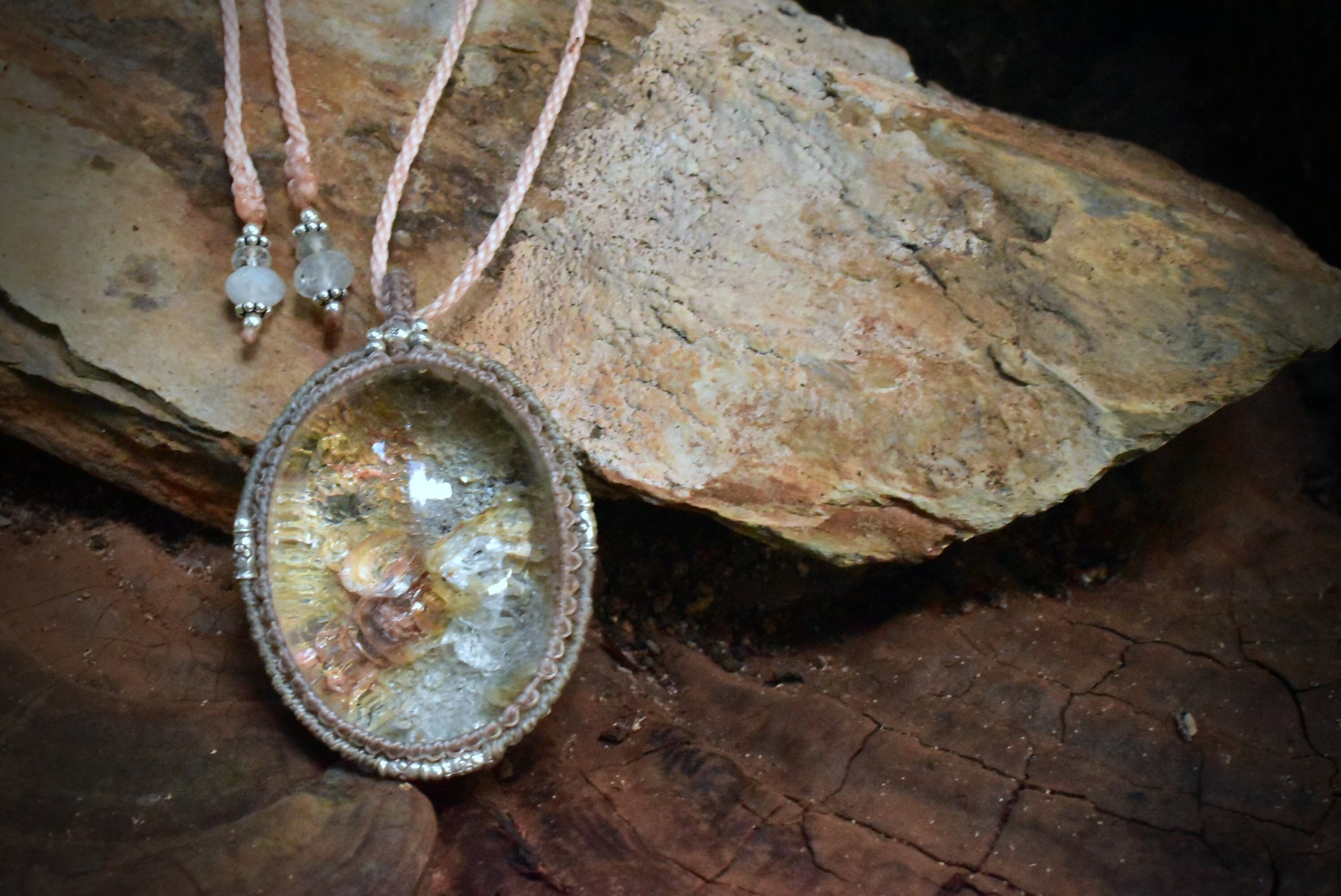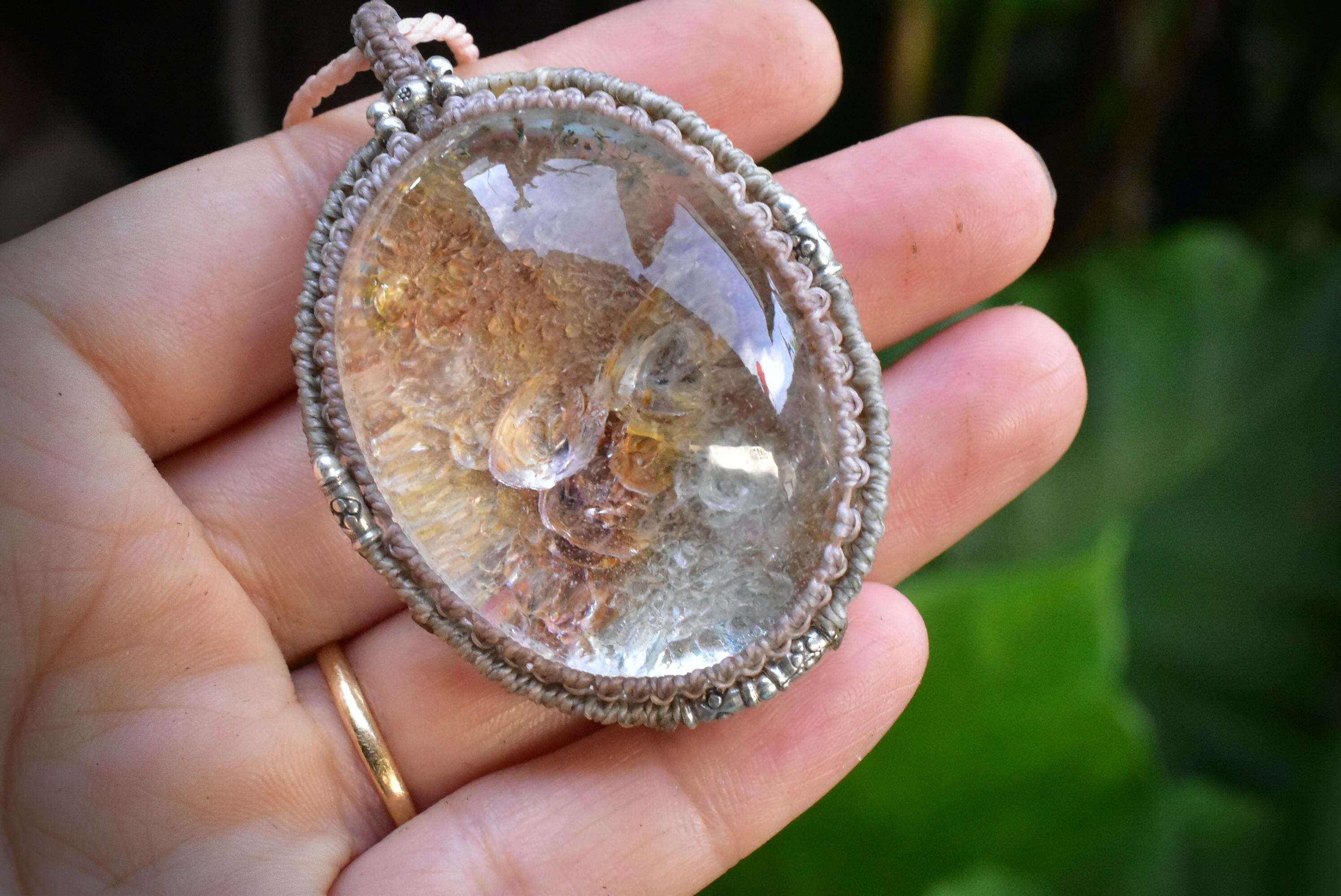 大粒レア★ピンクシラー★クラックインクォーツ マクラメペンダント garm130