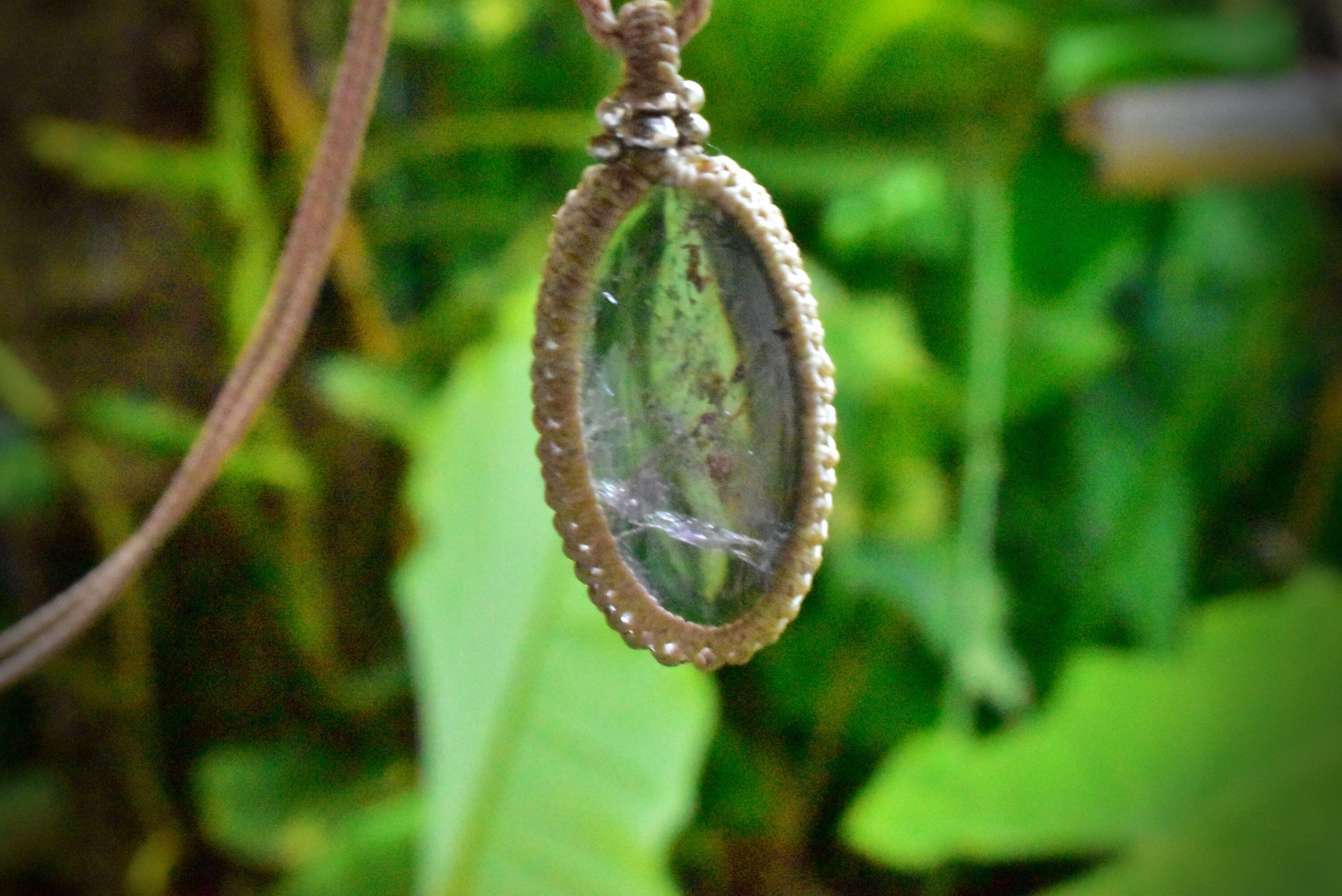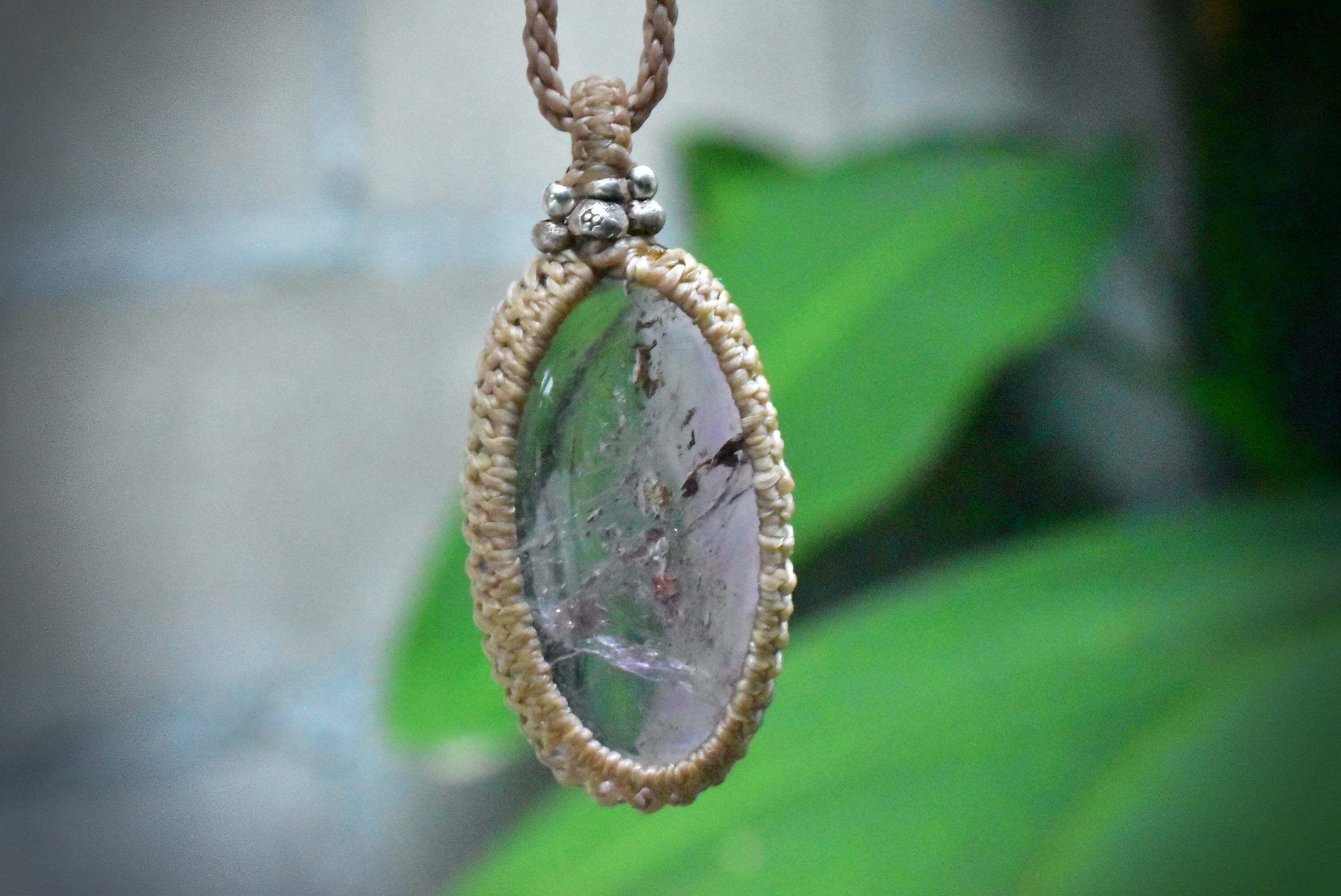 ◆このたびはヘンプ色の蝋引き糸を使用しマクラメ編み装飾を施しました。
