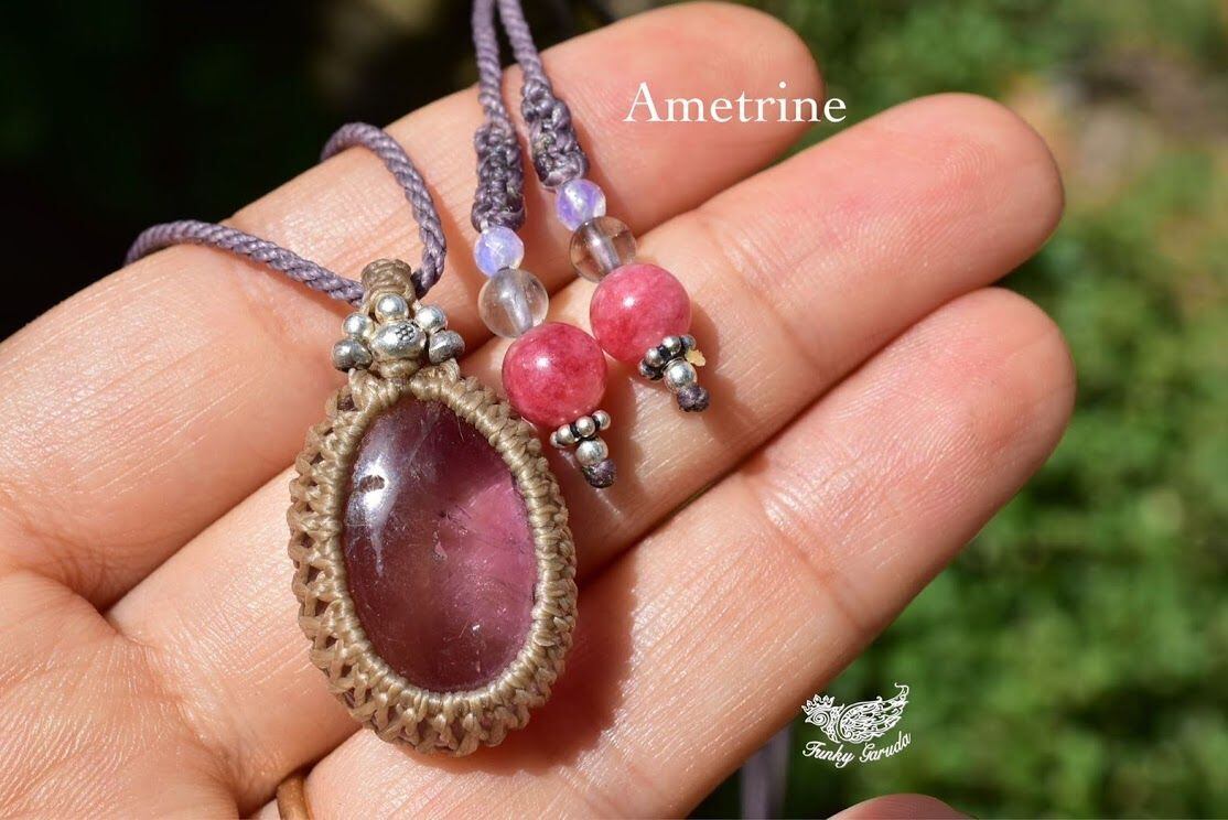 紫黄バイカラー★アメトリン マクラメペンダント amety002