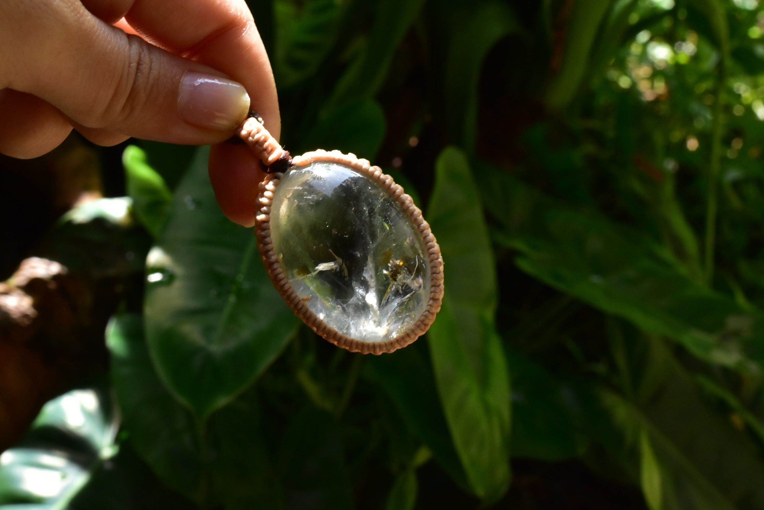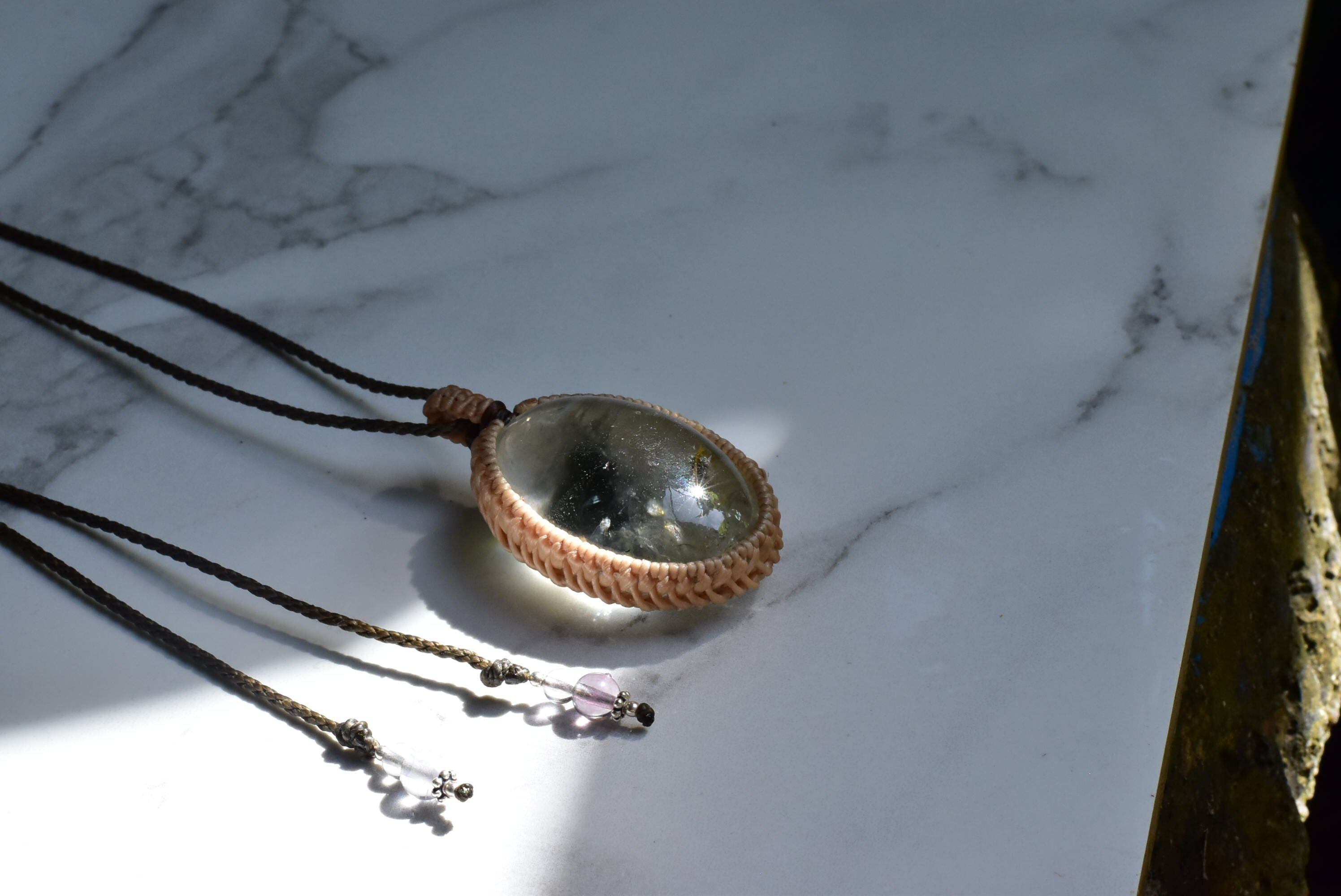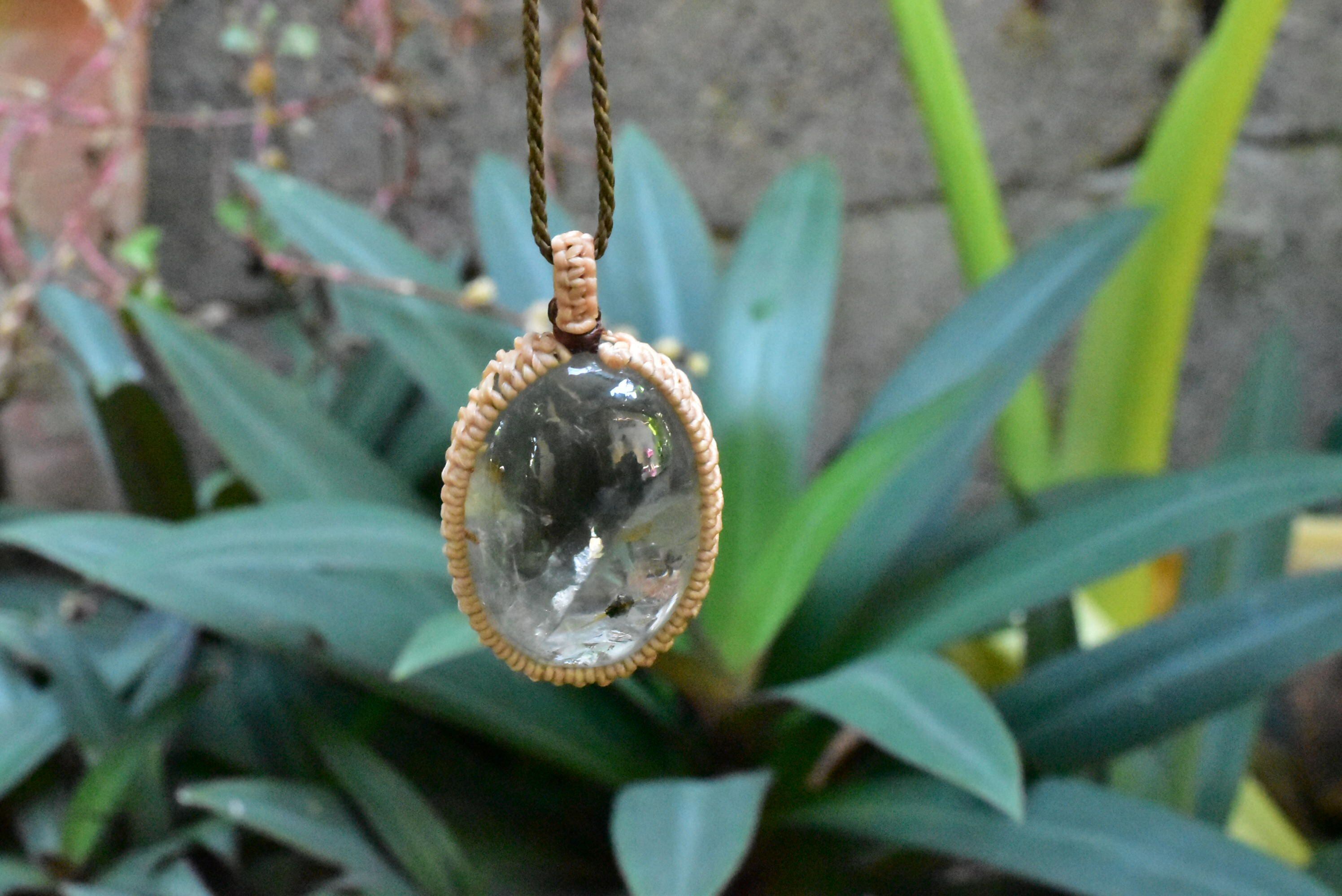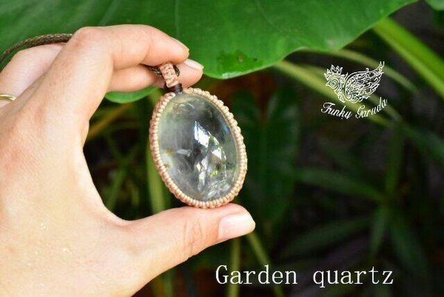 良質アート★スモーキッシュクローライト・ガーデンクォーツ マクラメペンダント gary002