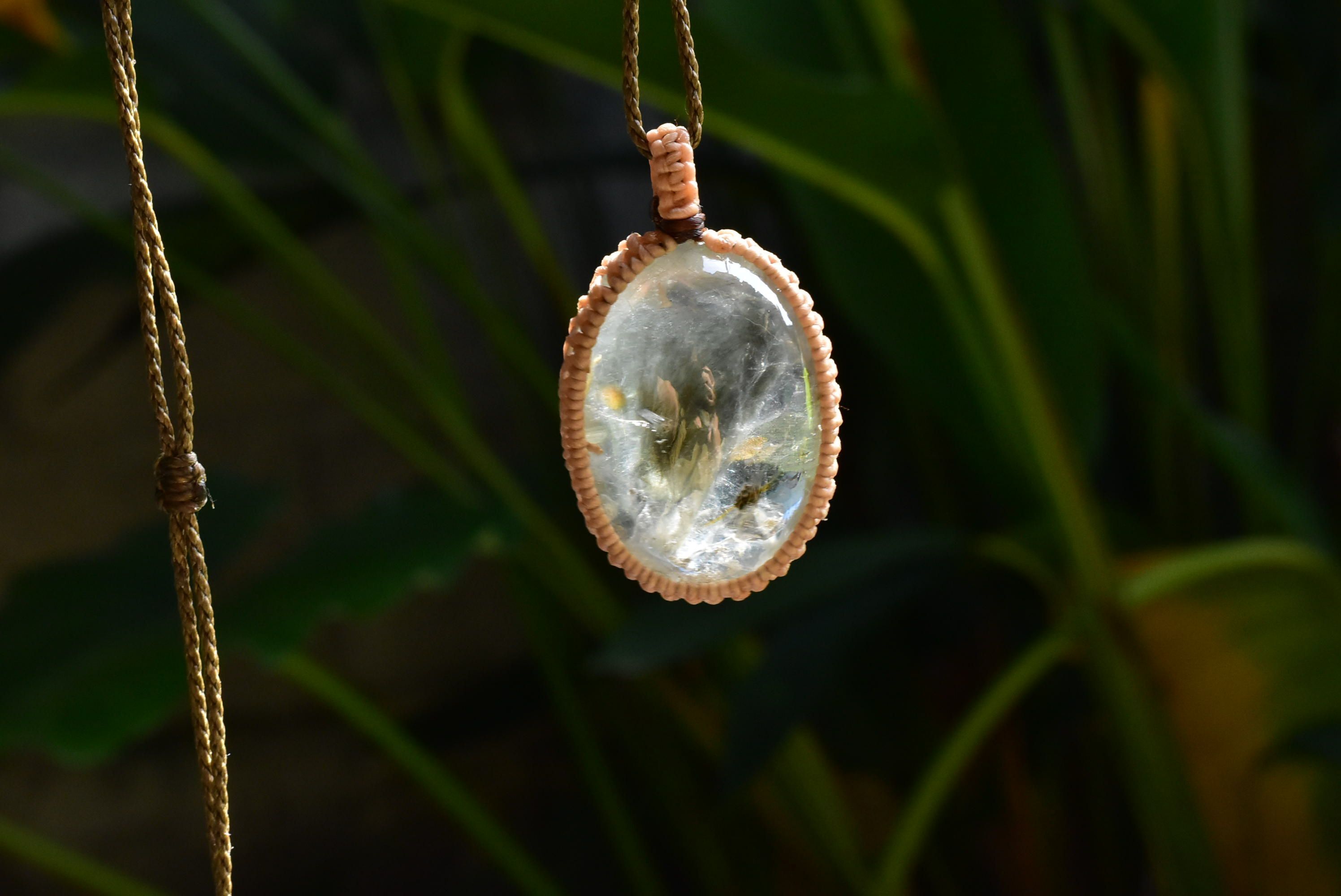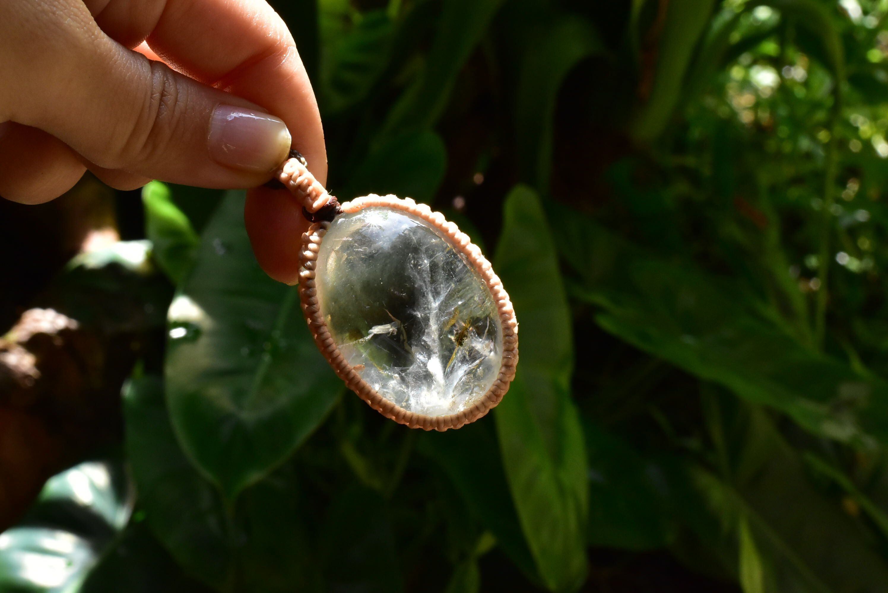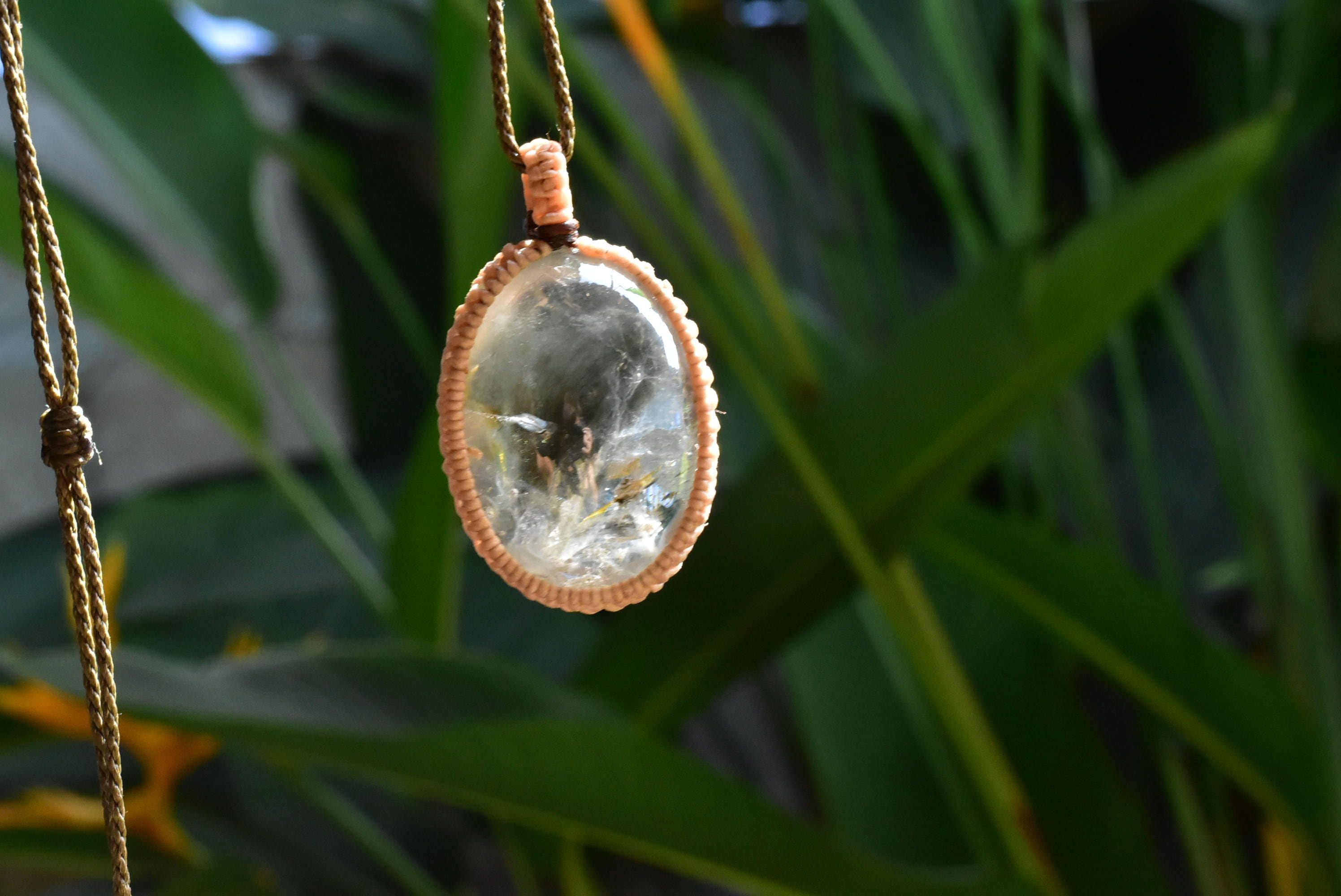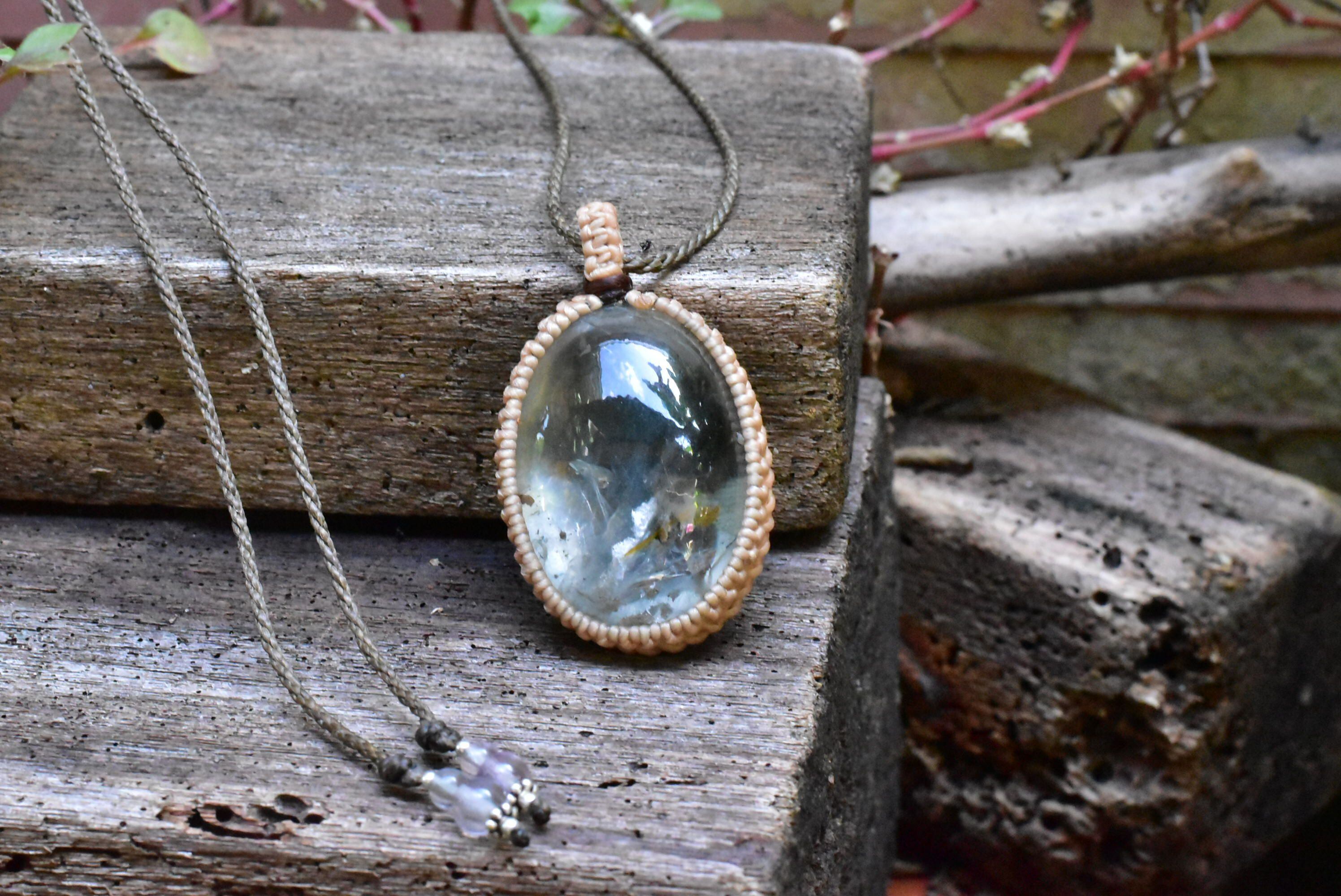 良質アート★スモーキッシュクローライト・ガーデンクォーツ マクラメペンダント gary002