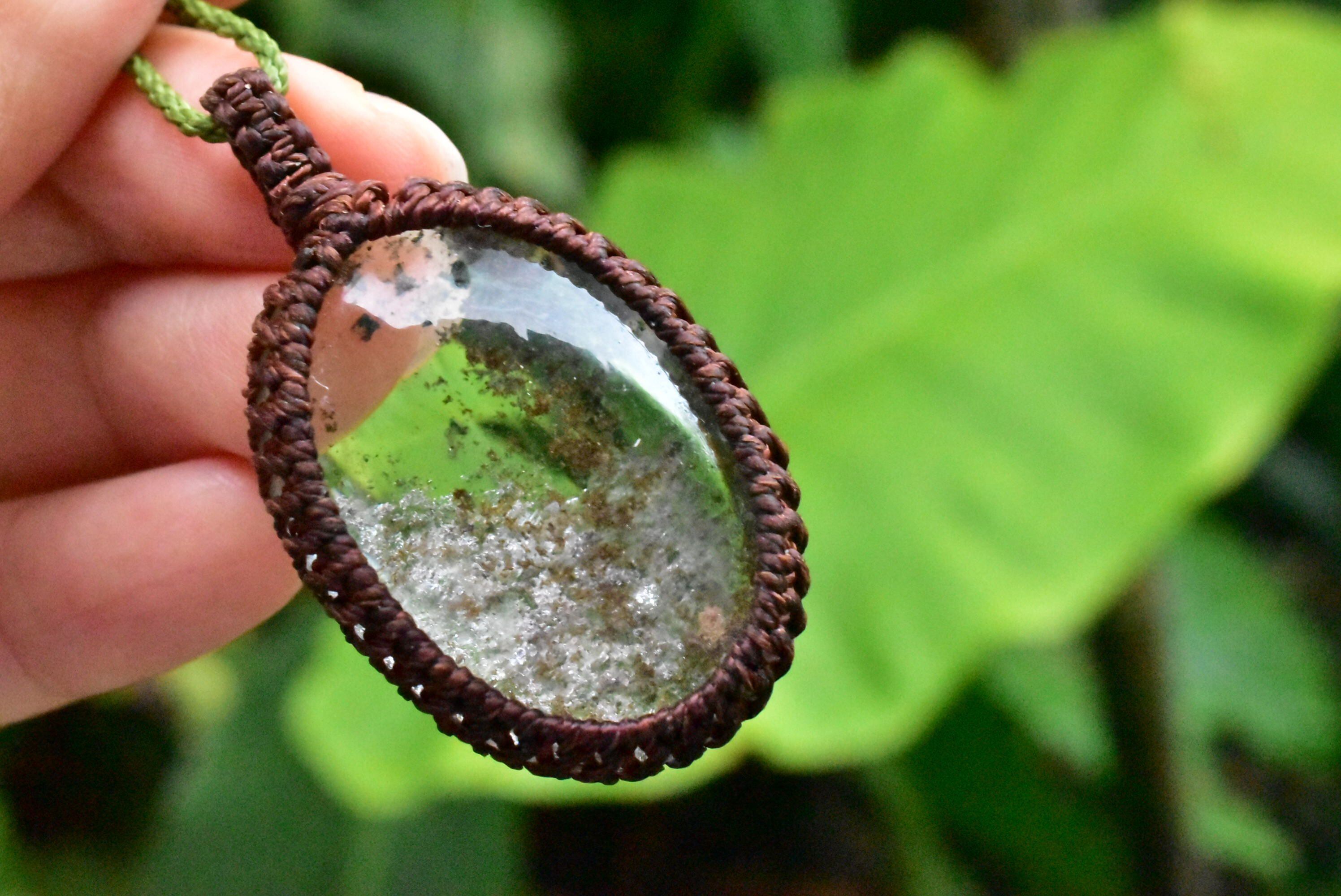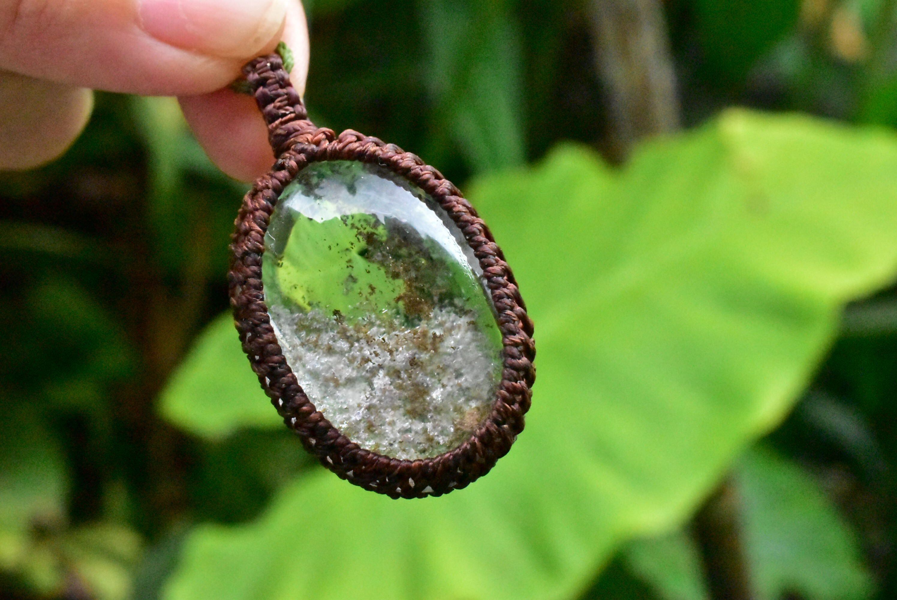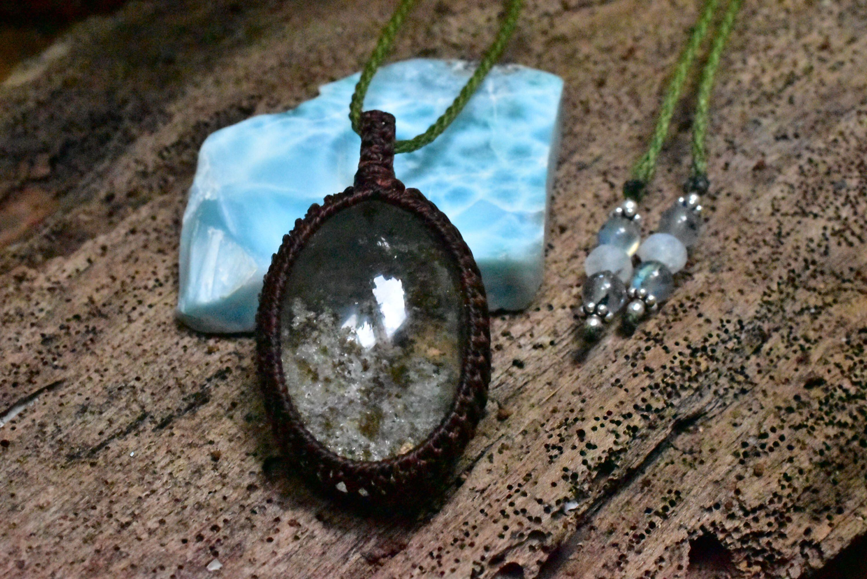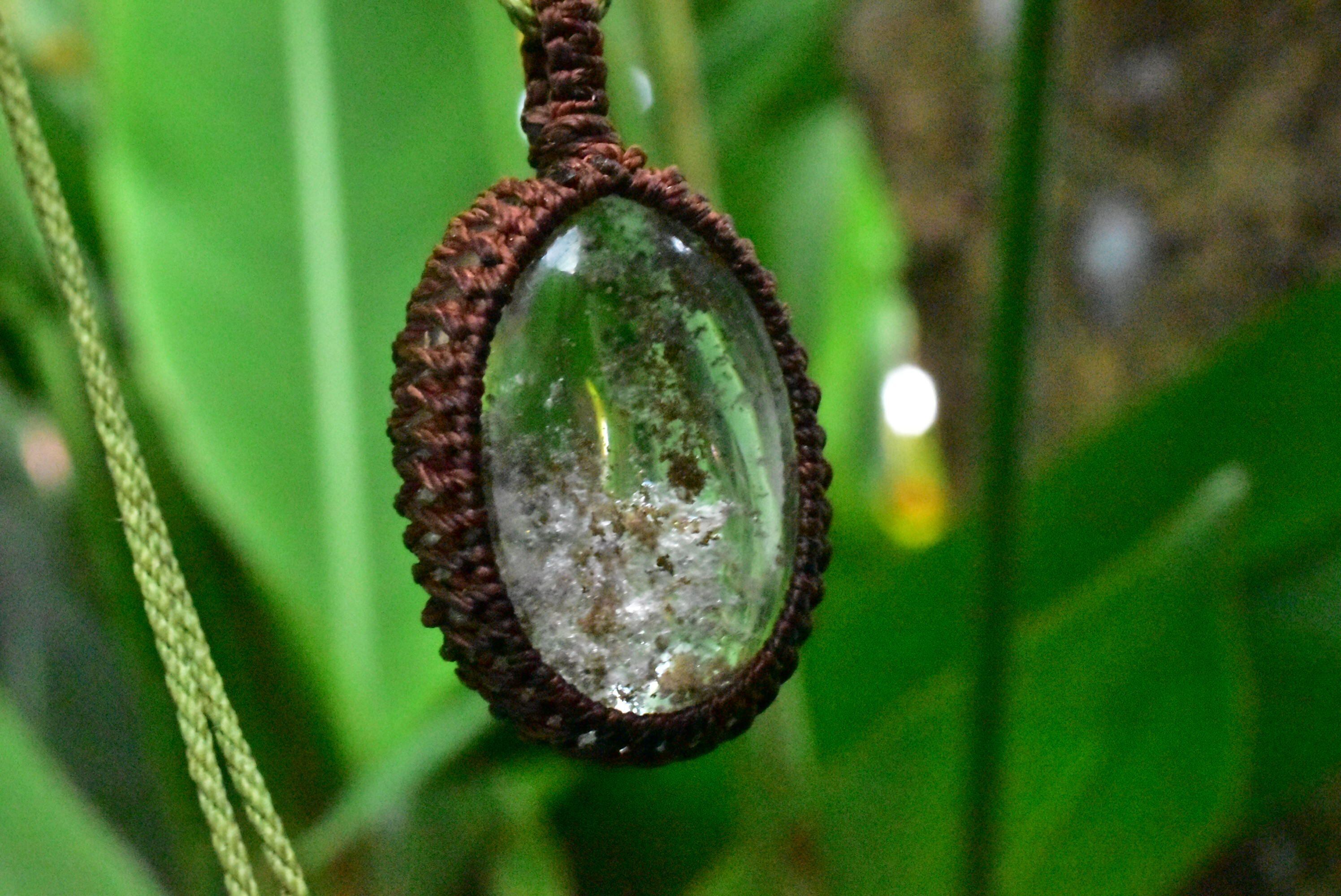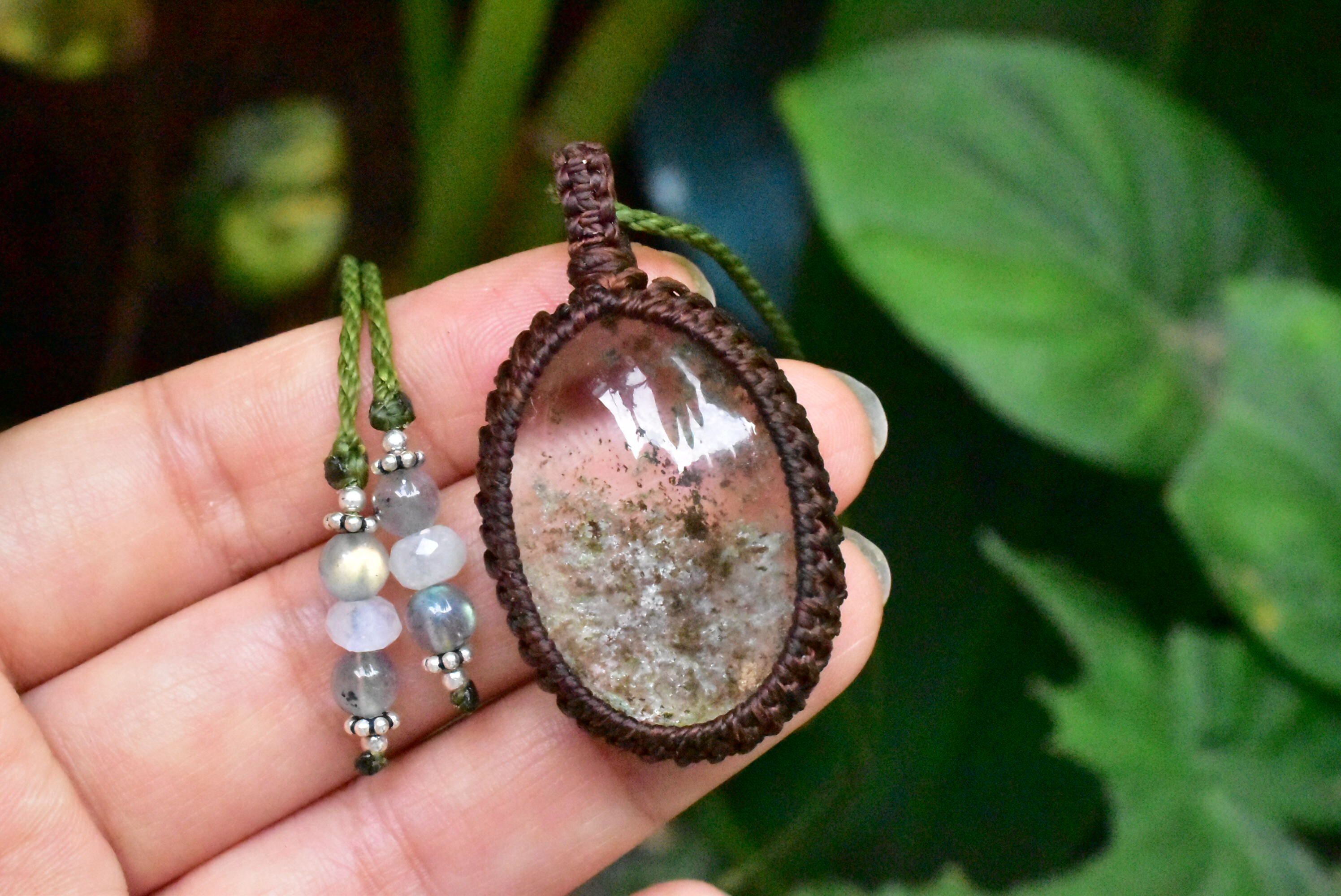 クローライトとホワイト内包物ガーデンクォーツ マクラメペンダントgary012