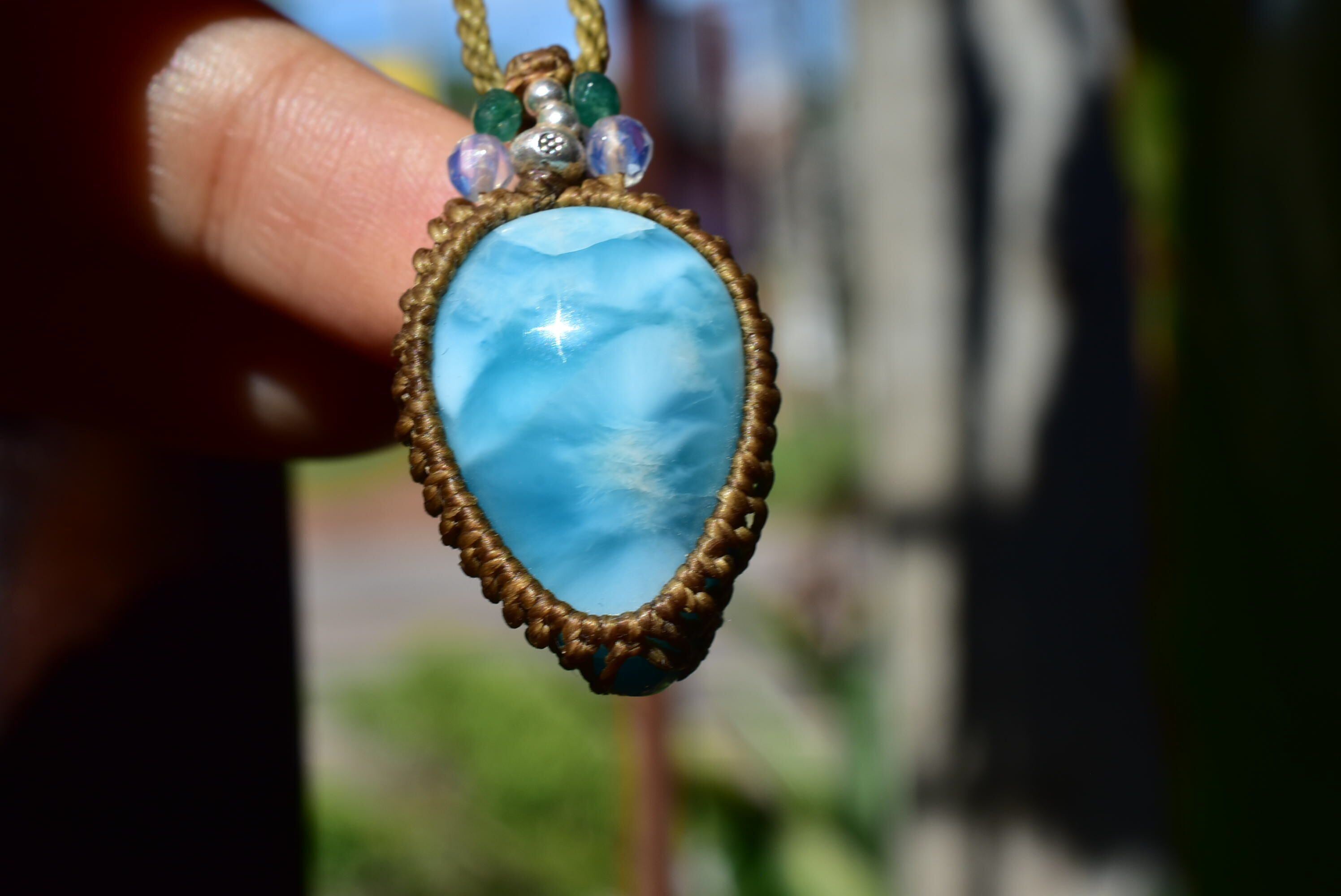 高品質★透き通る雫★ラリマーマクラメペンダント lariy002