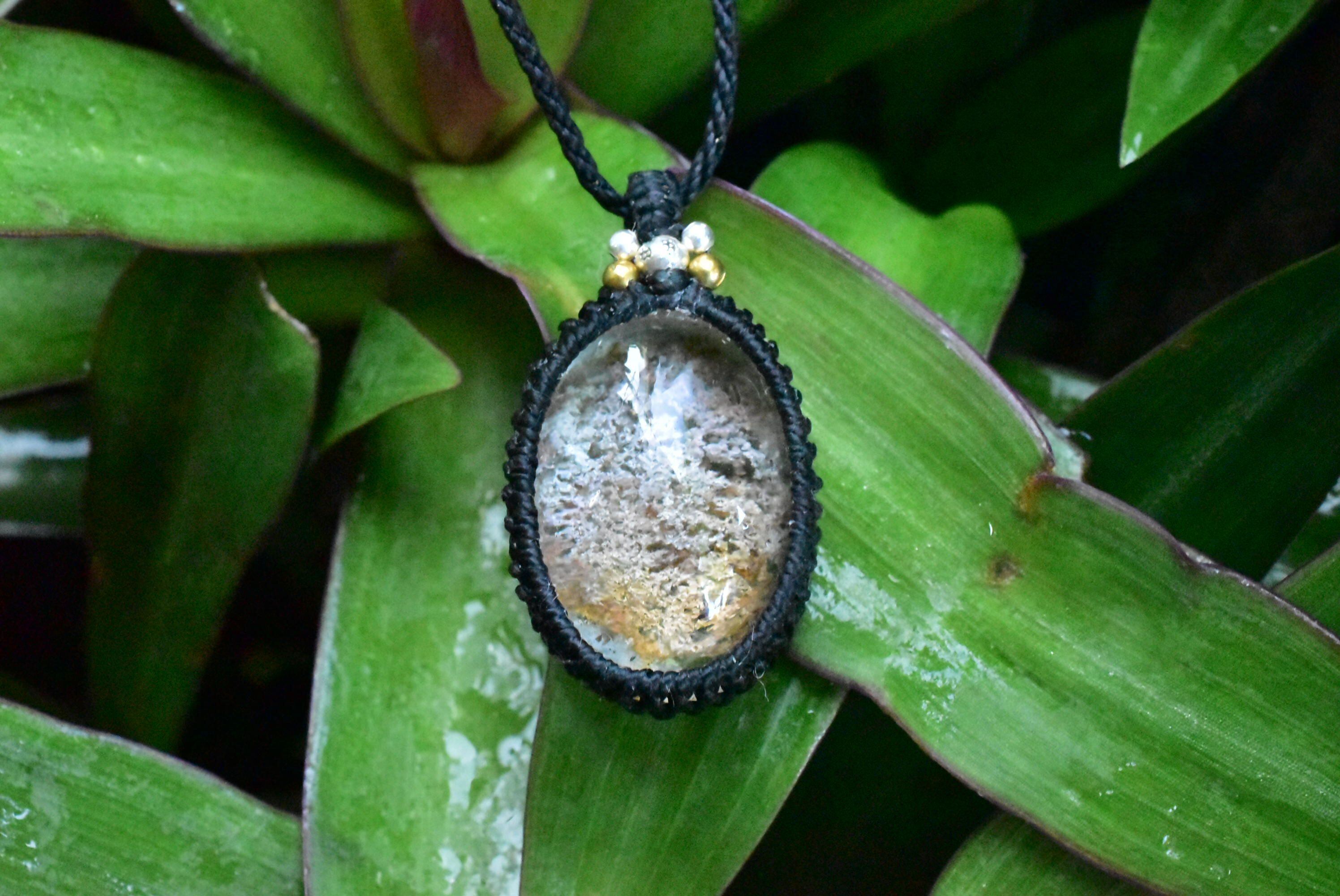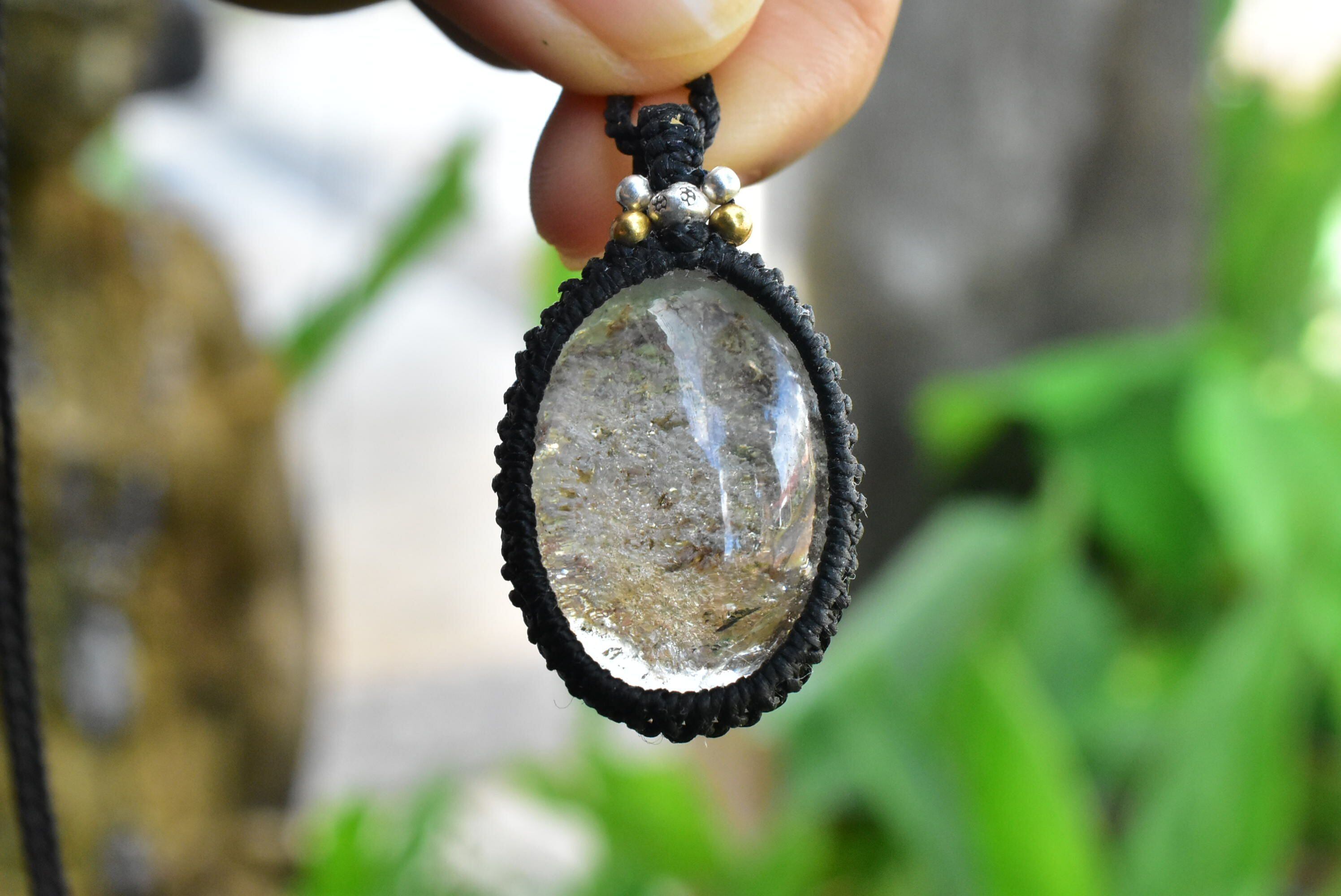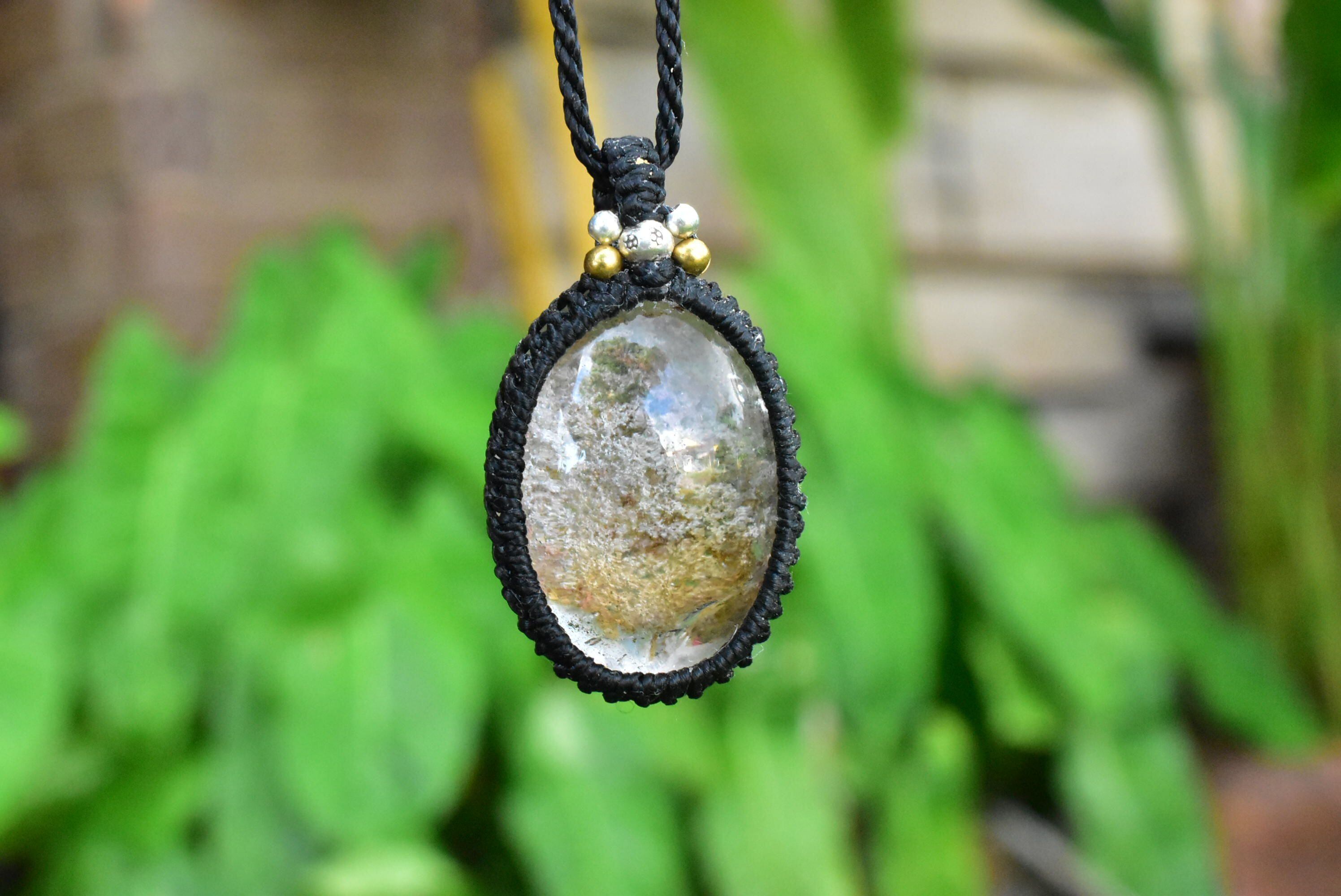 水晶の優しい世界が引き立つように、シンプルなマクラメ編みペンダントに仕上げました。