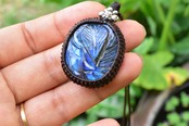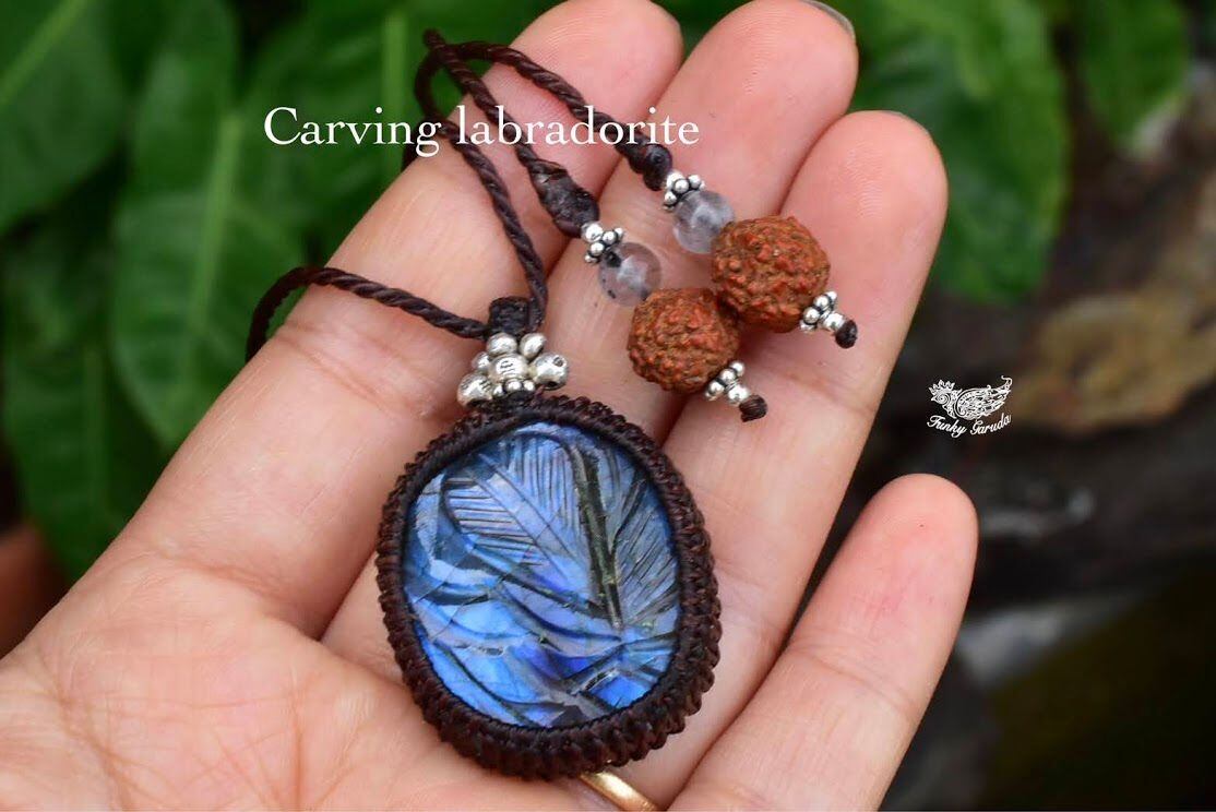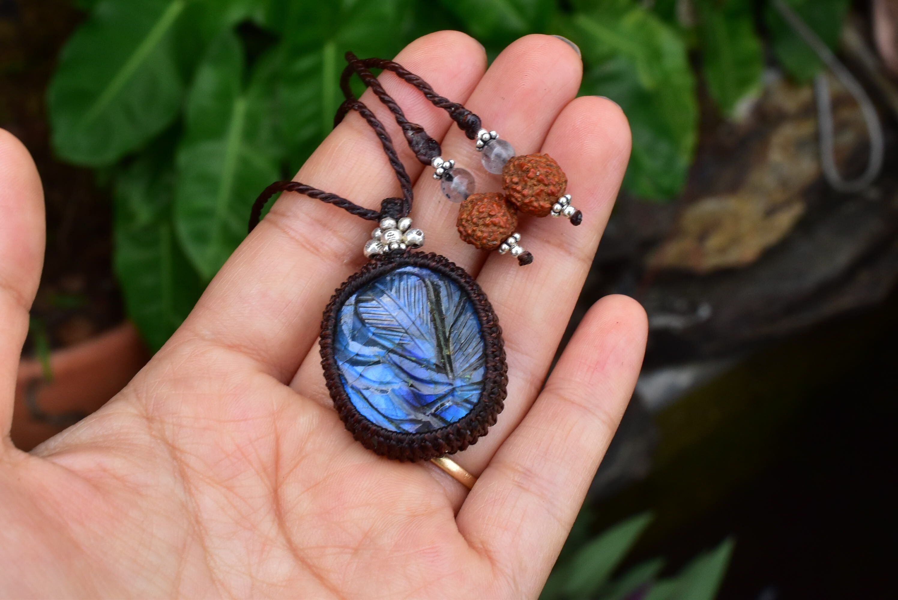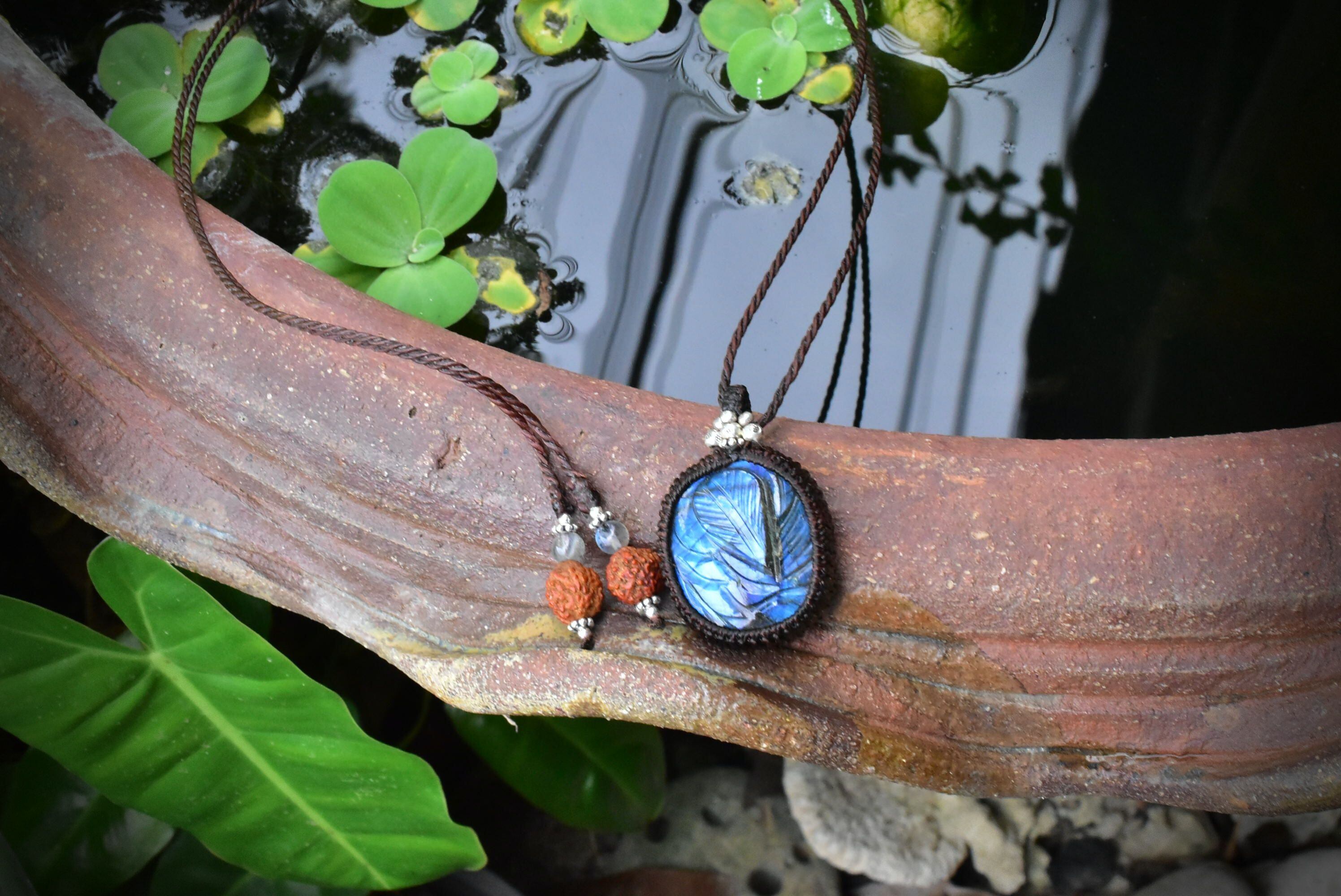 青藍色の草木★カービング★ラブラドライト マクラメペンダントlay005
