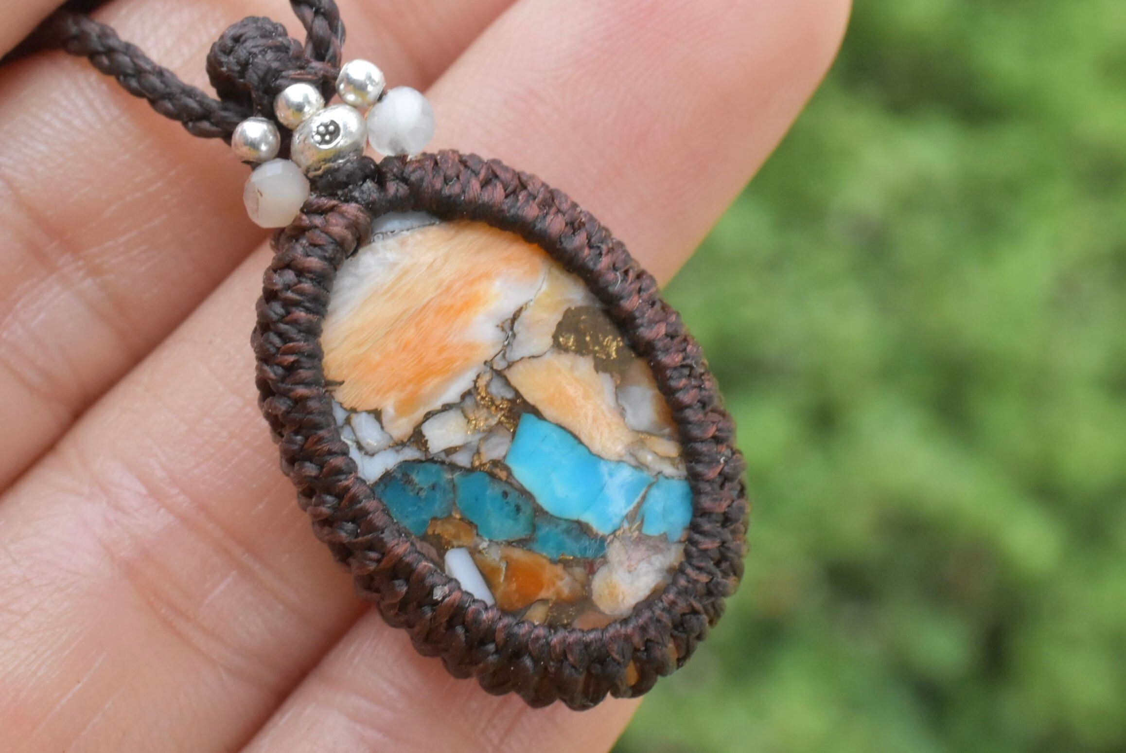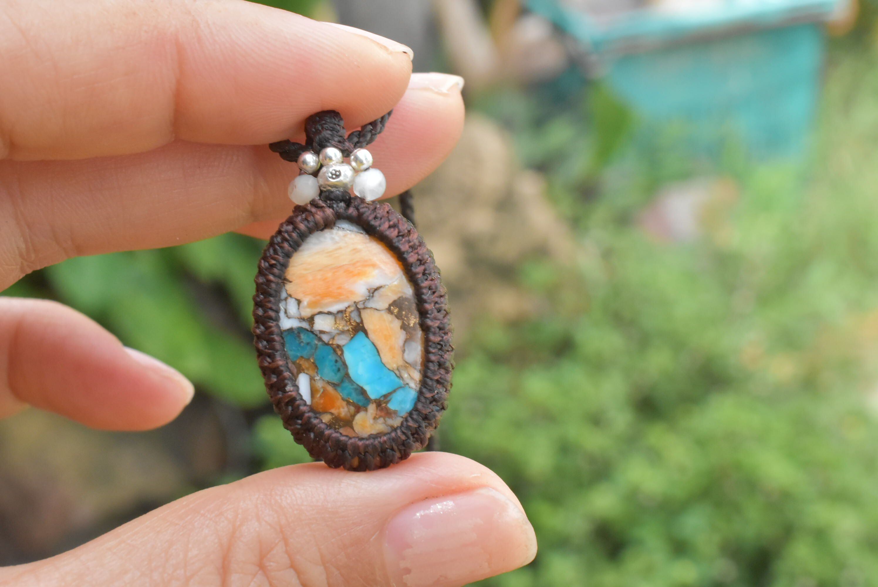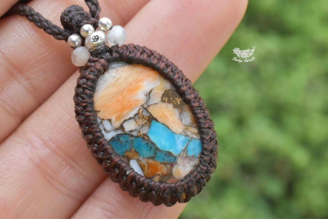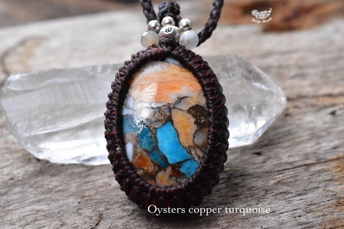 自然世界の趣★オイスターカッパーターコイズ マクラメペンダント tury001