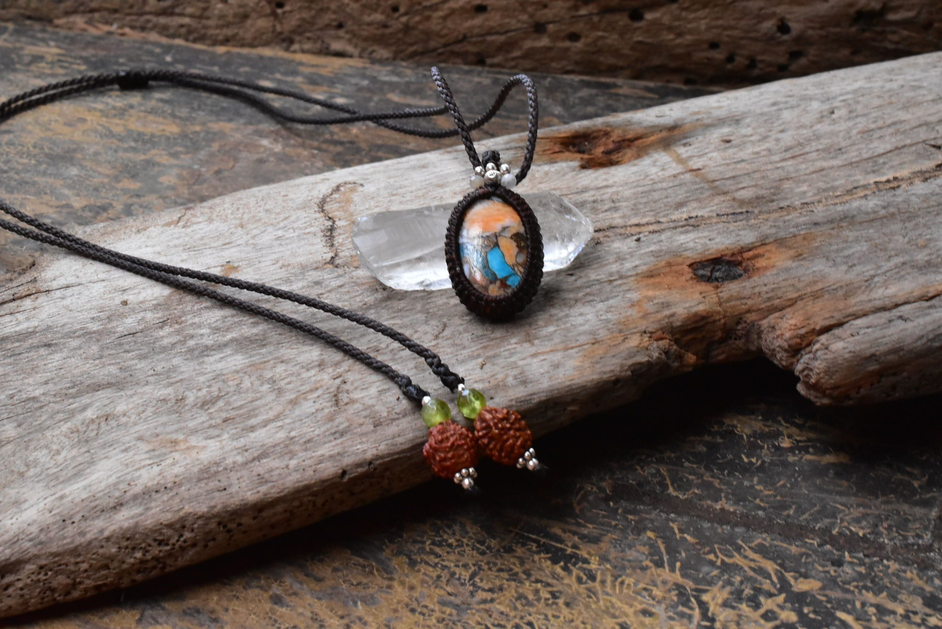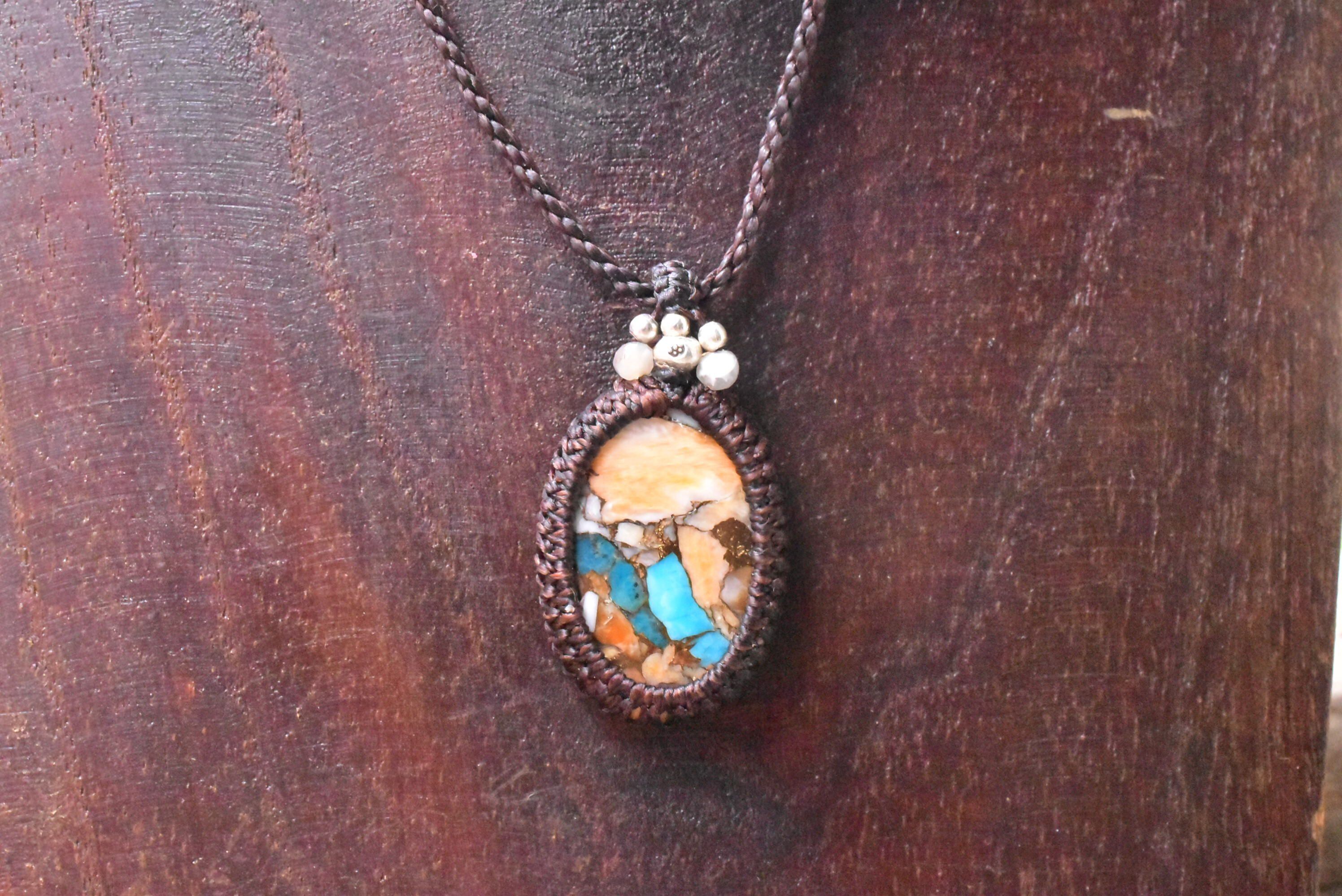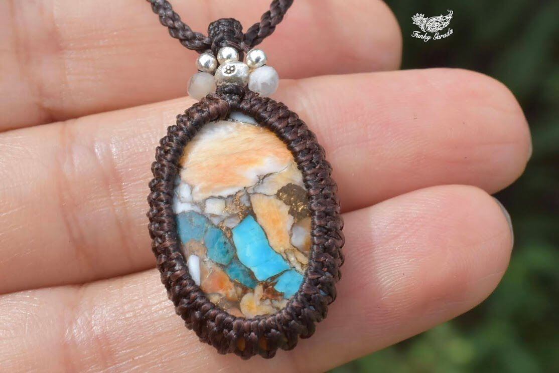 自然世界の趣★オイスターカッパーターコイズ マクラメペンダント tury001