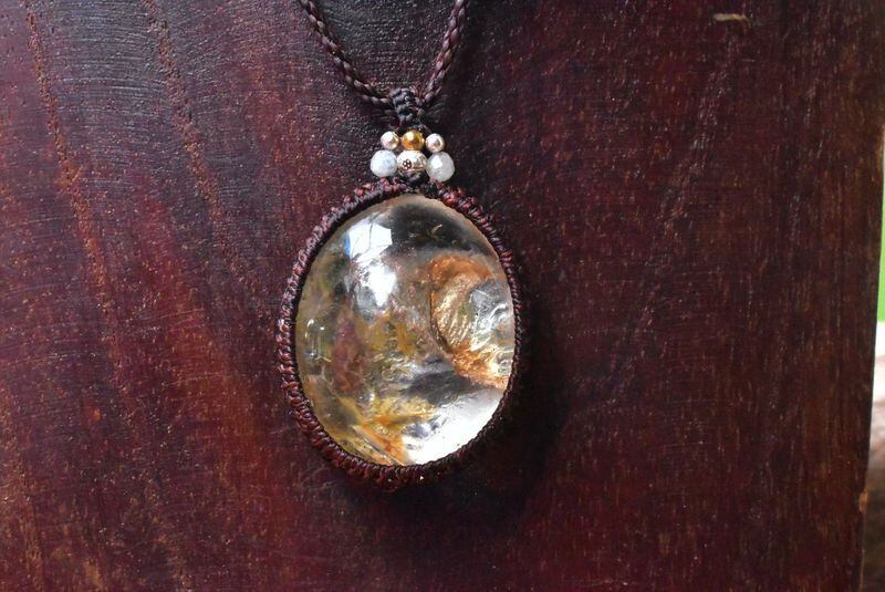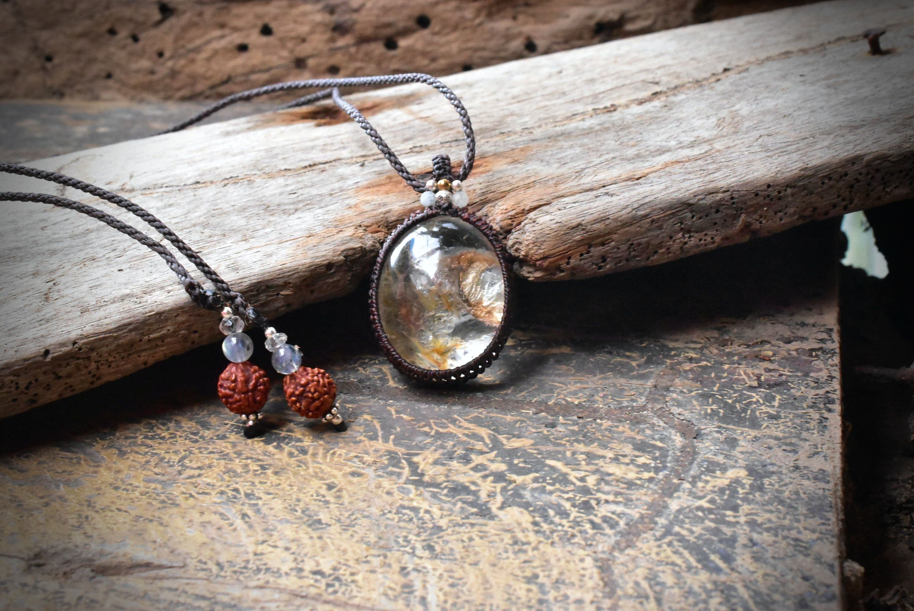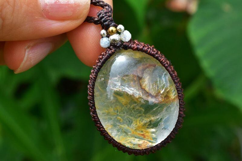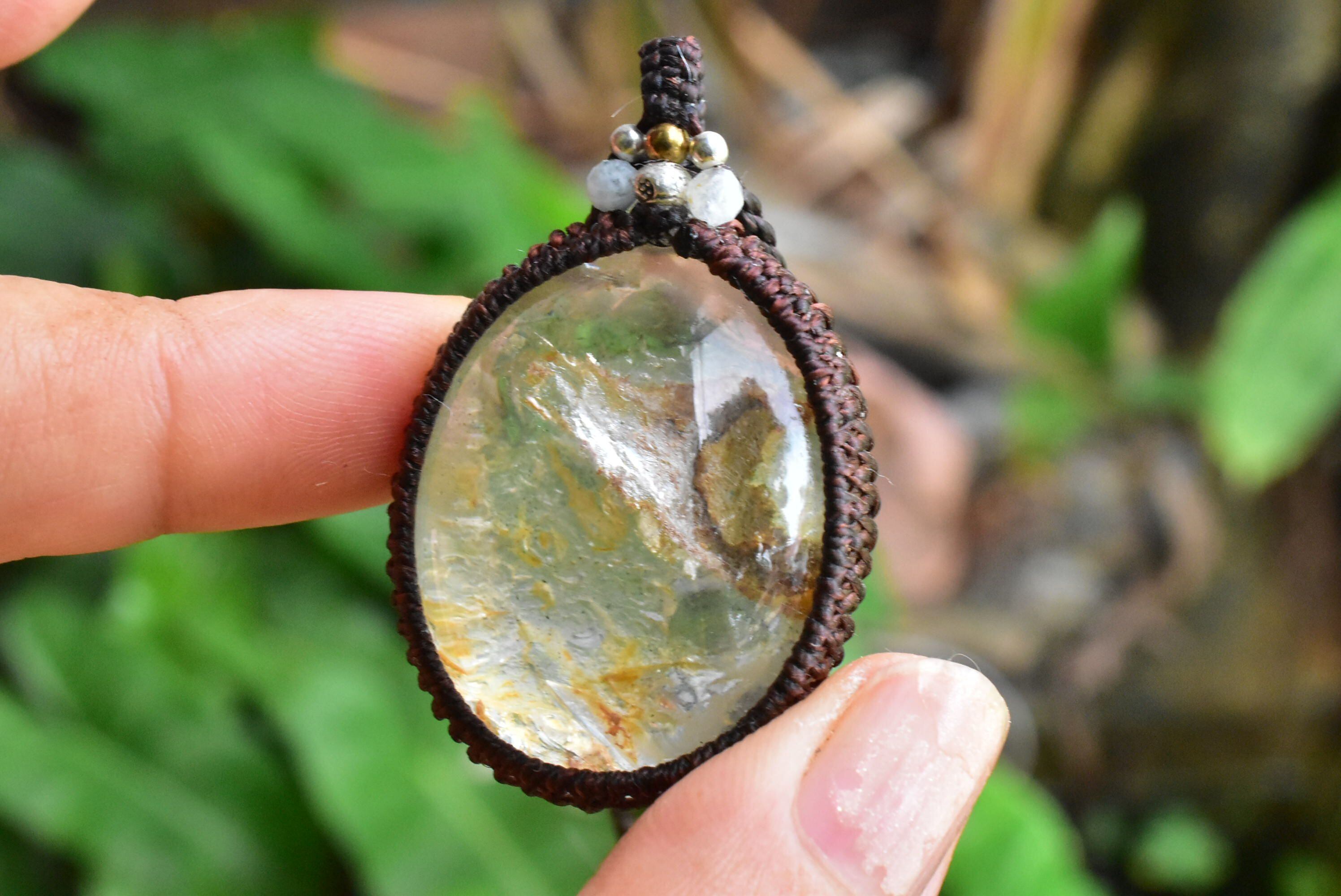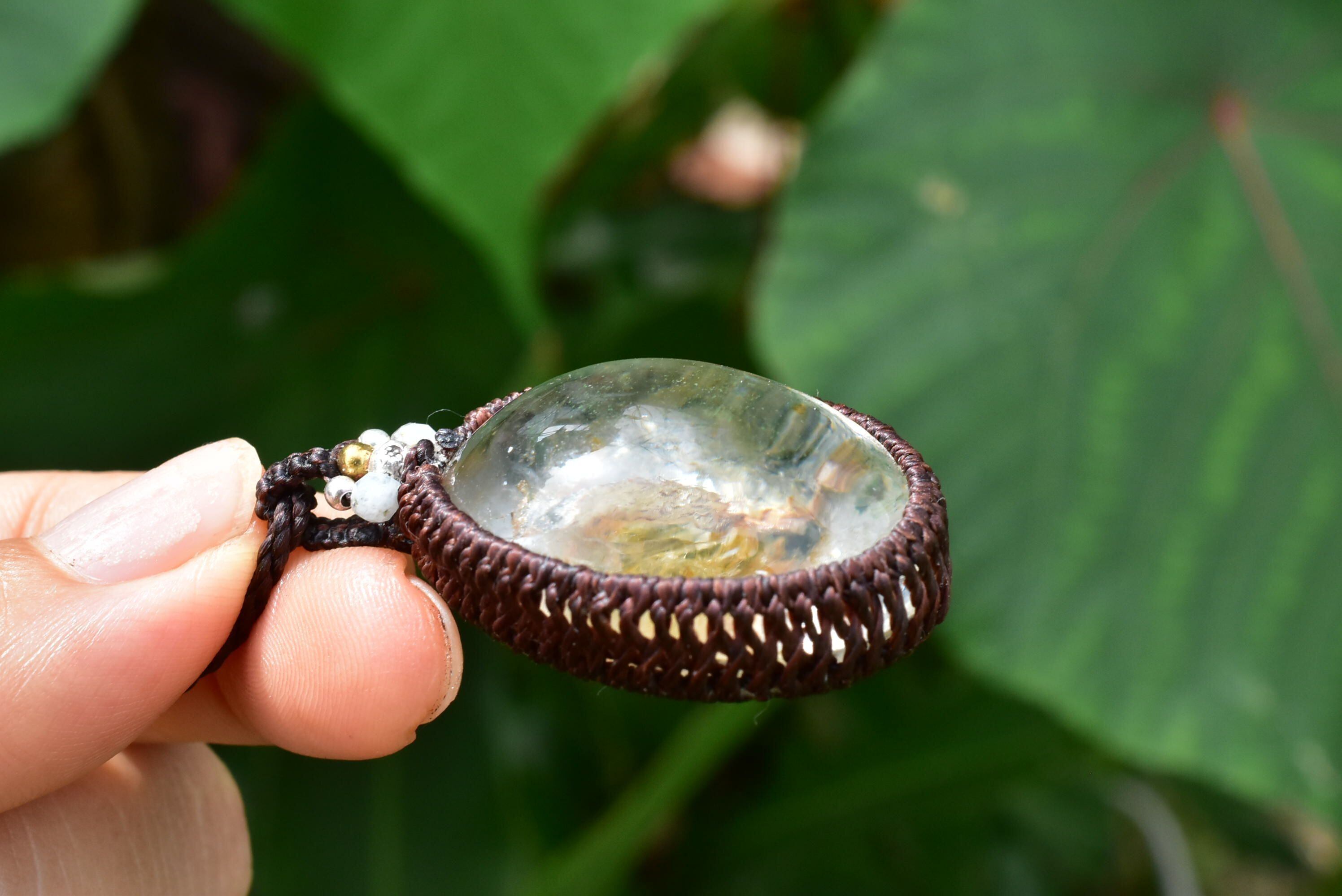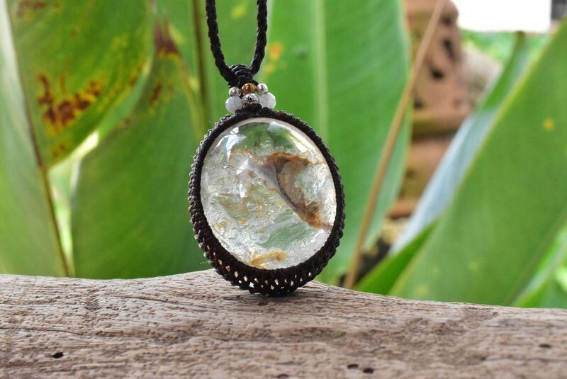湧き上がる幻想★クラックインクォーツ マクラメペンダント gy027