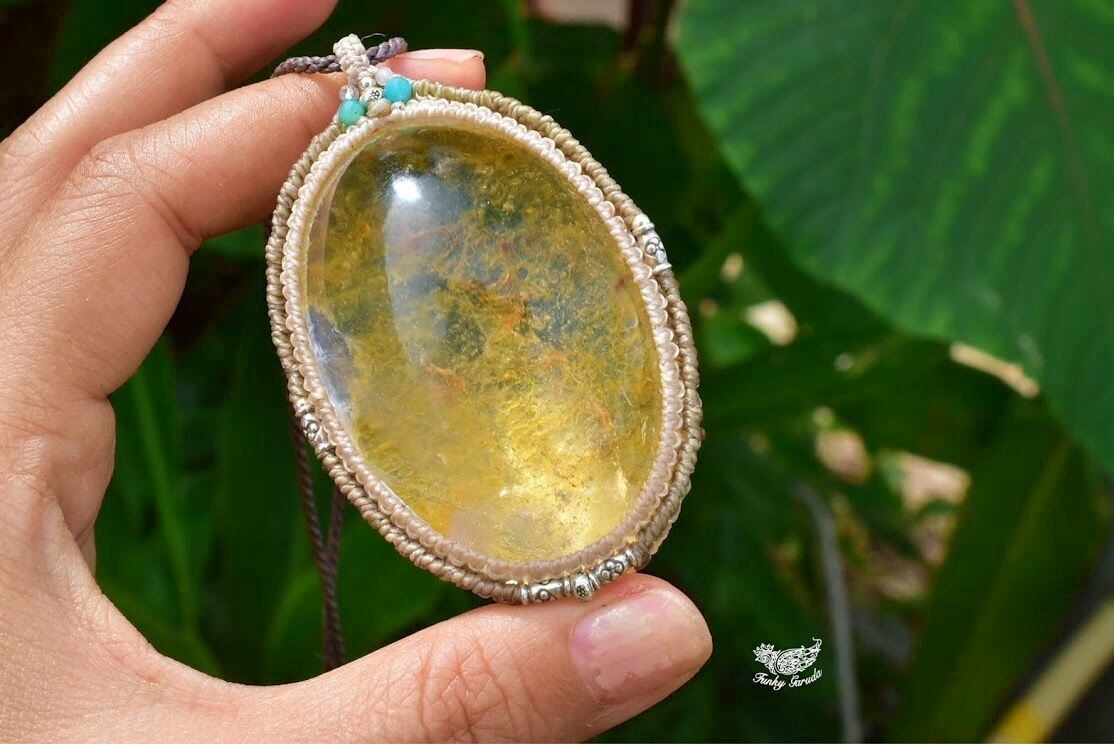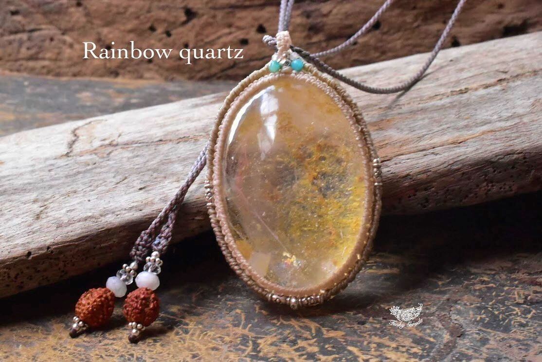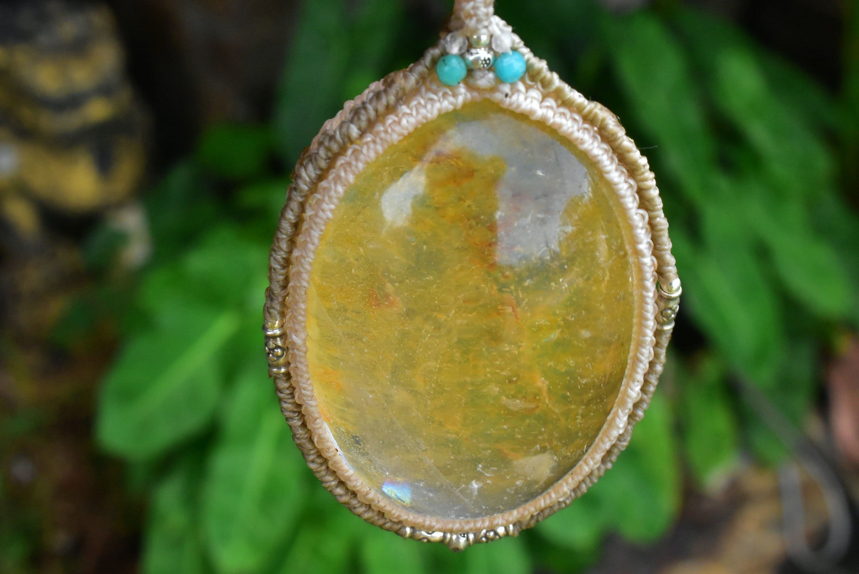 特大★湧き上がる虹★虹入りイエローガーデンクォーツ マクラメペンダント gy028