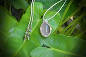 シラーと艶感のあるルースのトップにはカット入りムーンストーン、カレンシルバー92.5ビーズを使用して、シンプルにペンダントに仕上げました。