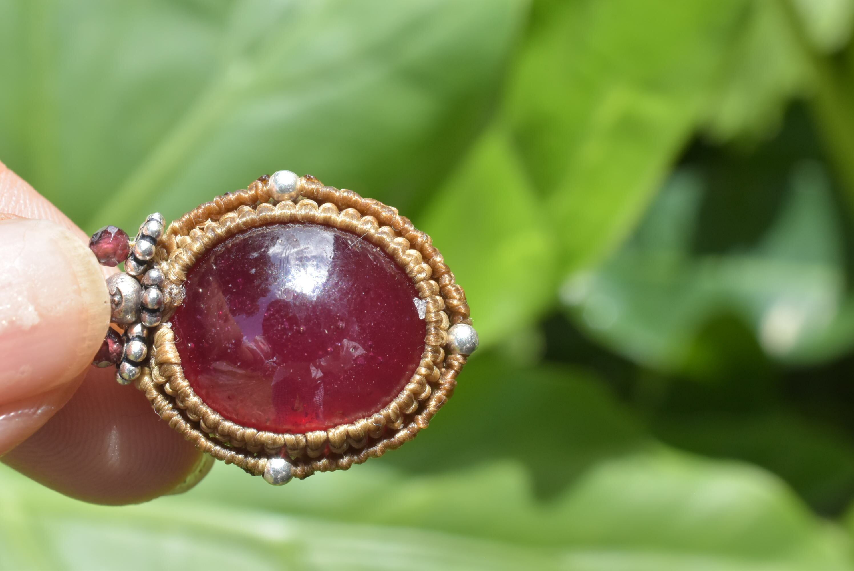 色味もディープなものを選びました。品質の良いものを細いロウビキ糸を使用して細かく繊細に編み込み、カレンシルバー92.5ビーズを装飾しました。