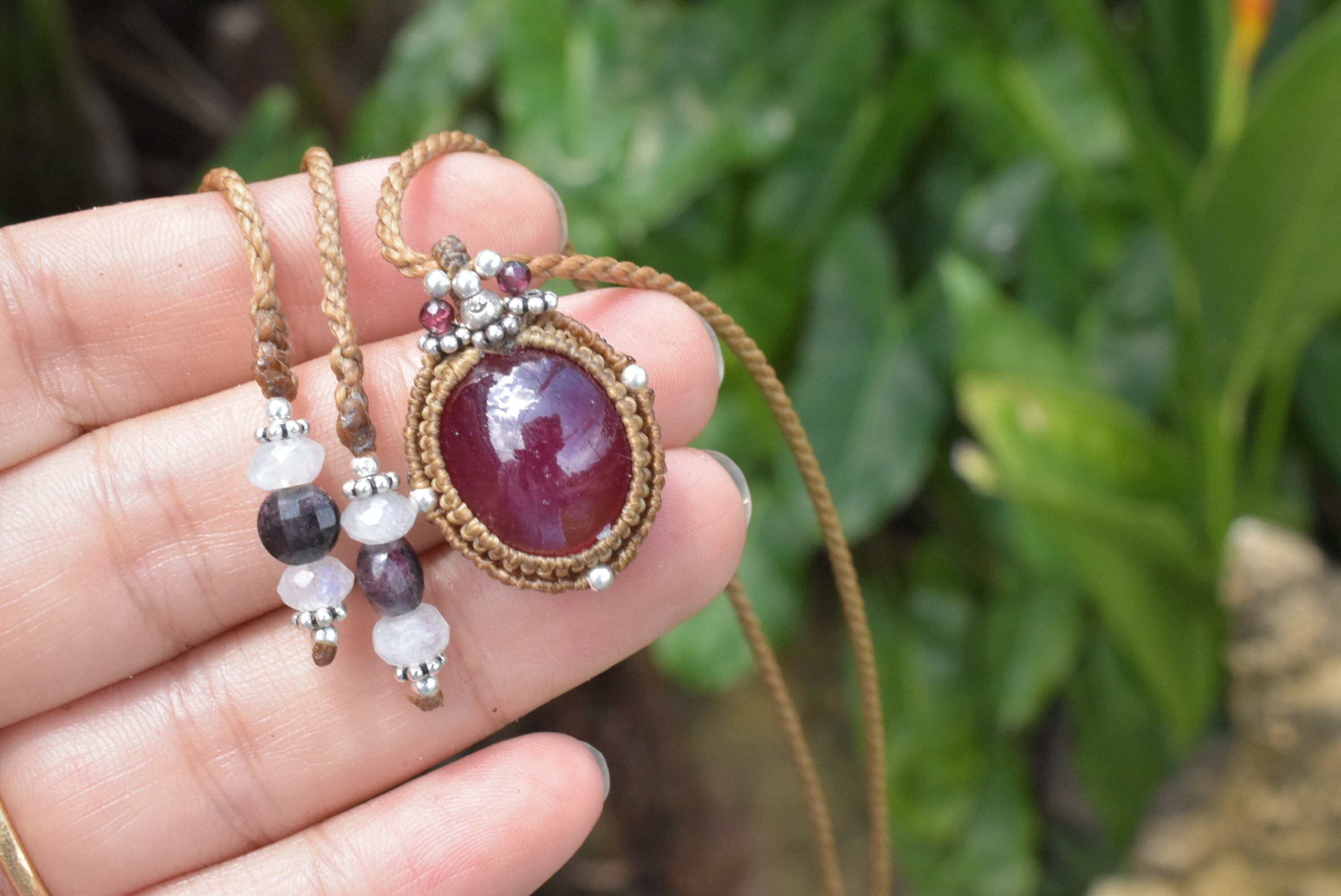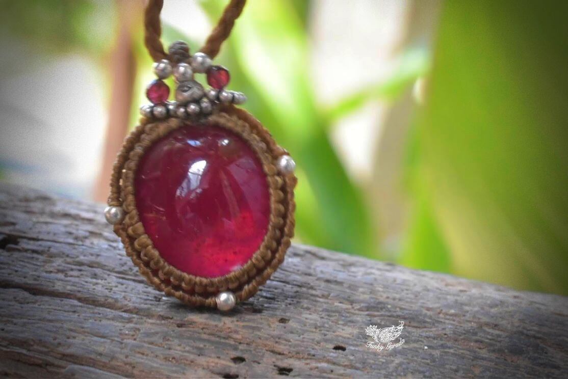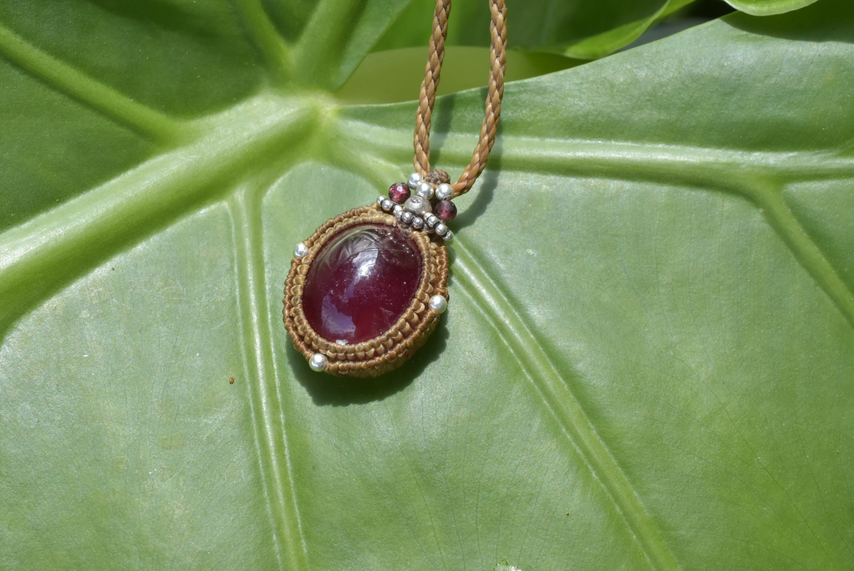 身につけていただいて、胸元をさりげなく美しくルビー色に輝かせるペンダント を意識して制作しました。