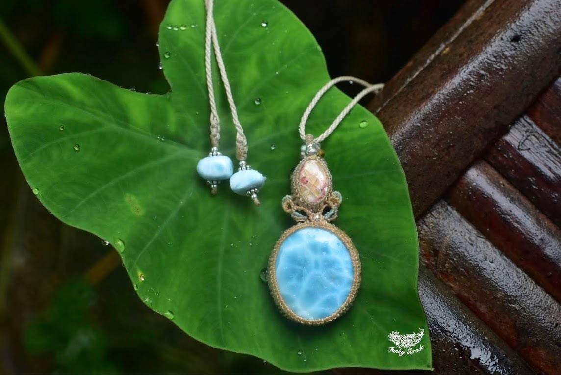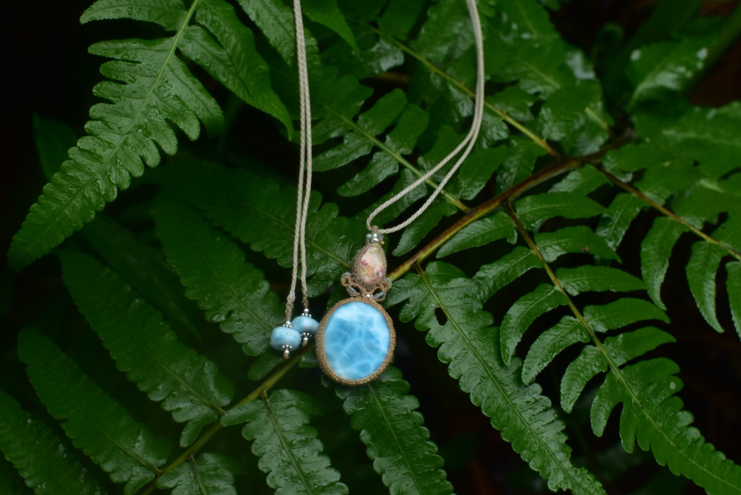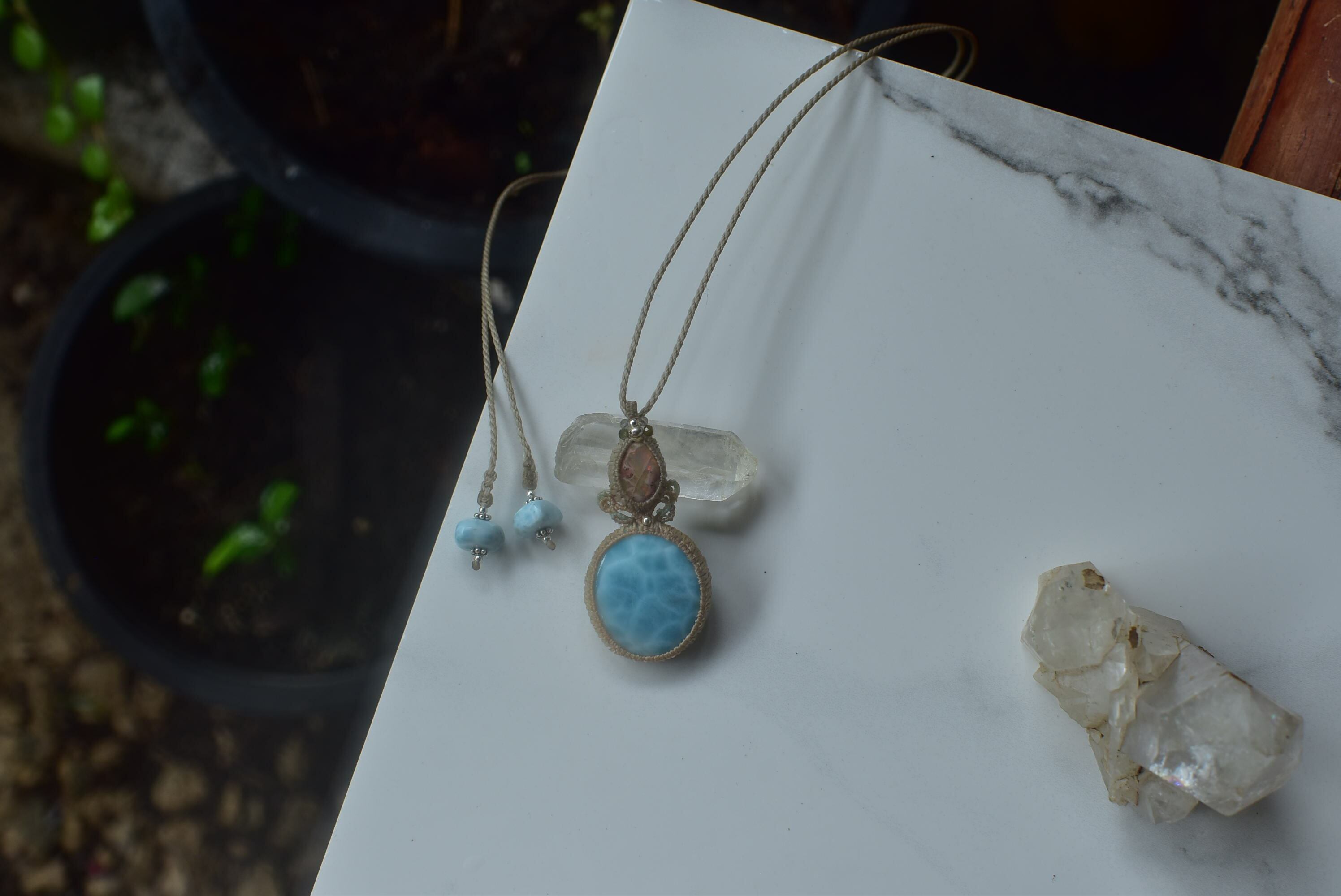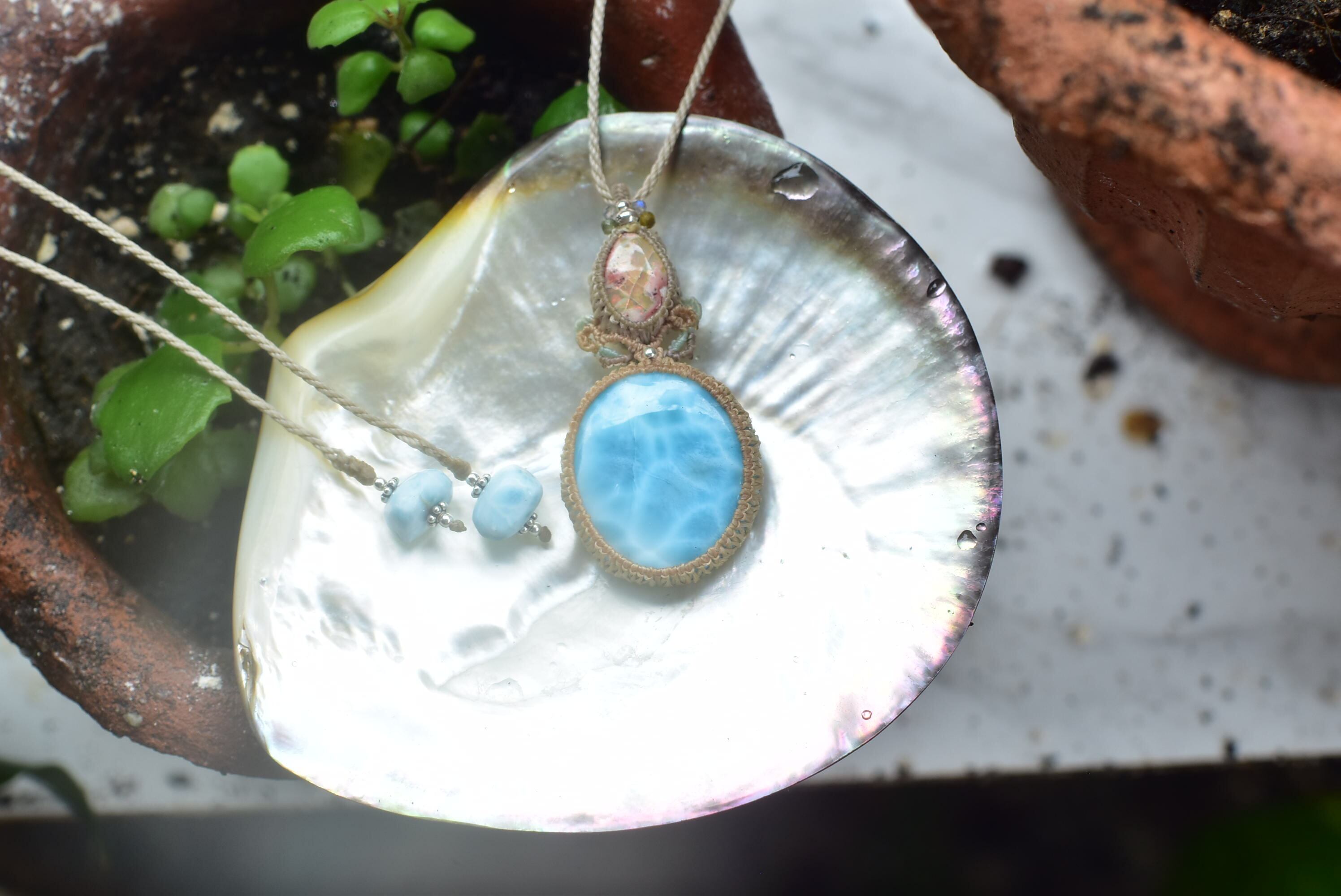 高品質ラリマーとカンテラオパールのピンクプリズム マクラメペンダントlari037