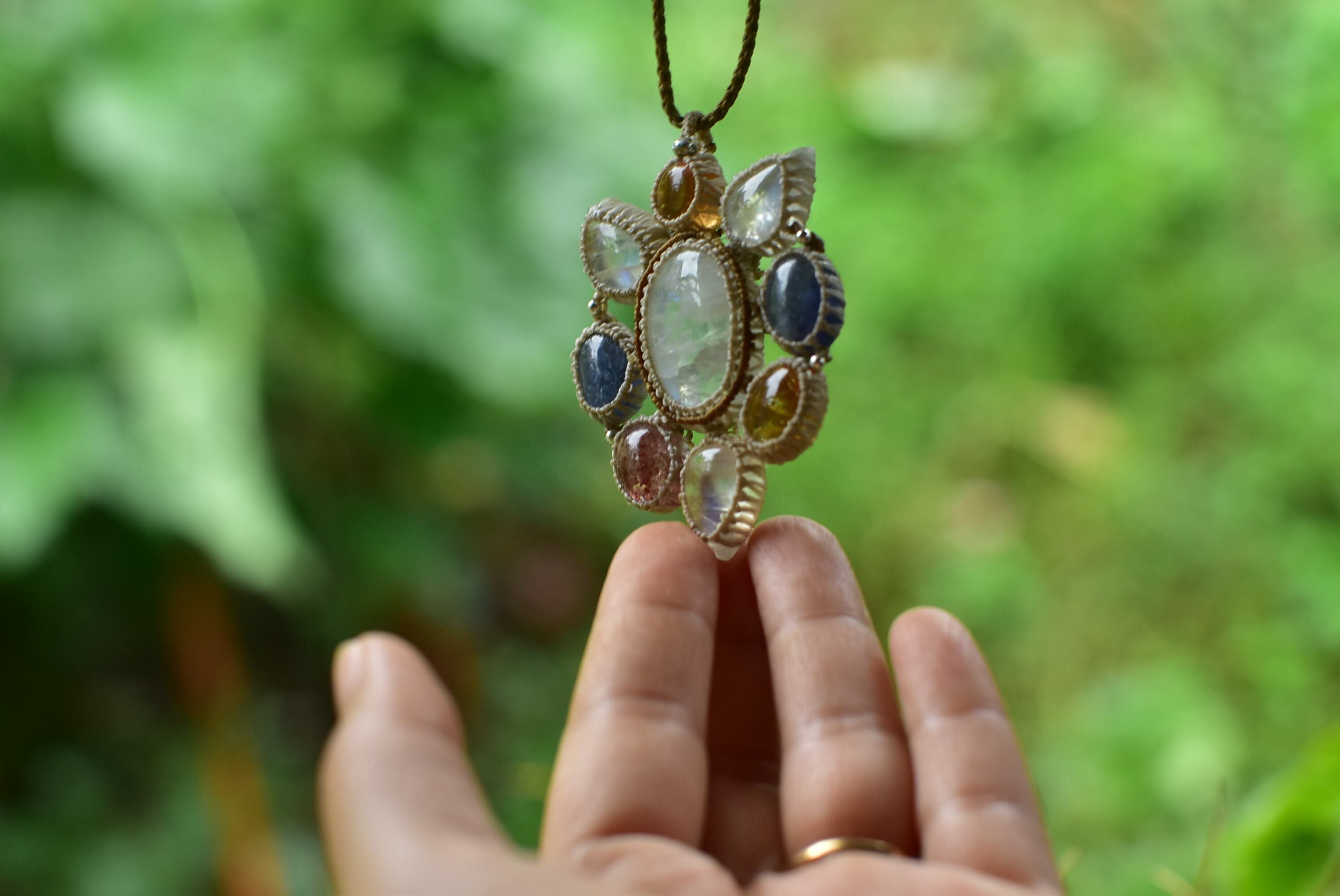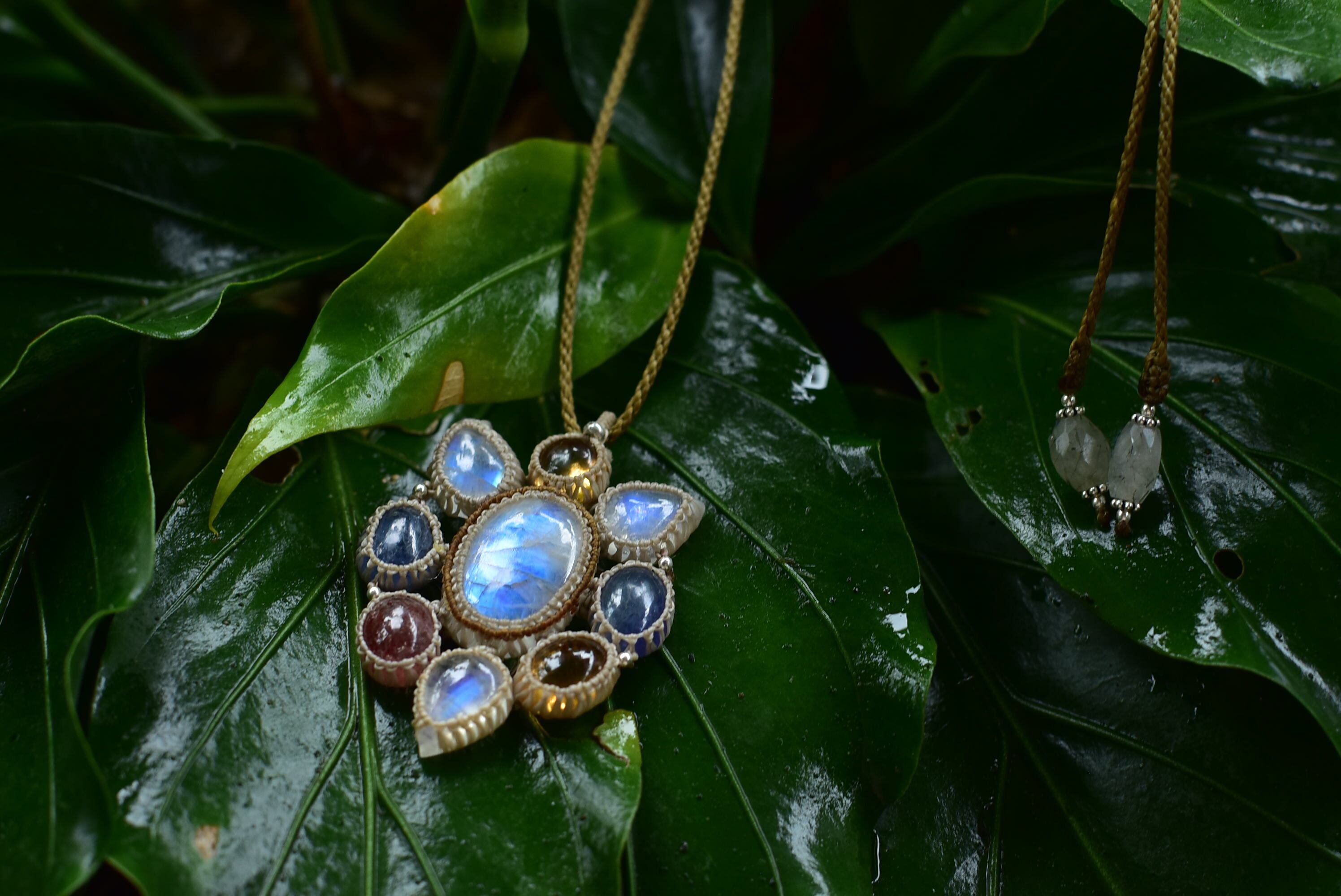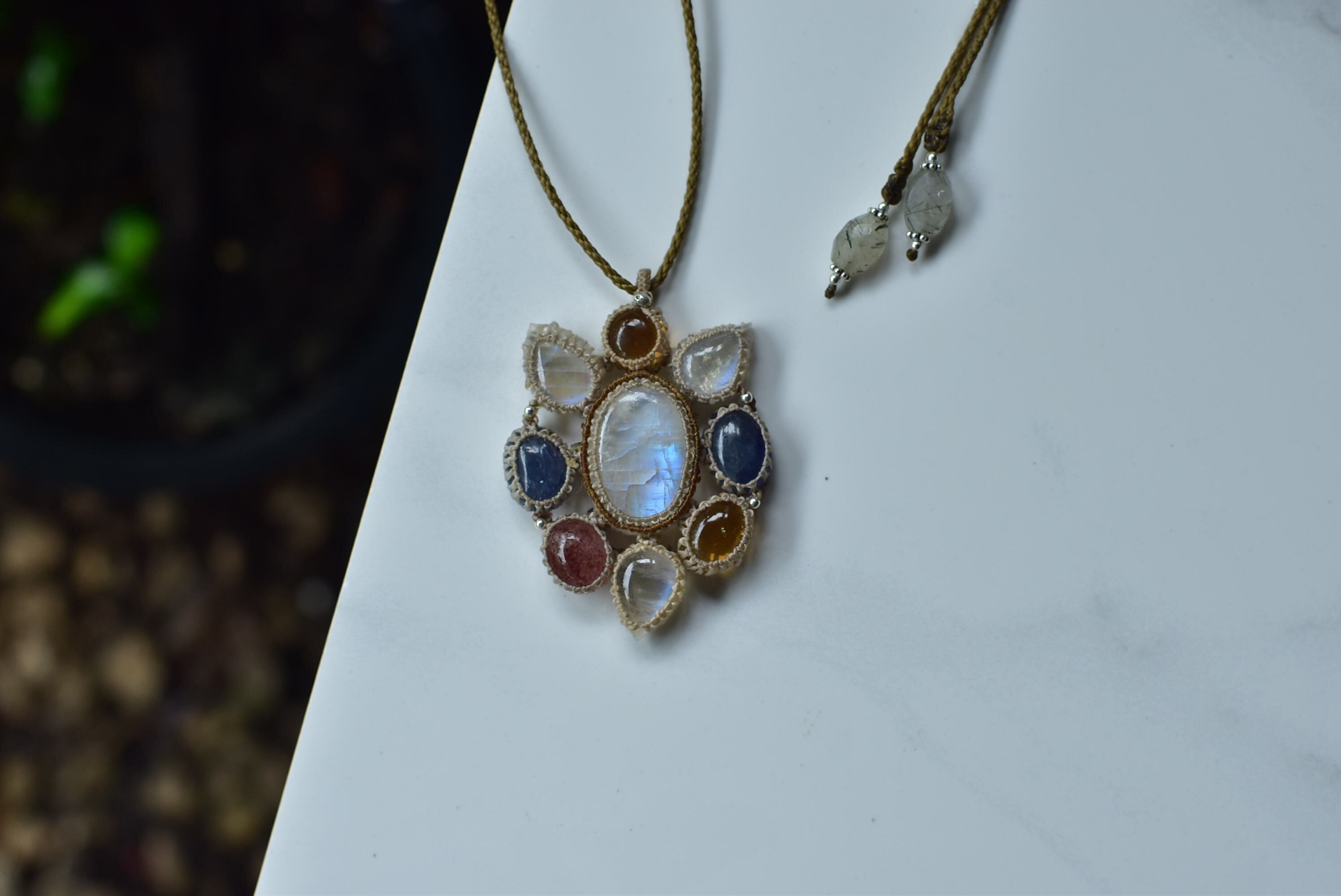 流星★レインボームーンストーンの世界 マクラメペンダント moon049