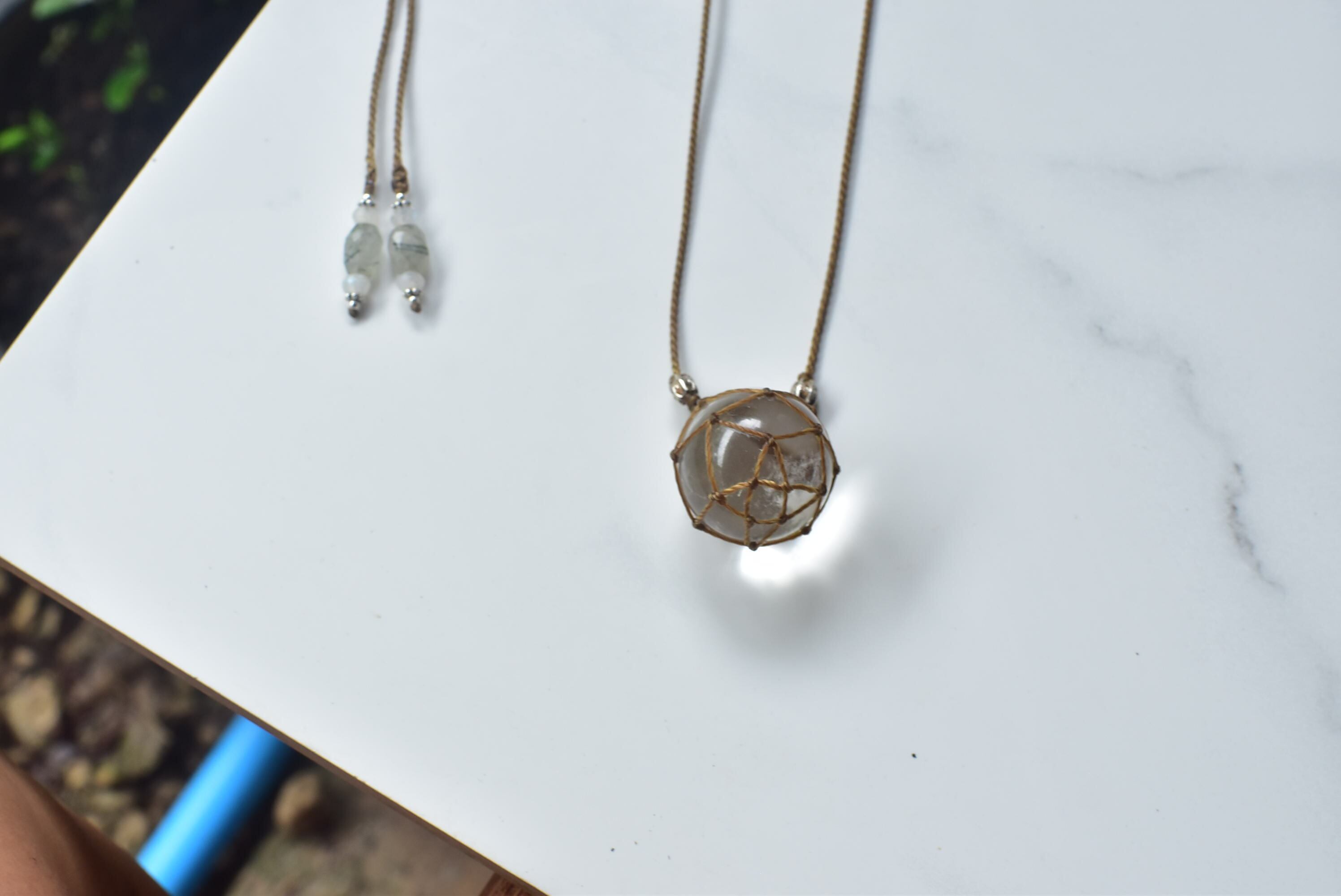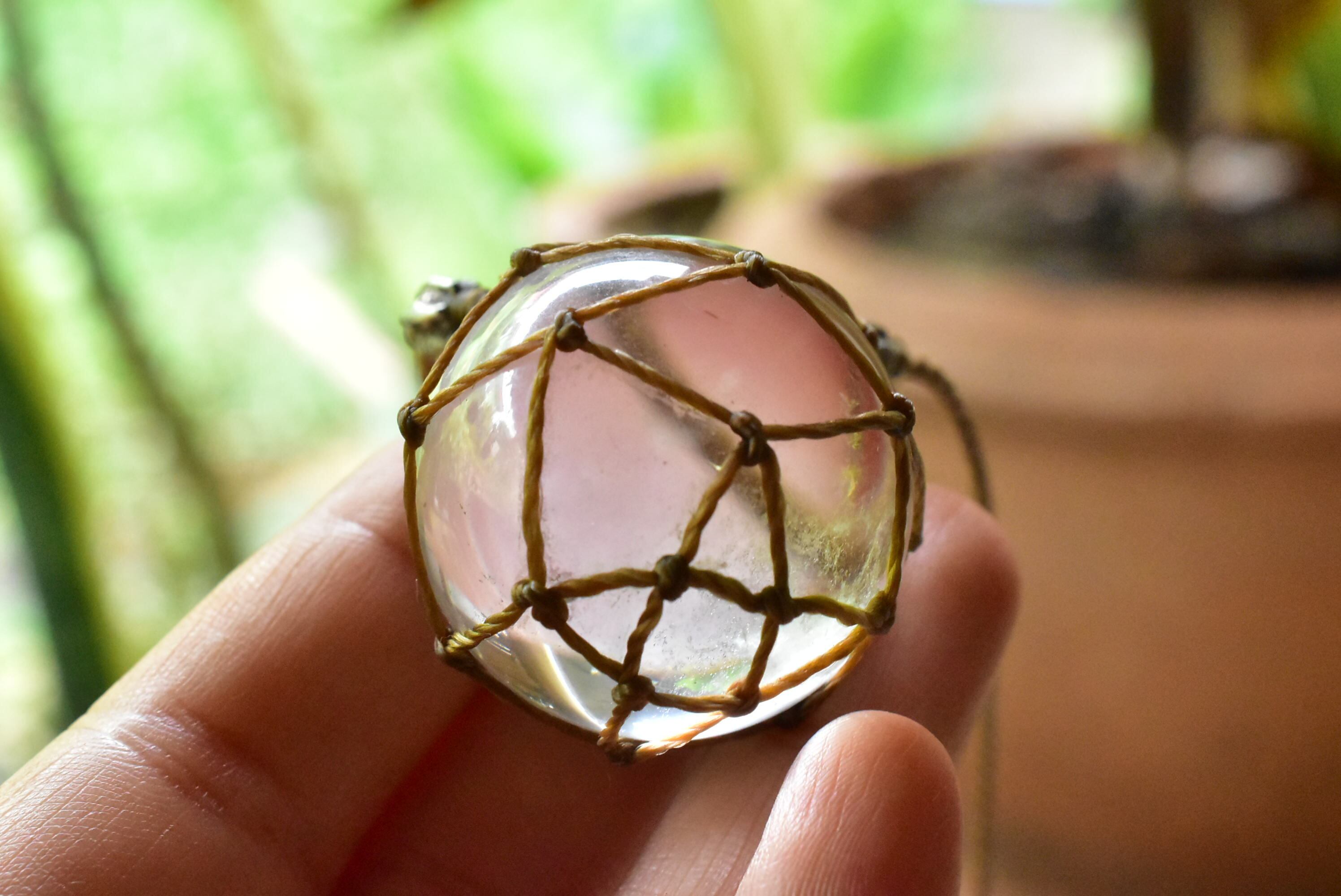 透明感とヒーリング★クリスタルボール マクラメネックレスcrym002