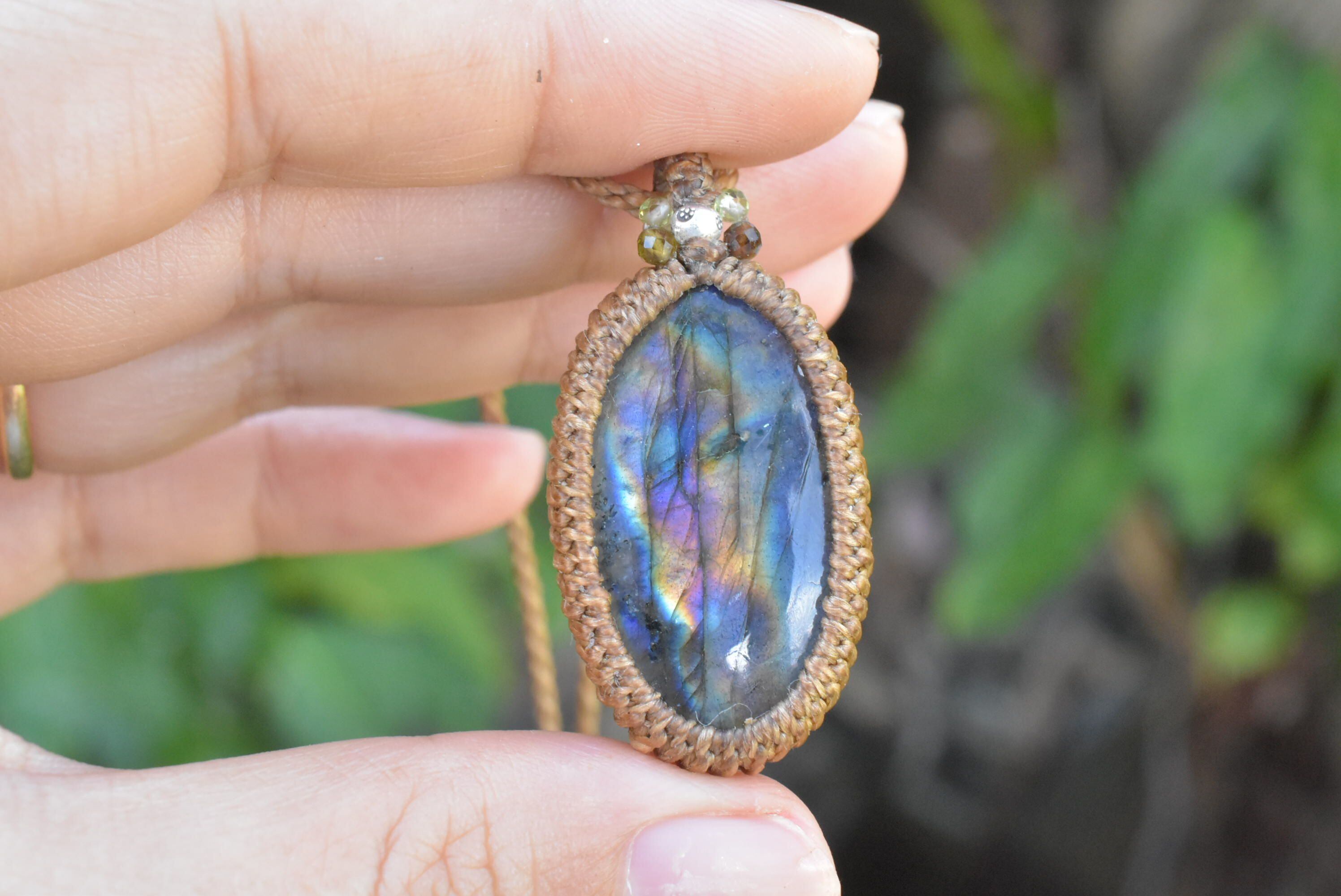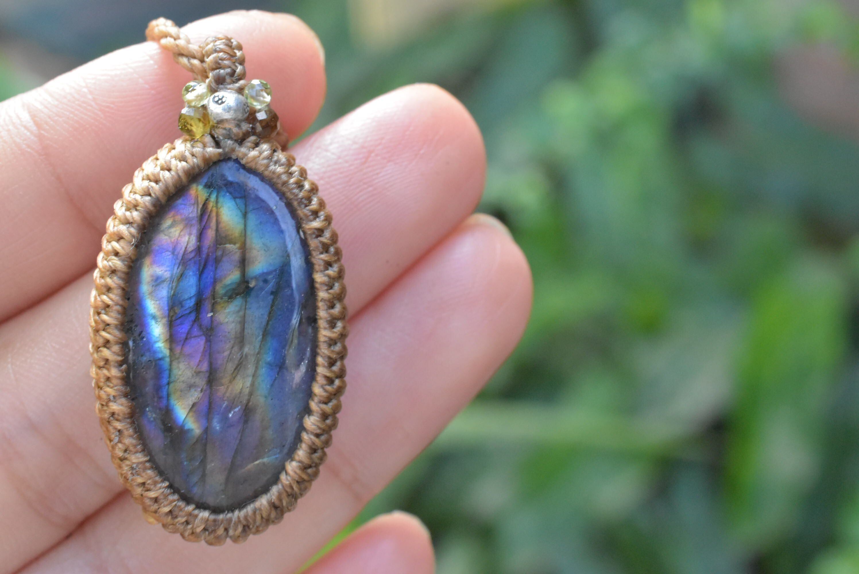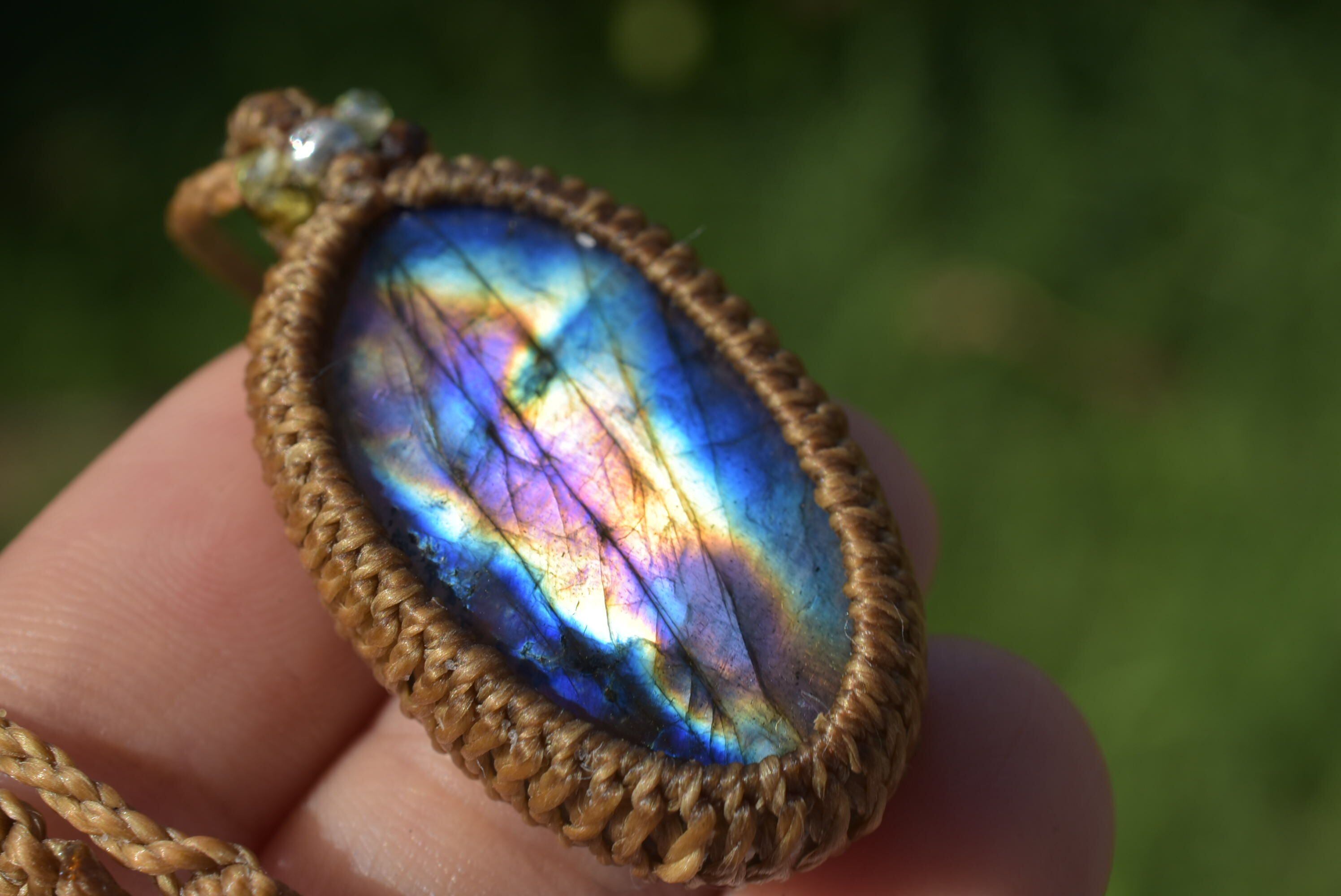 虹色天の川★パープルラブラドライトマクラメペンダント lay006