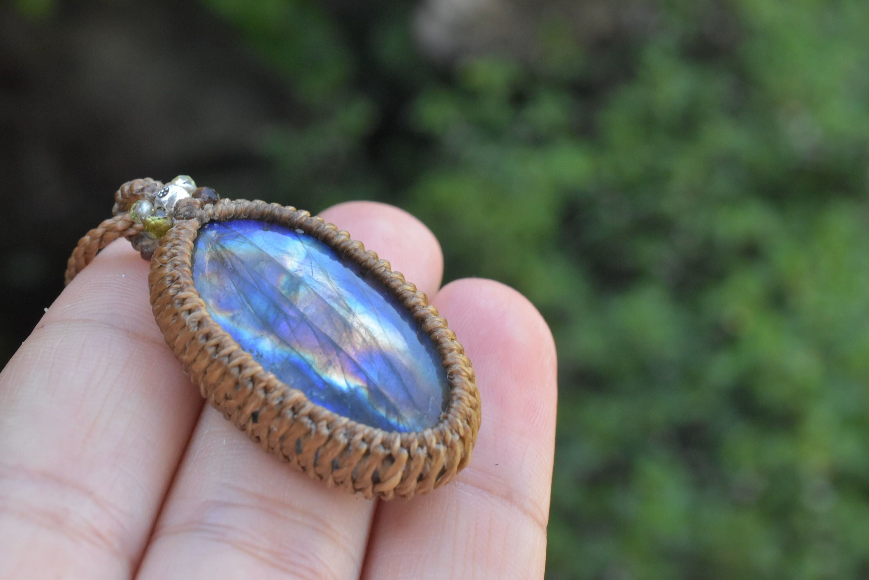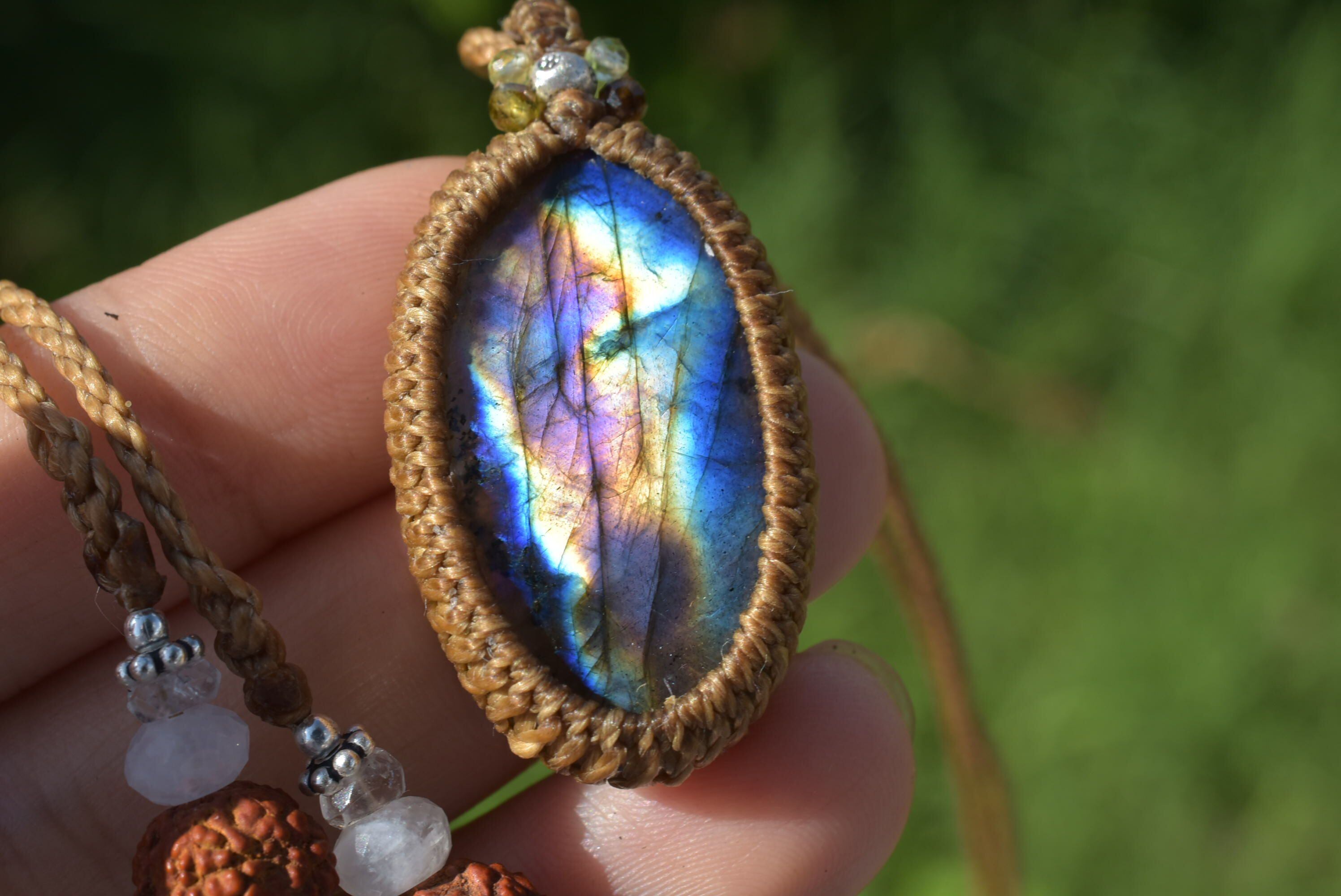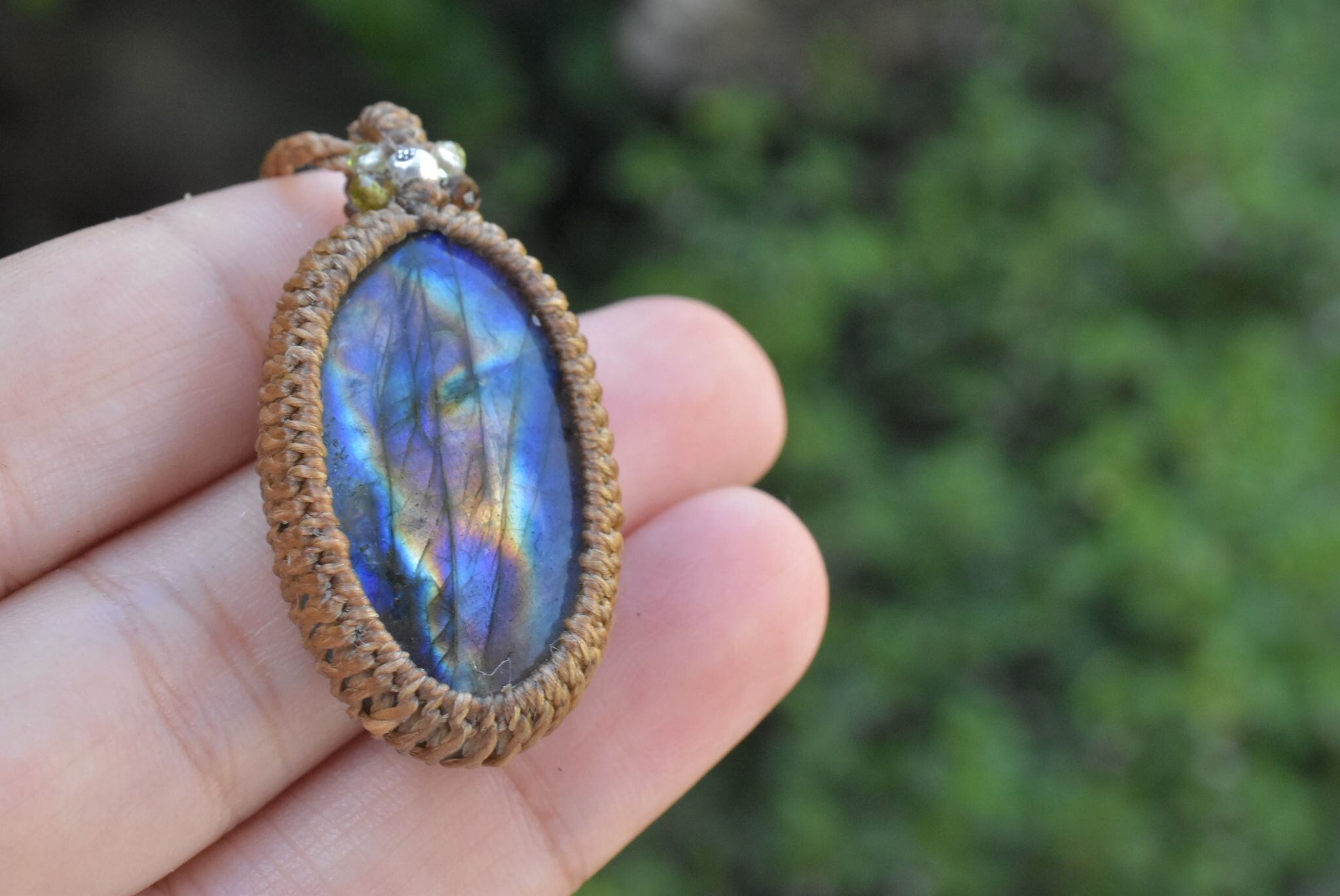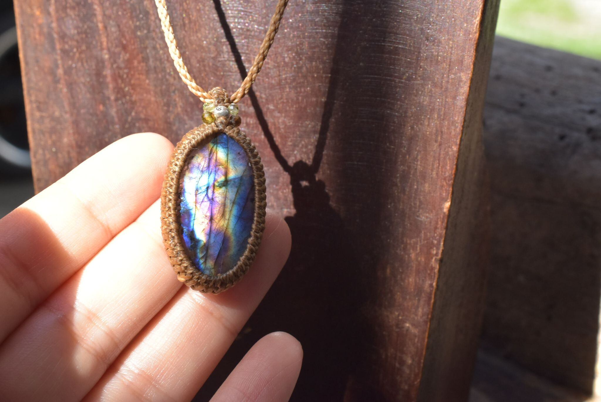 虹色天の川★パープルラブラドライトマクラメペンダント lay006