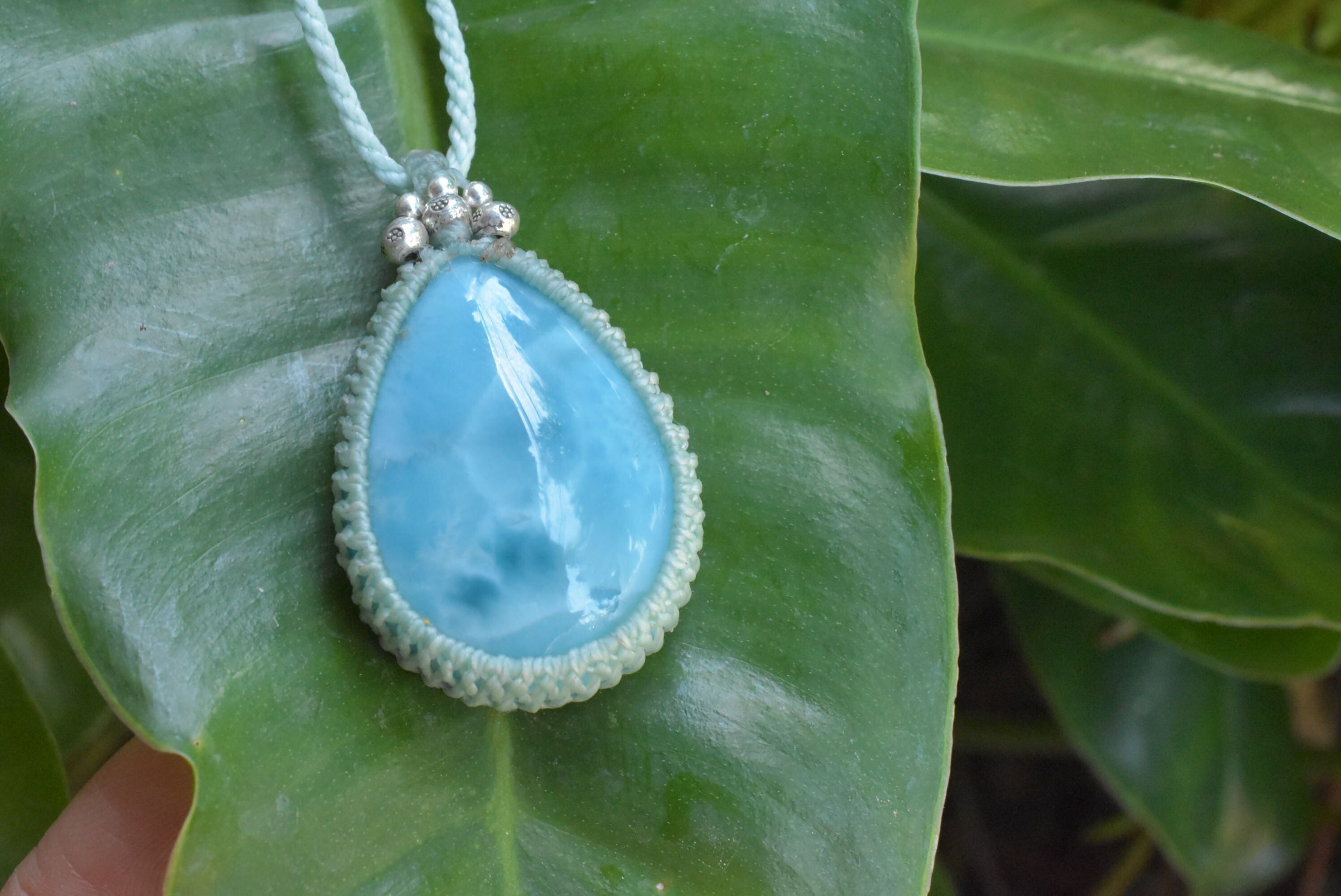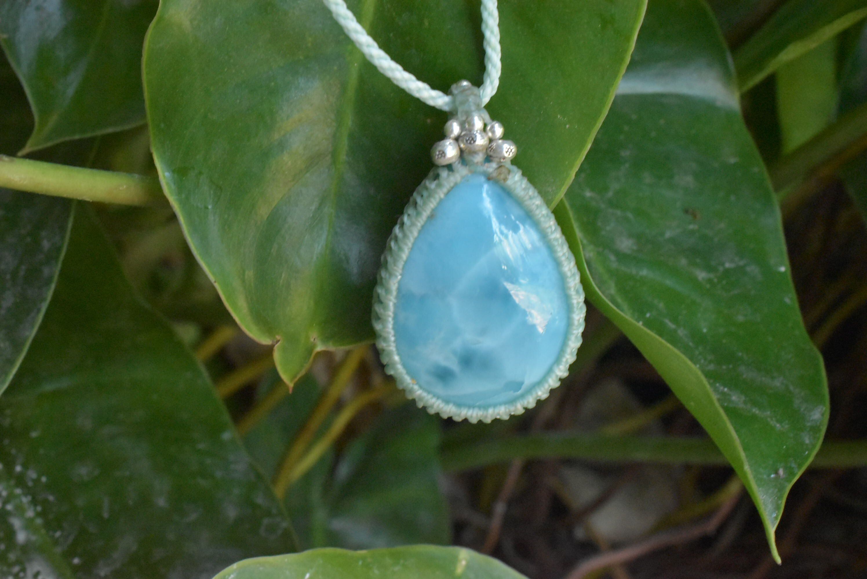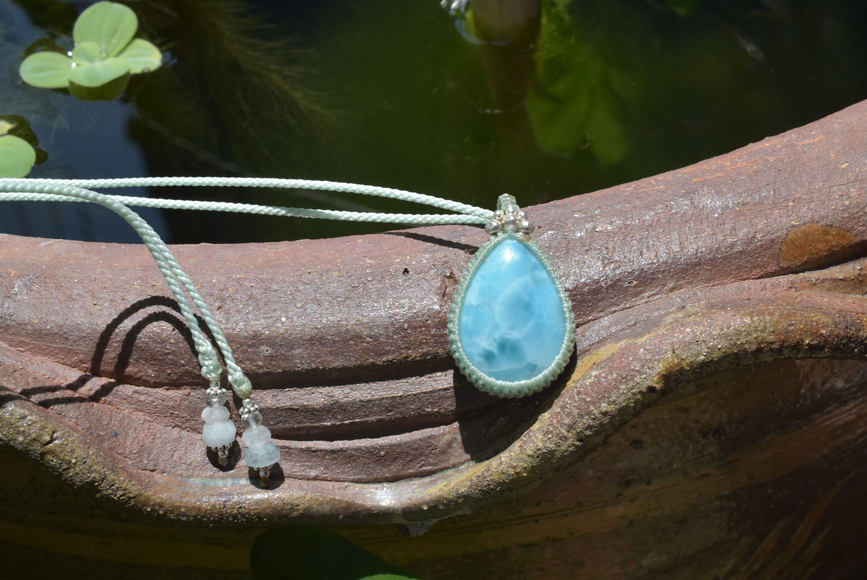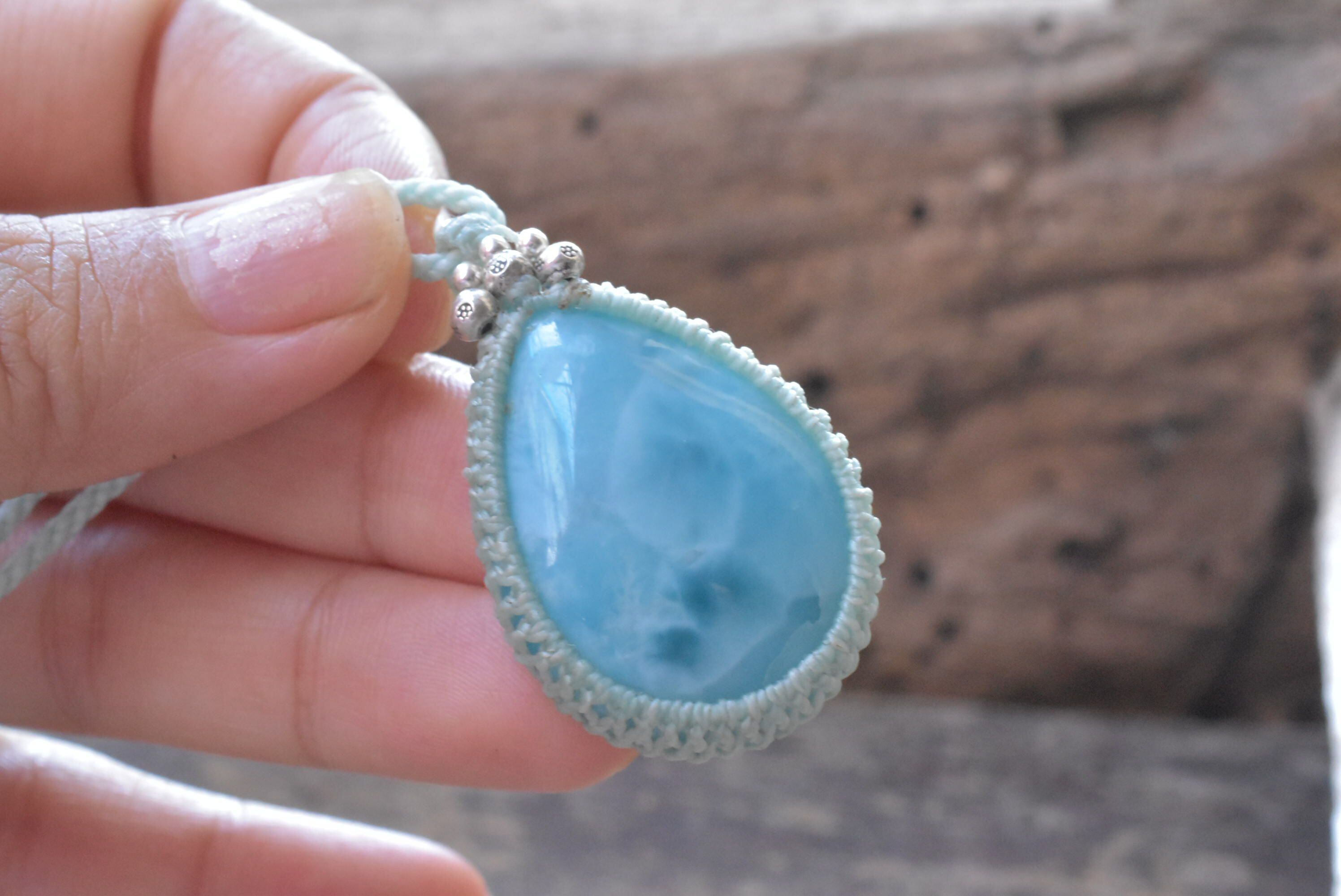 穏やかな水面★ぷっくり高品質ラリマー マクラメペンダント lary005