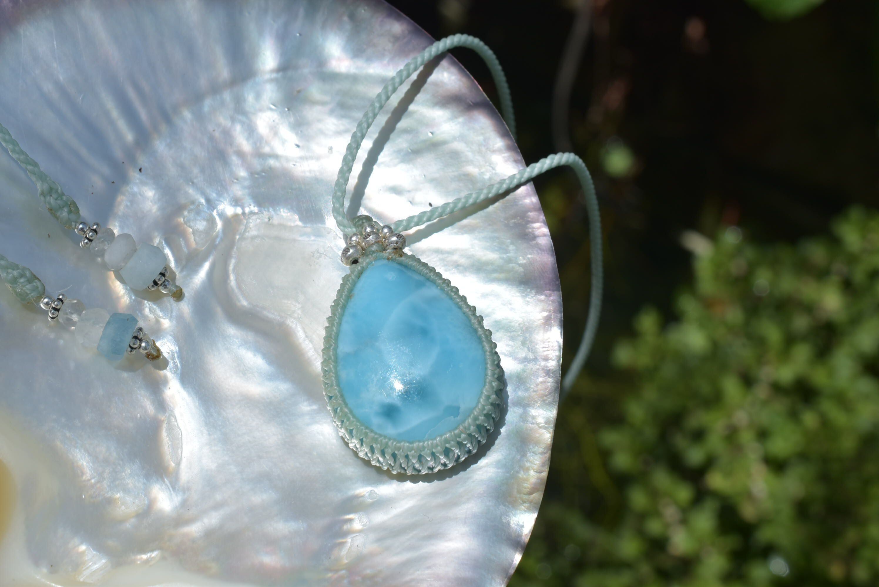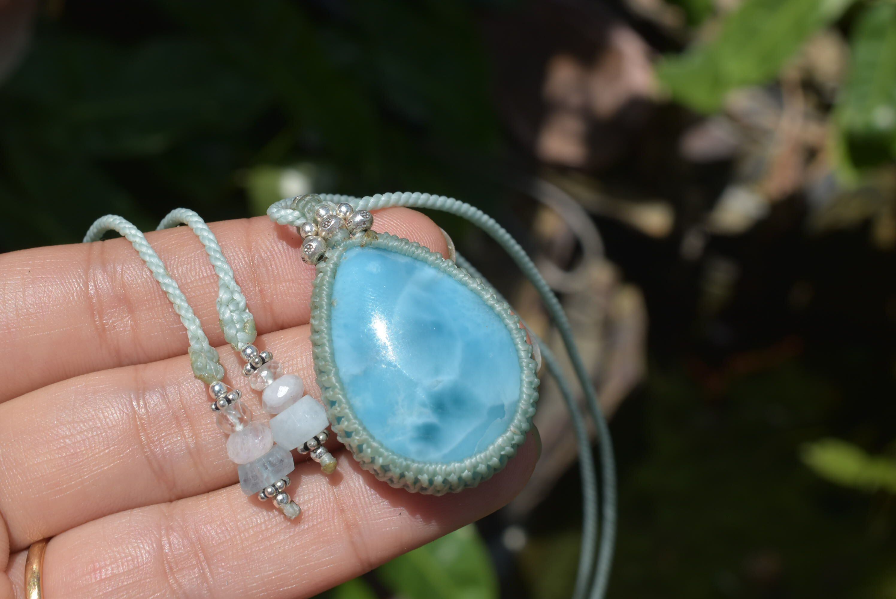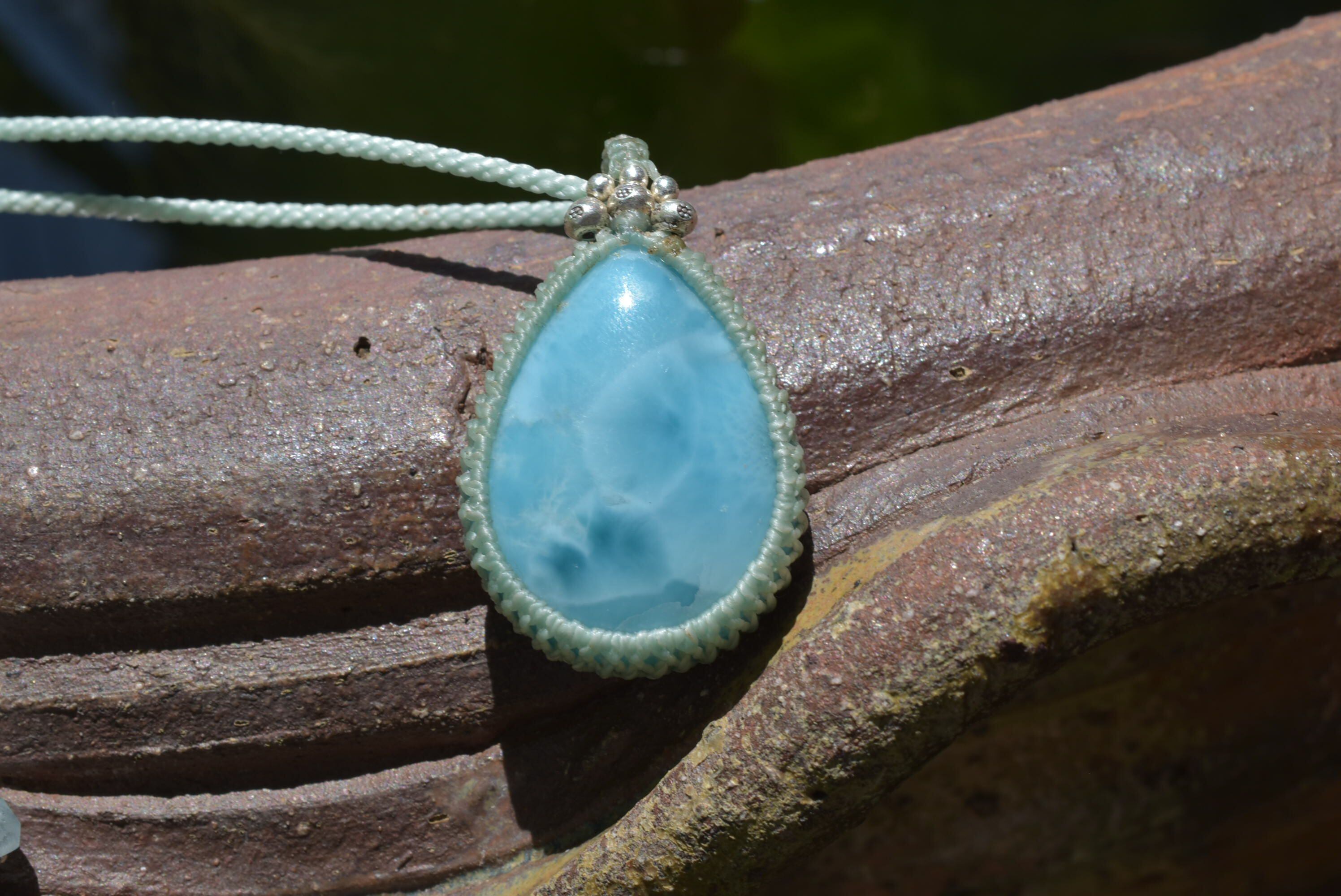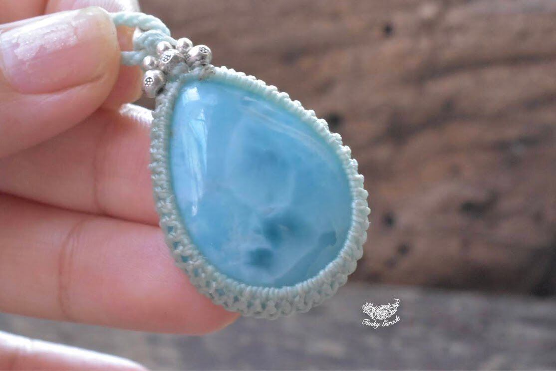 穏やかな水面★ぷっくり高品質ラリマー マクラメペンダント lary005