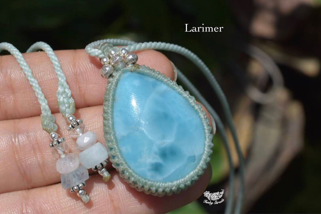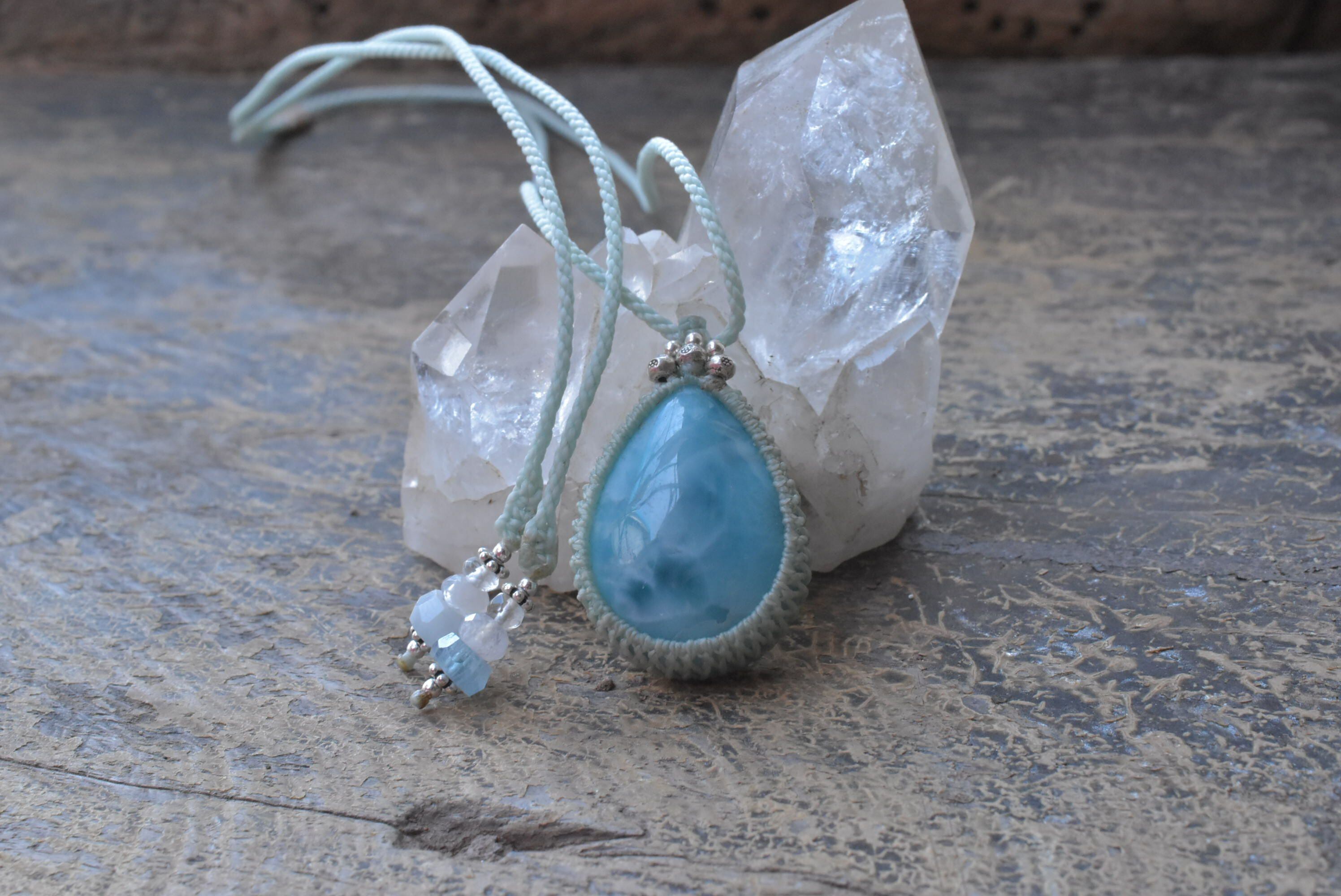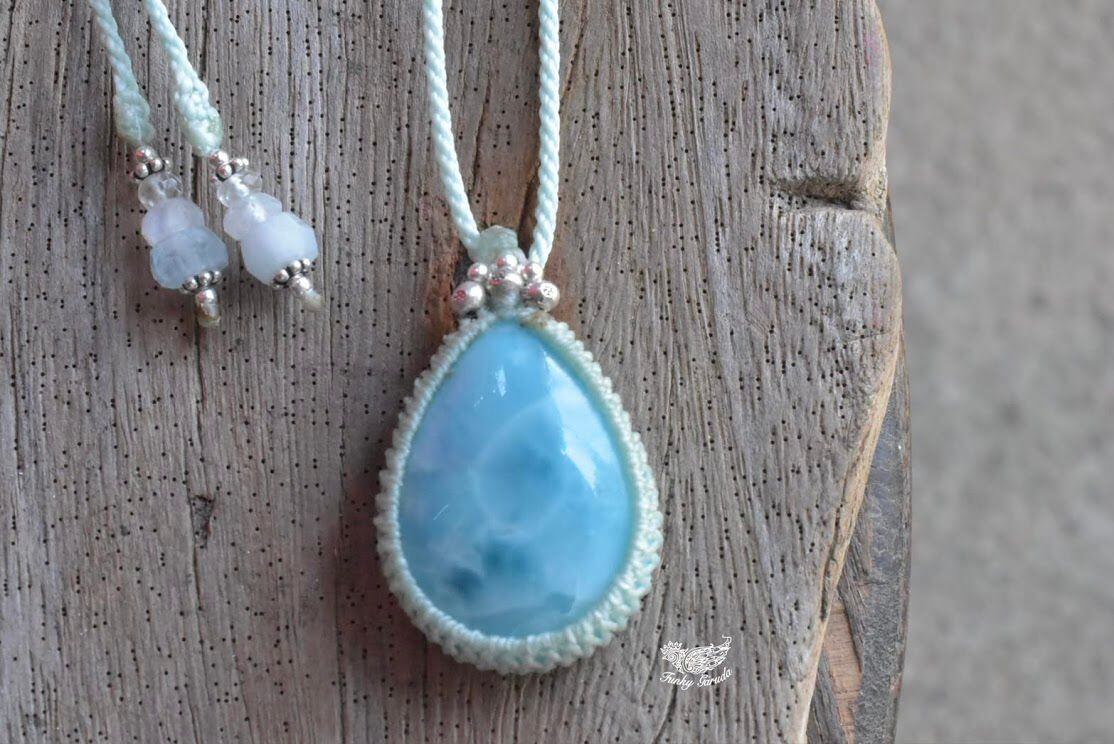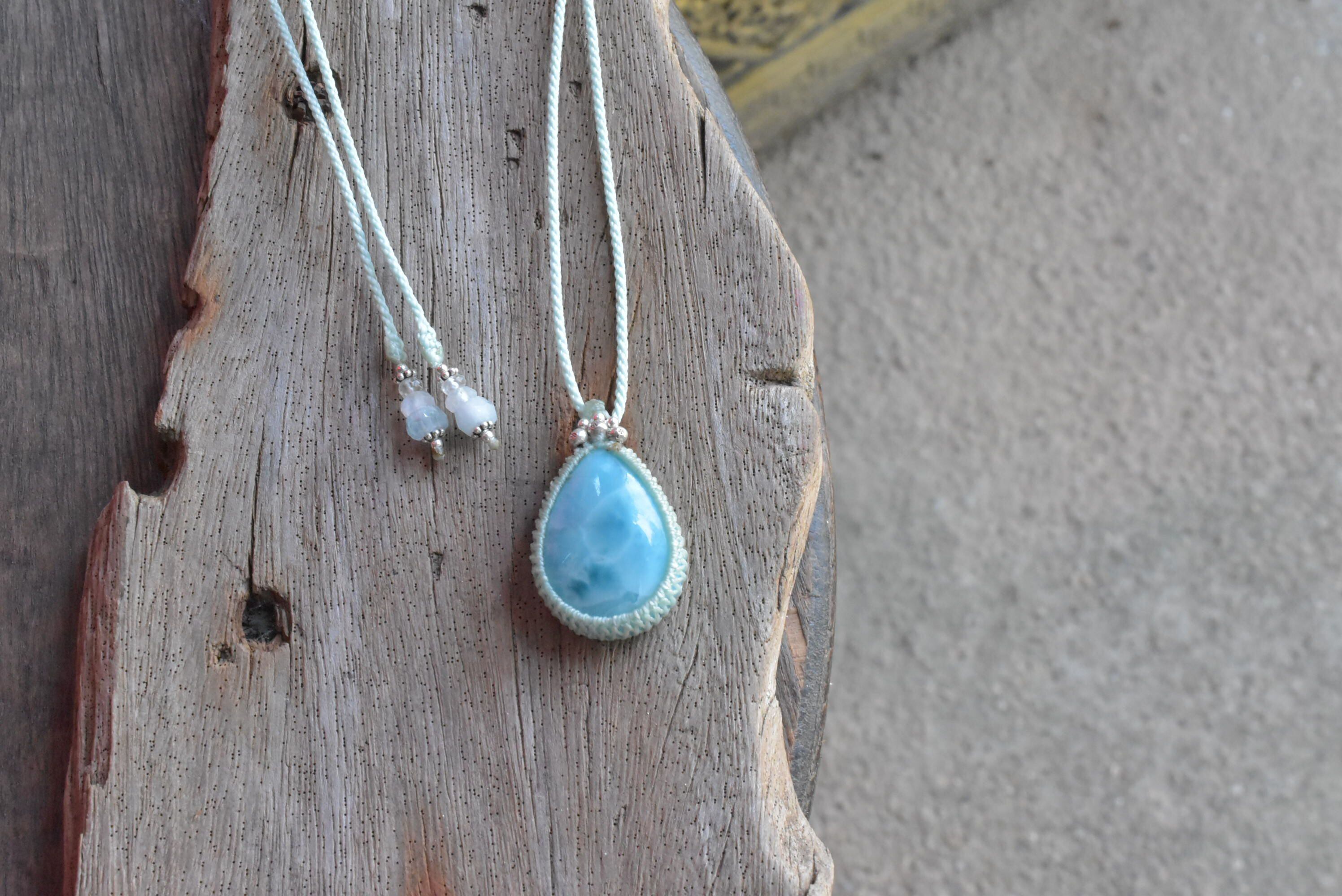 穏やかな水面★ぷっくり高品質ラリマー マクラメペンダント lary005