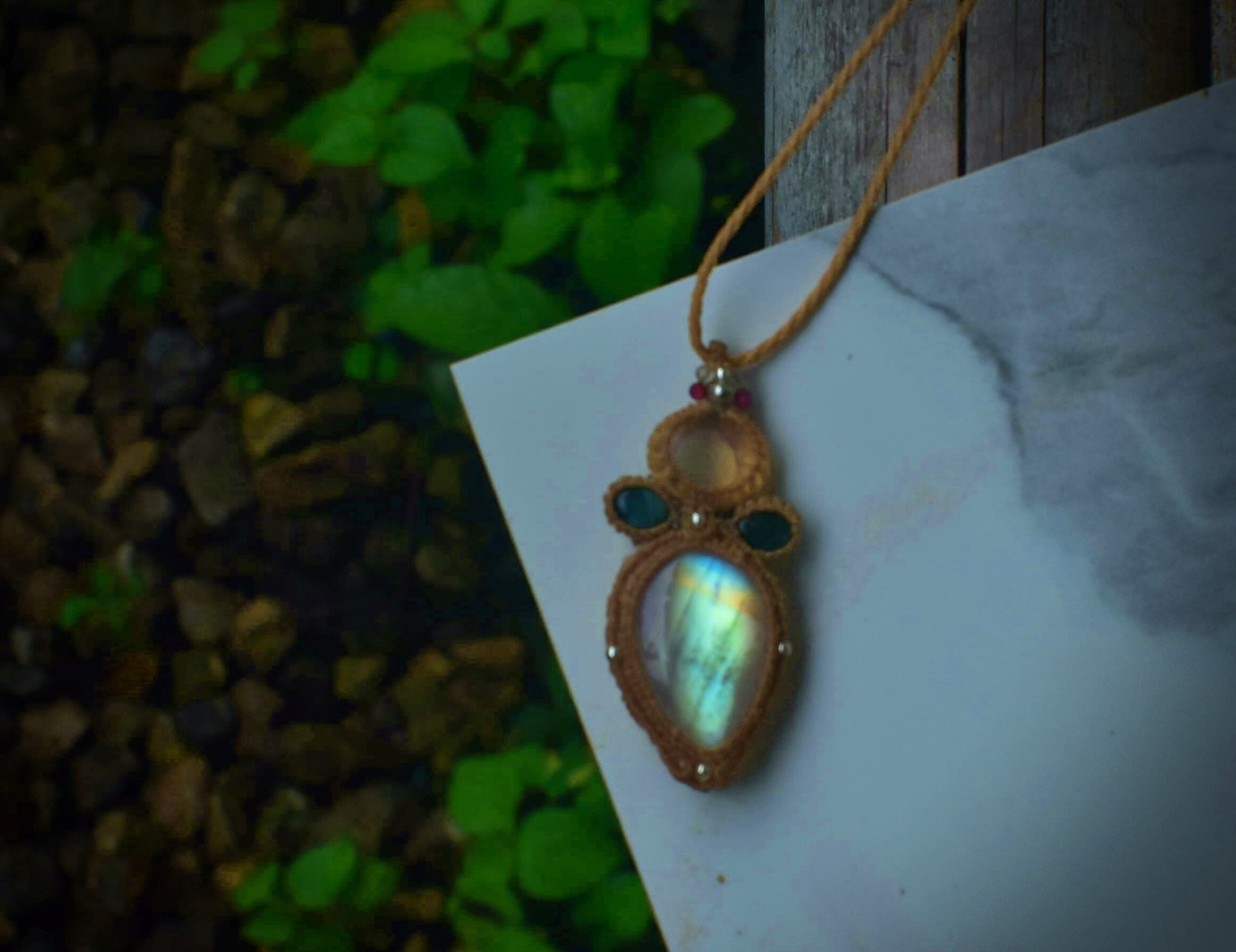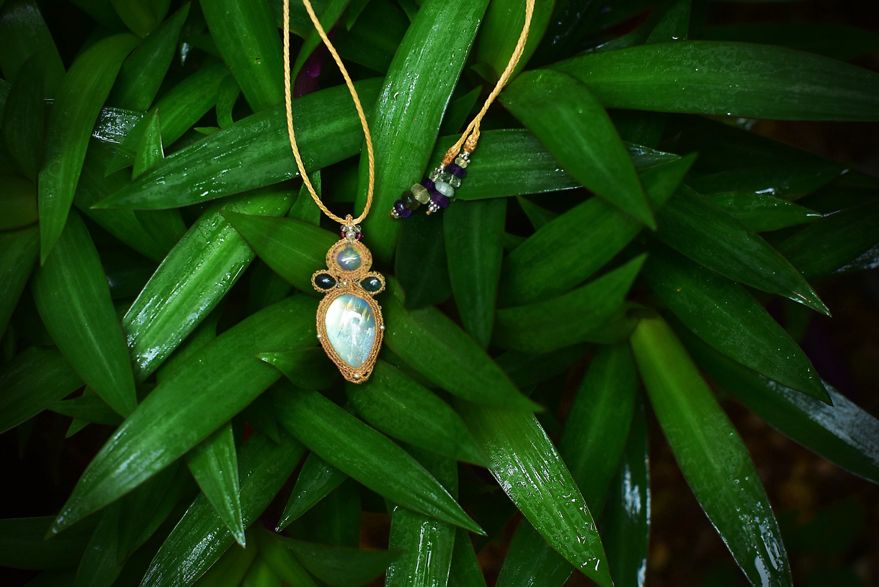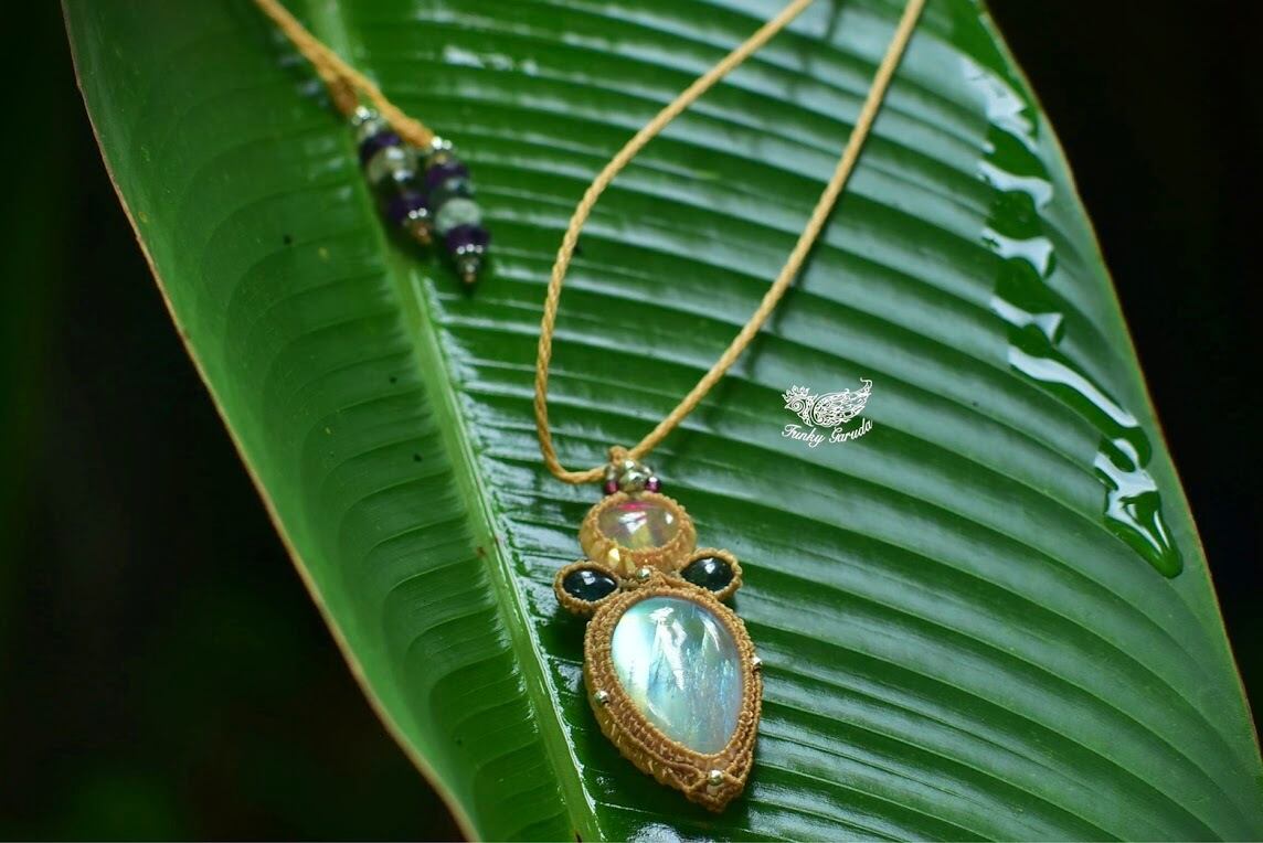 レア★黄金の月★イエローゴールド★レインボームーンストーン マクラメペンダントmoon048