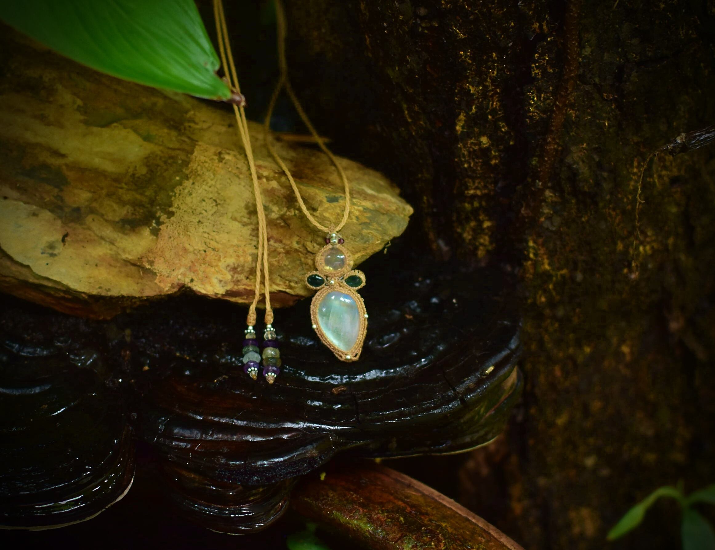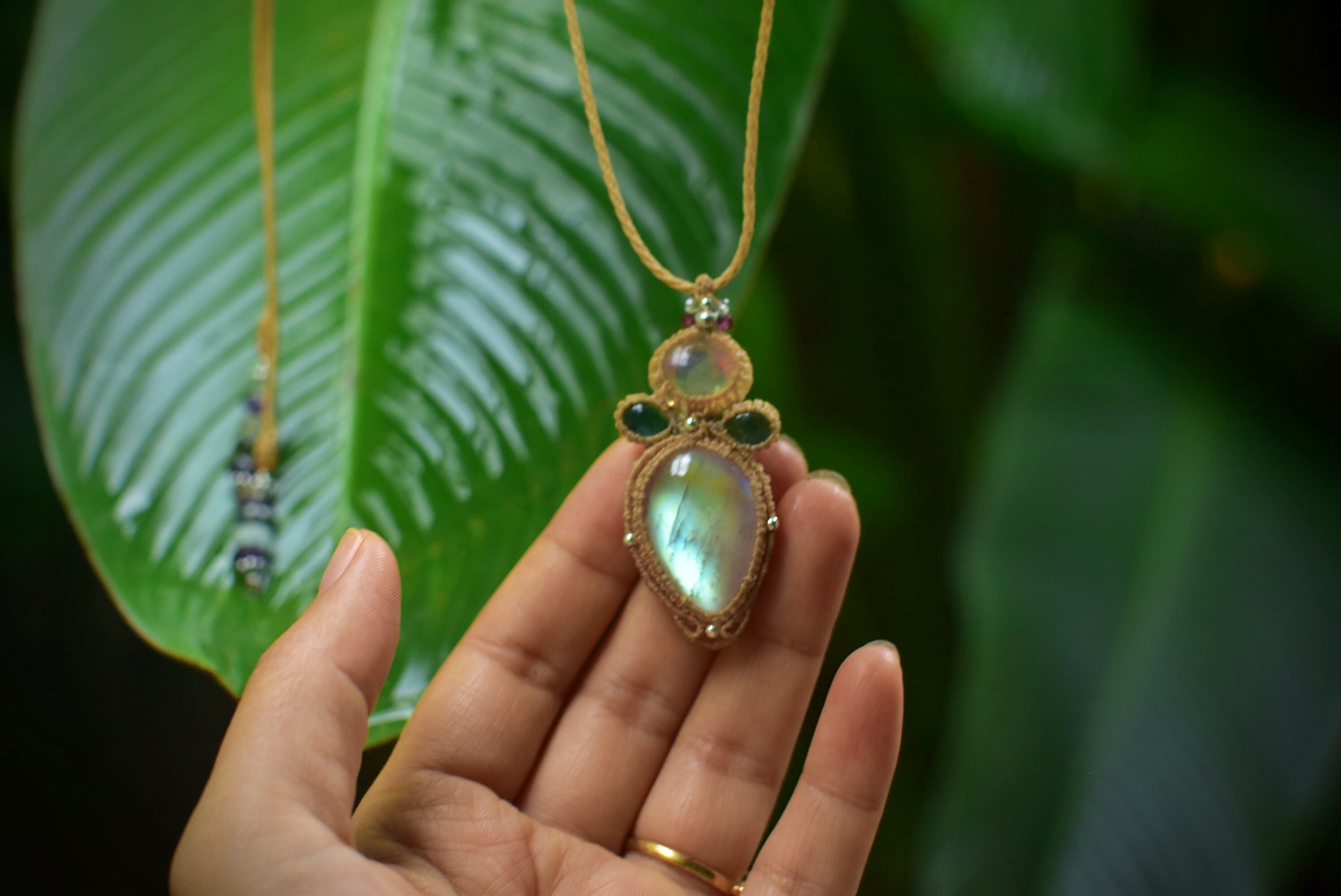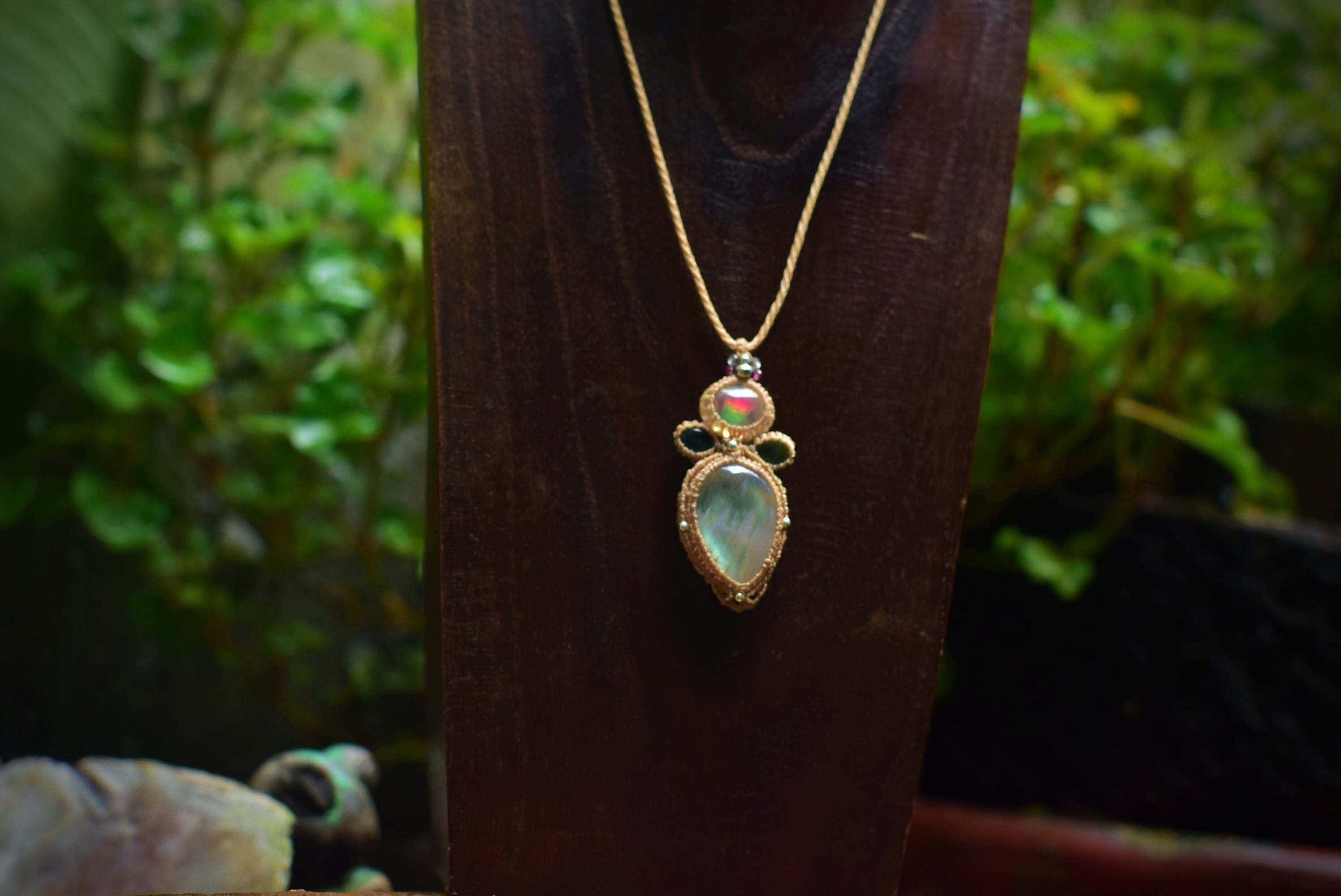 レア★黄金の月★イエローゴールド★レインボームーンストーン マクラメペンダントmoon048