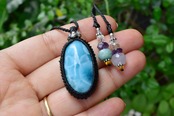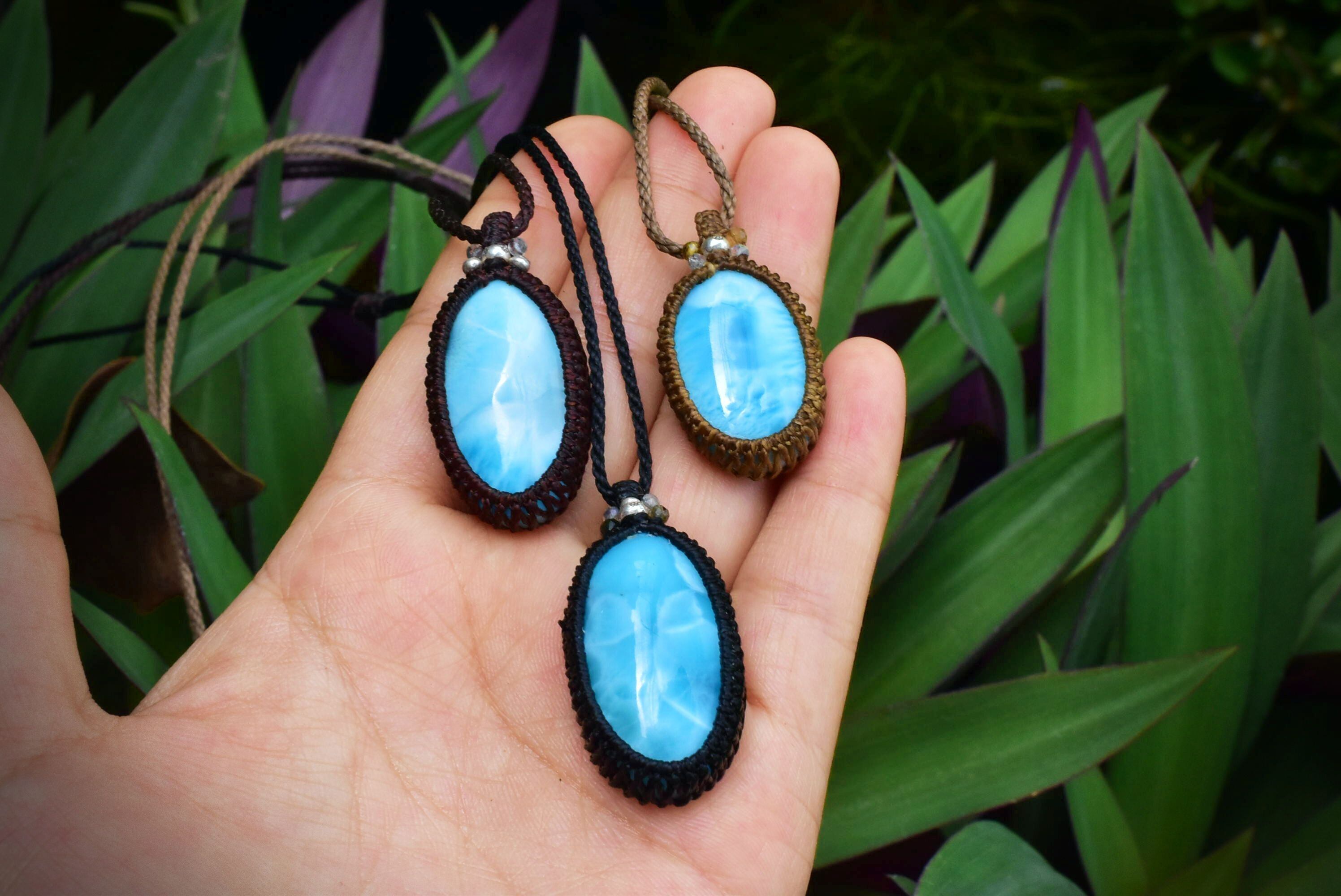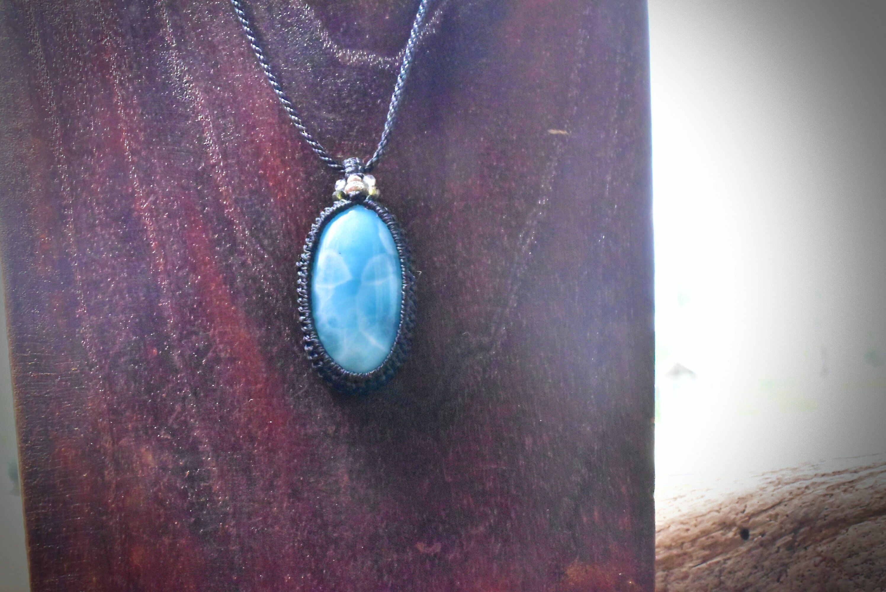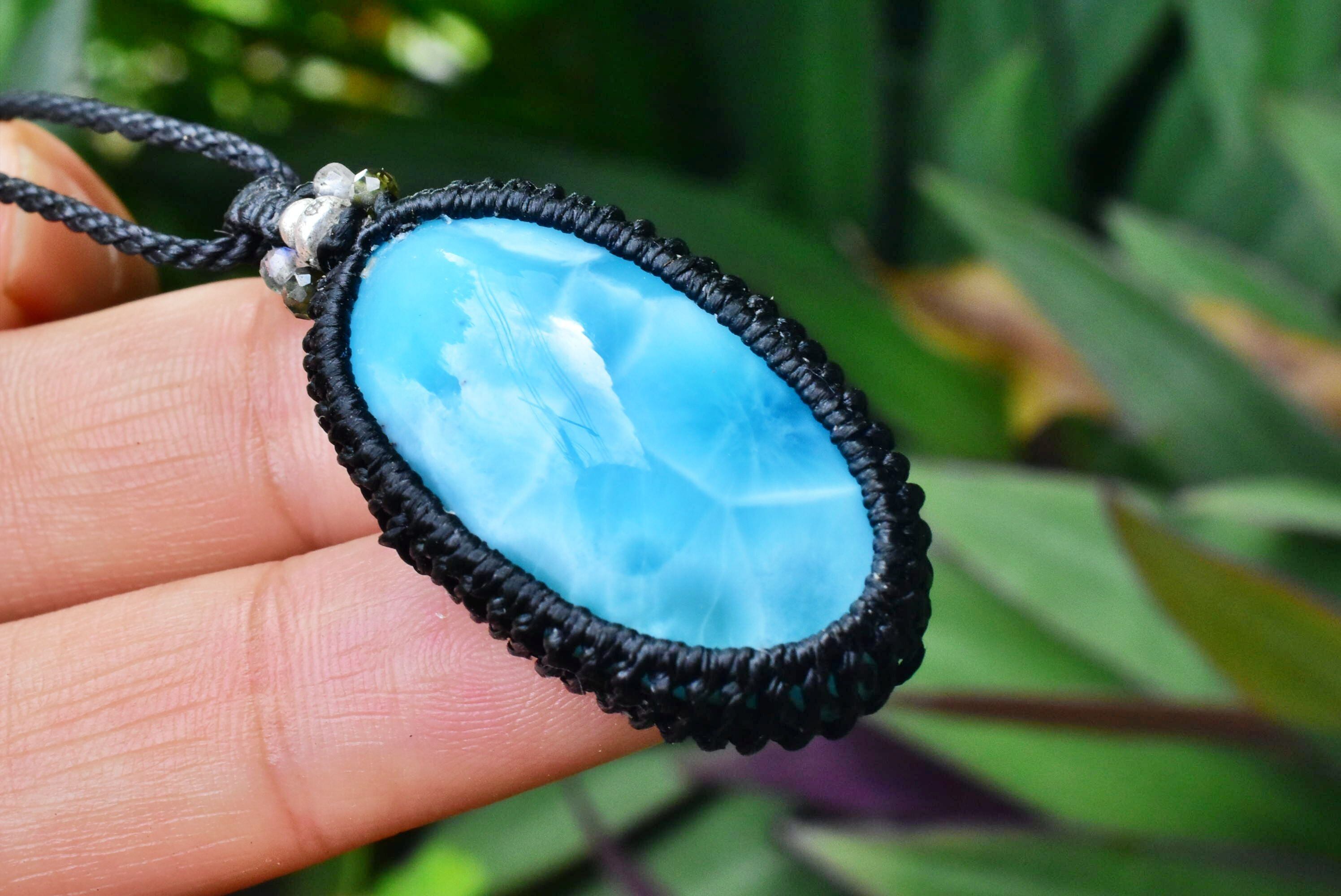 海の立体感★高品質ラリマー マクラメペンダント lary006
