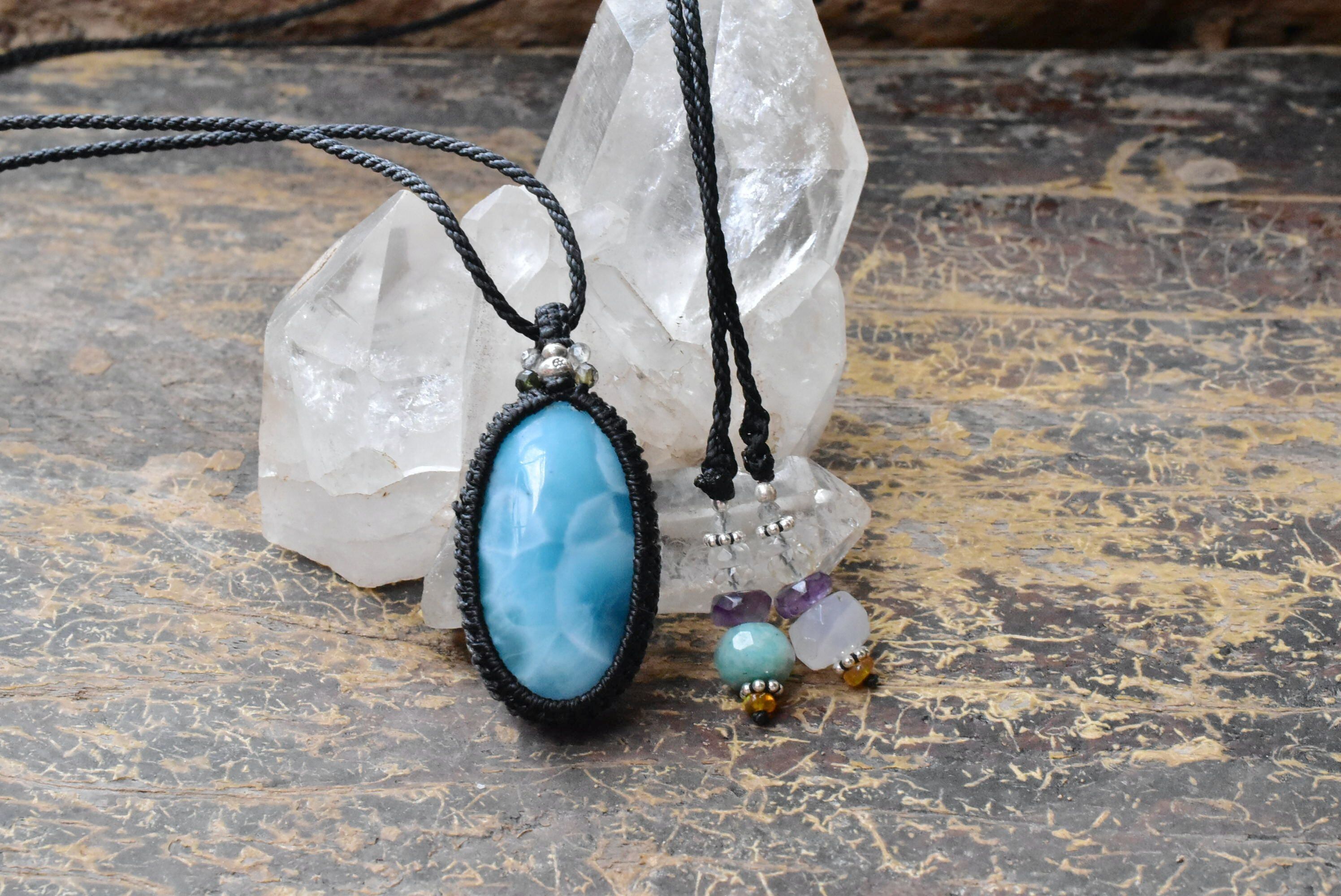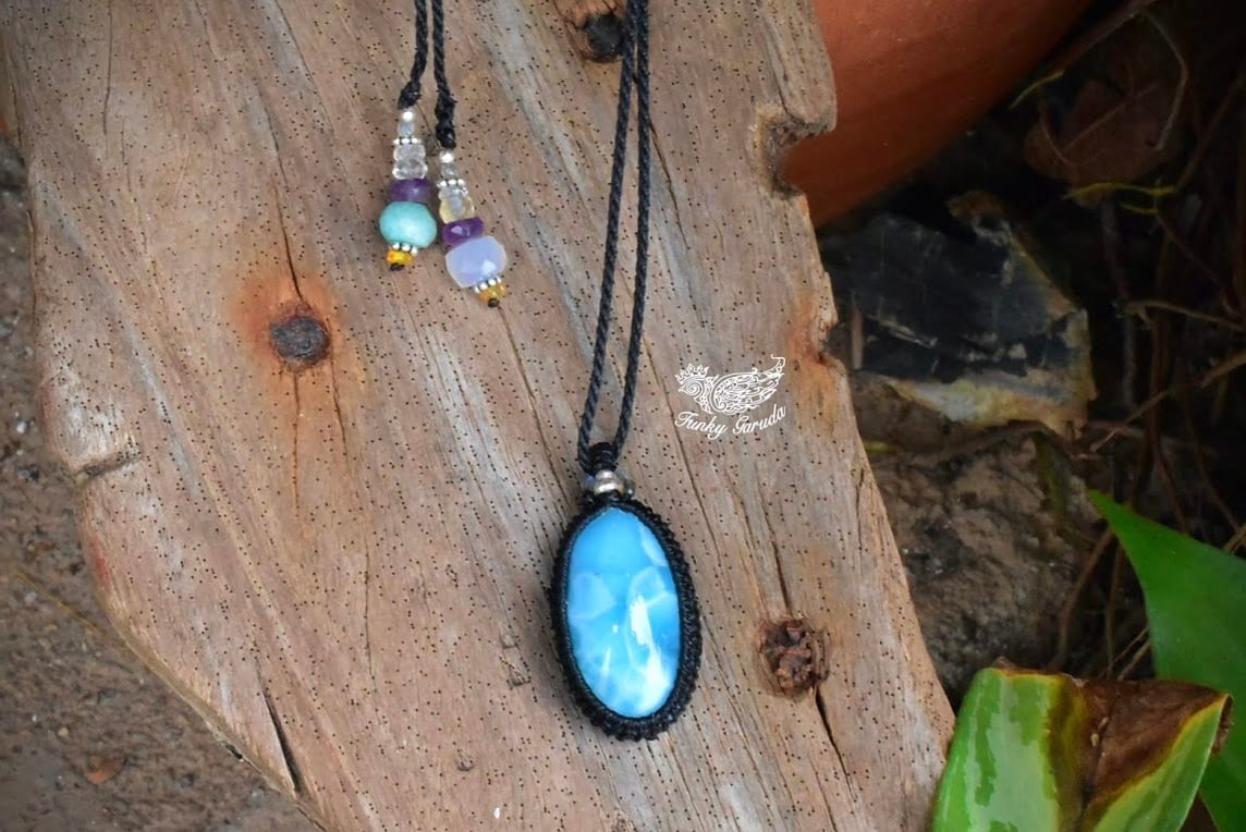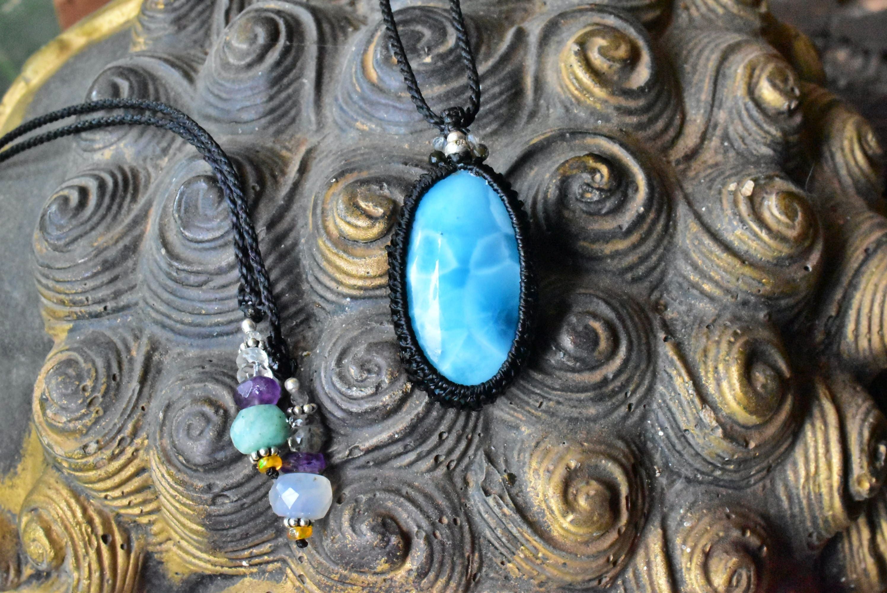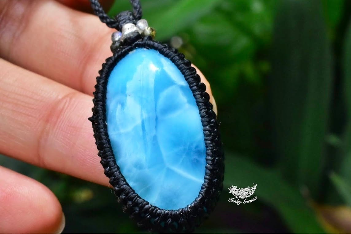 海の立体感★高品質ラリマー マクラメペンダント lary006