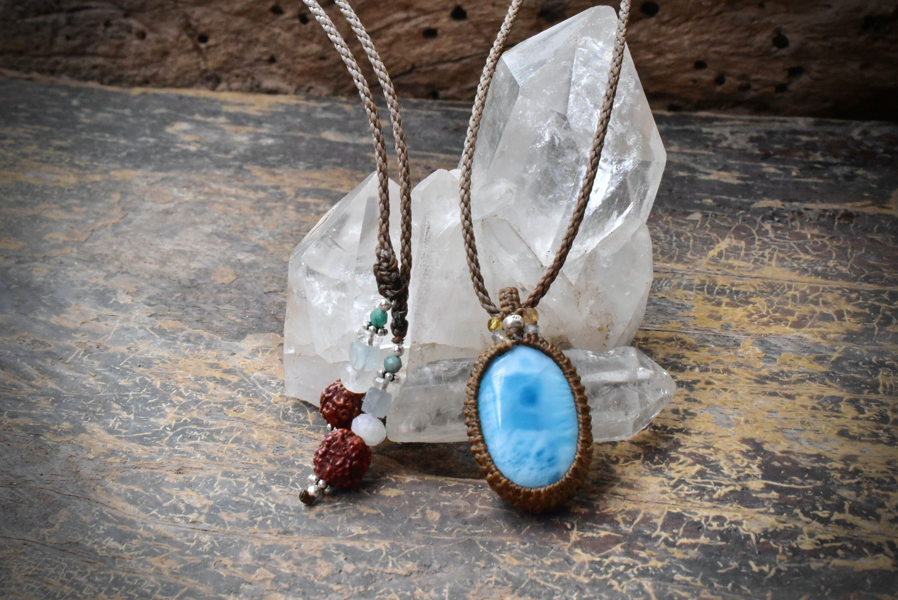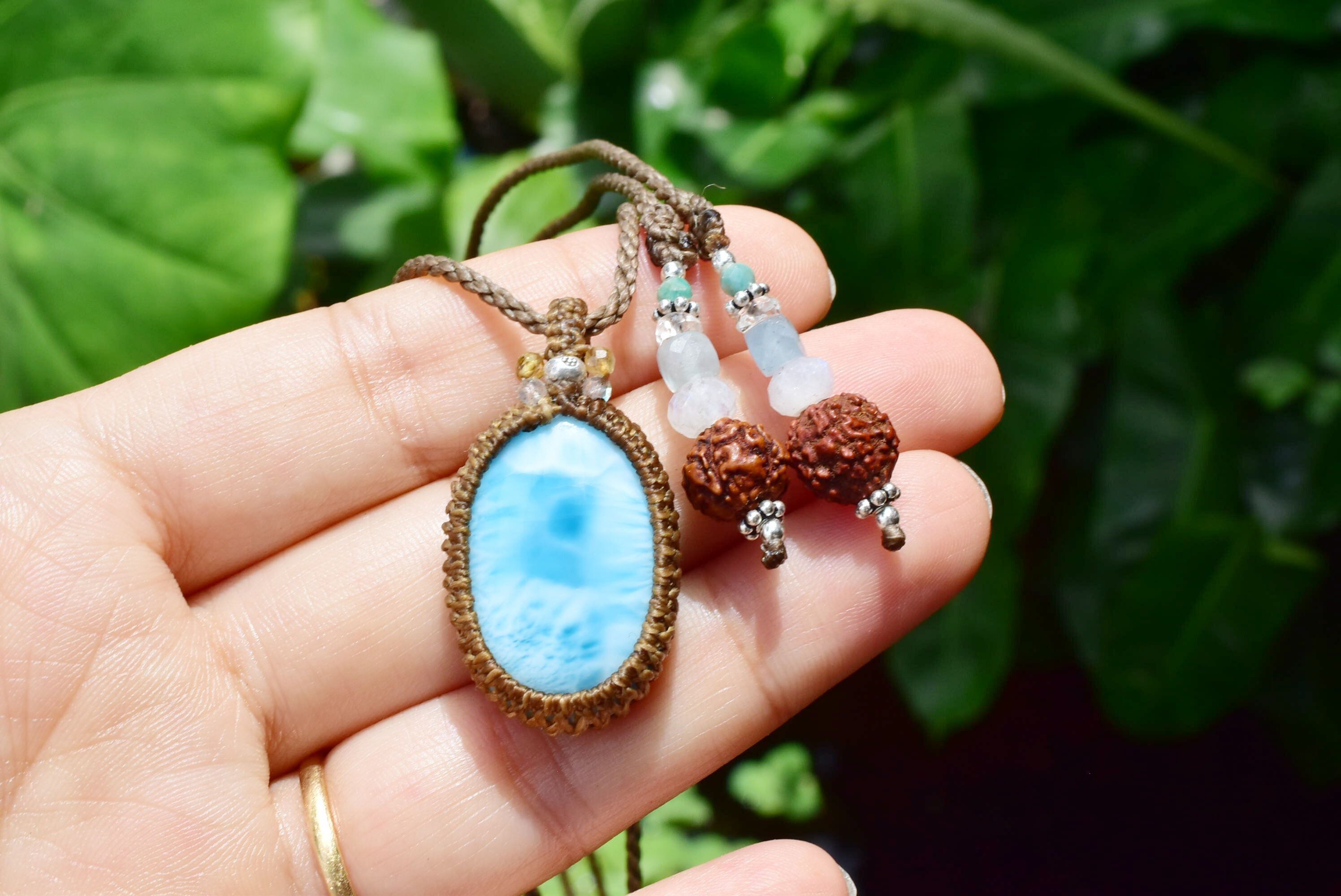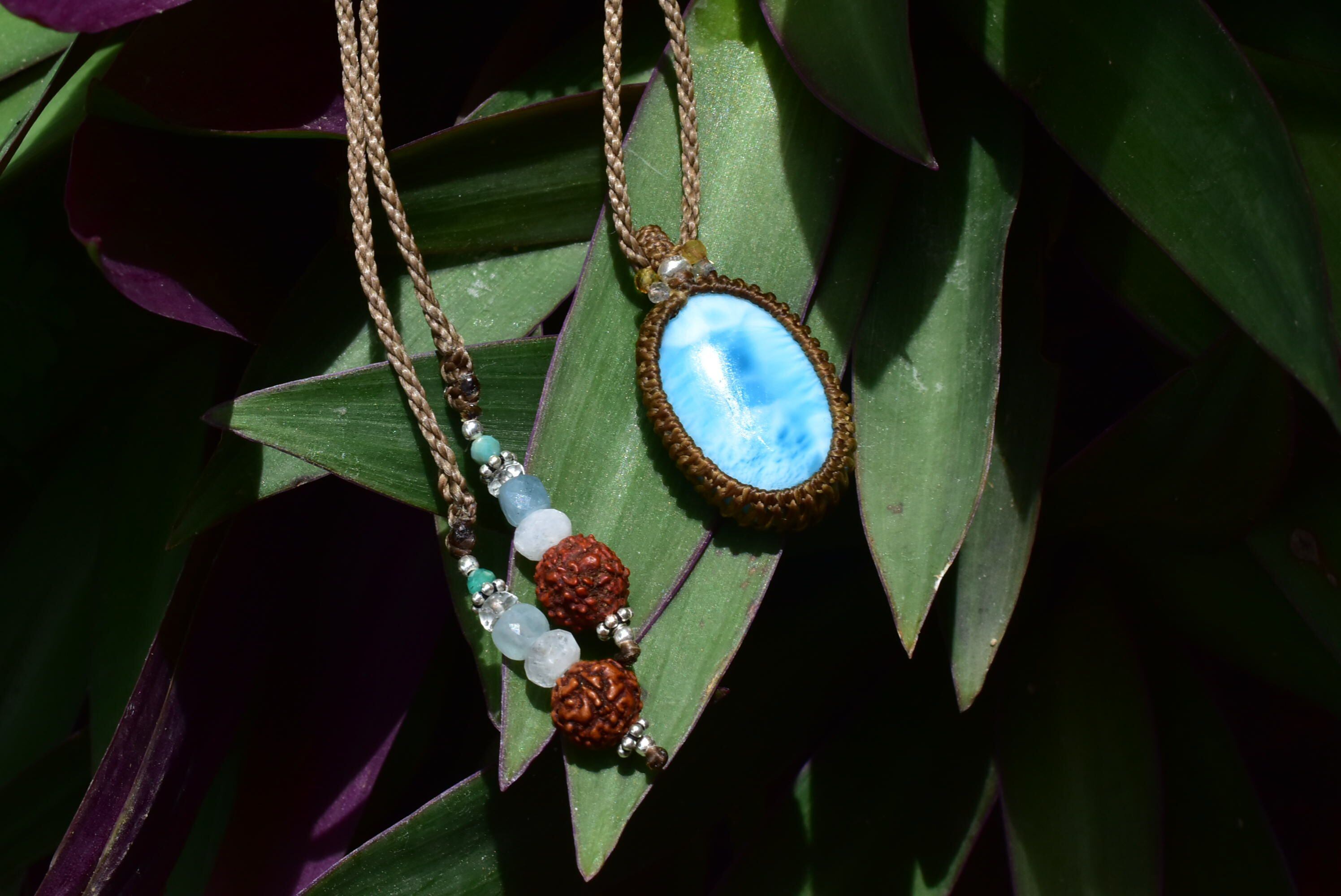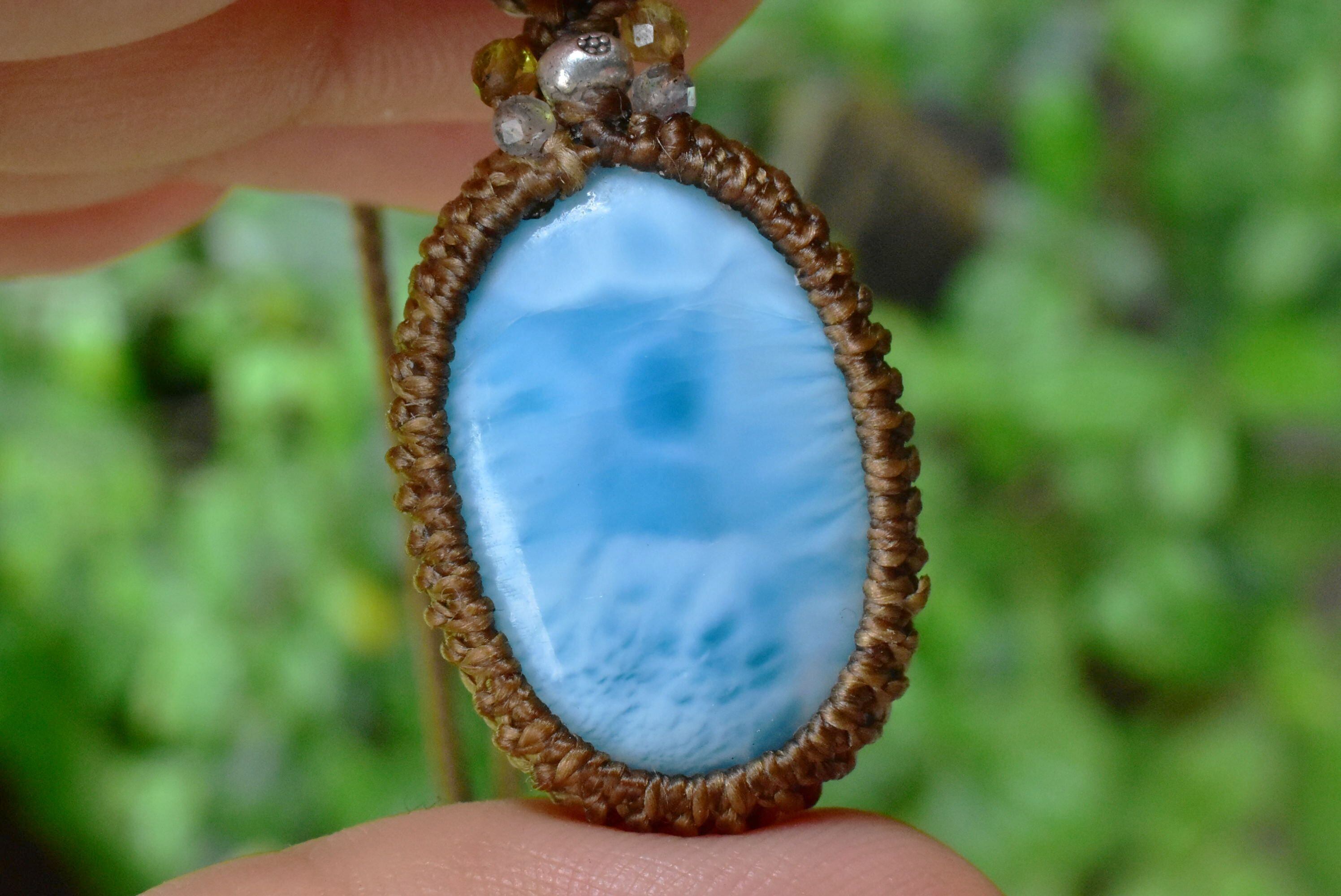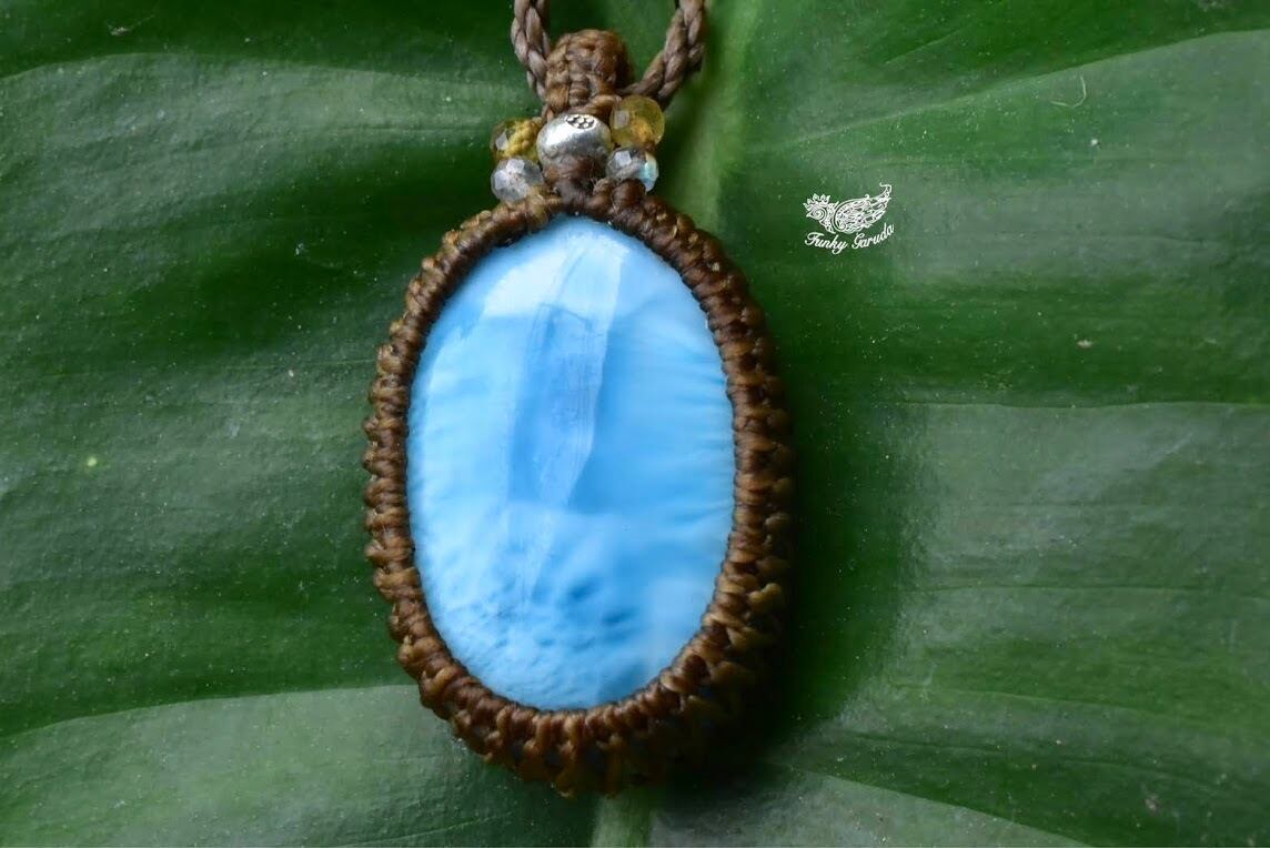 潮目の窓★高品質ラリマー マクラメペンダント lary007