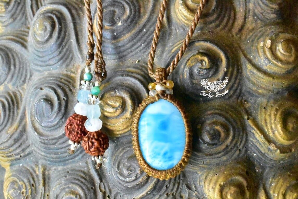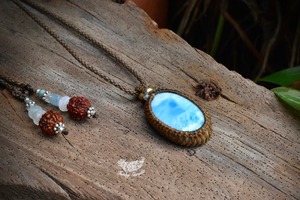 海辺の砂色のような蝋引き糸がラリマーの存在をより一層引き立て、自然のイメージに近い