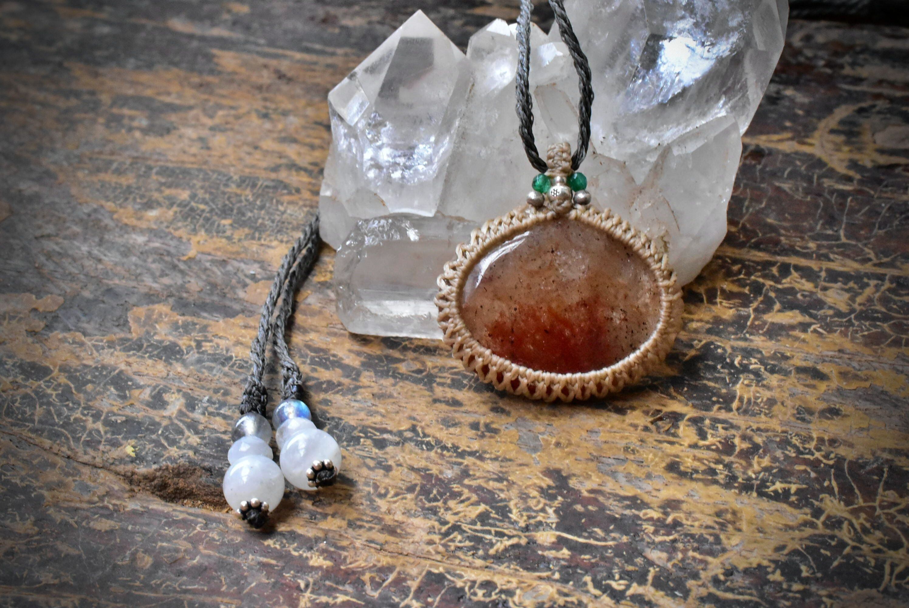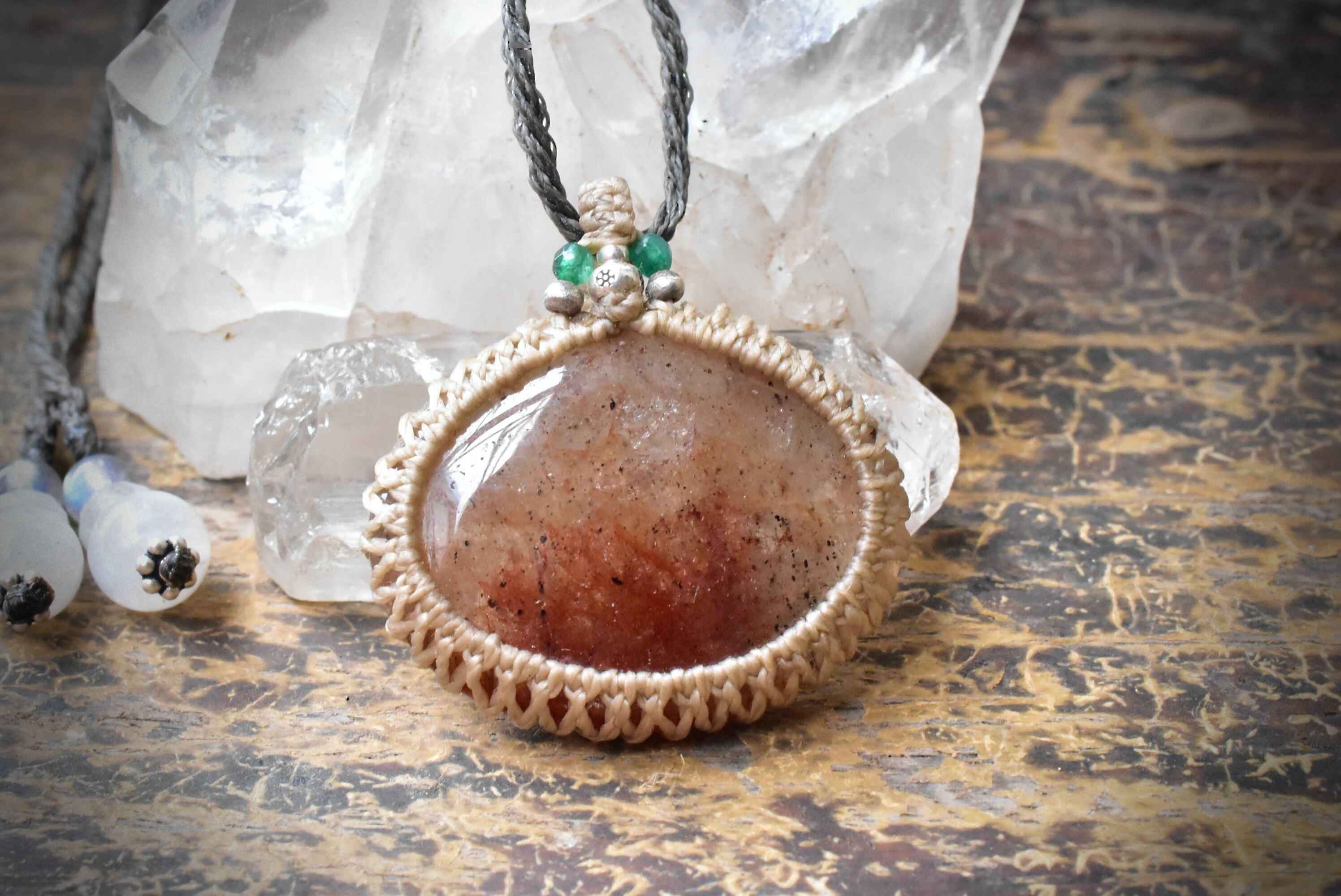 立ち込める炎★チェリークォーツ マクラメペンダント chey001