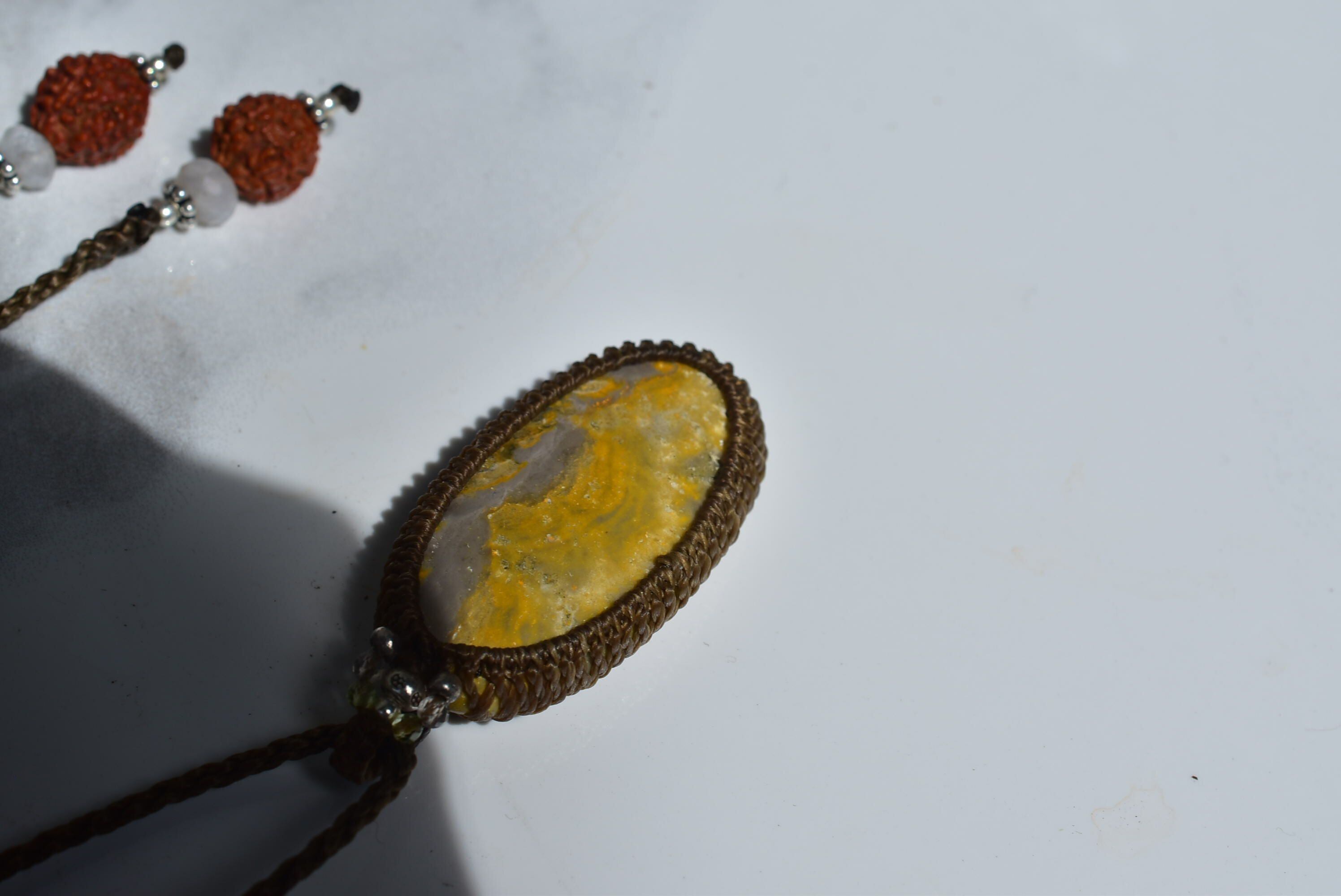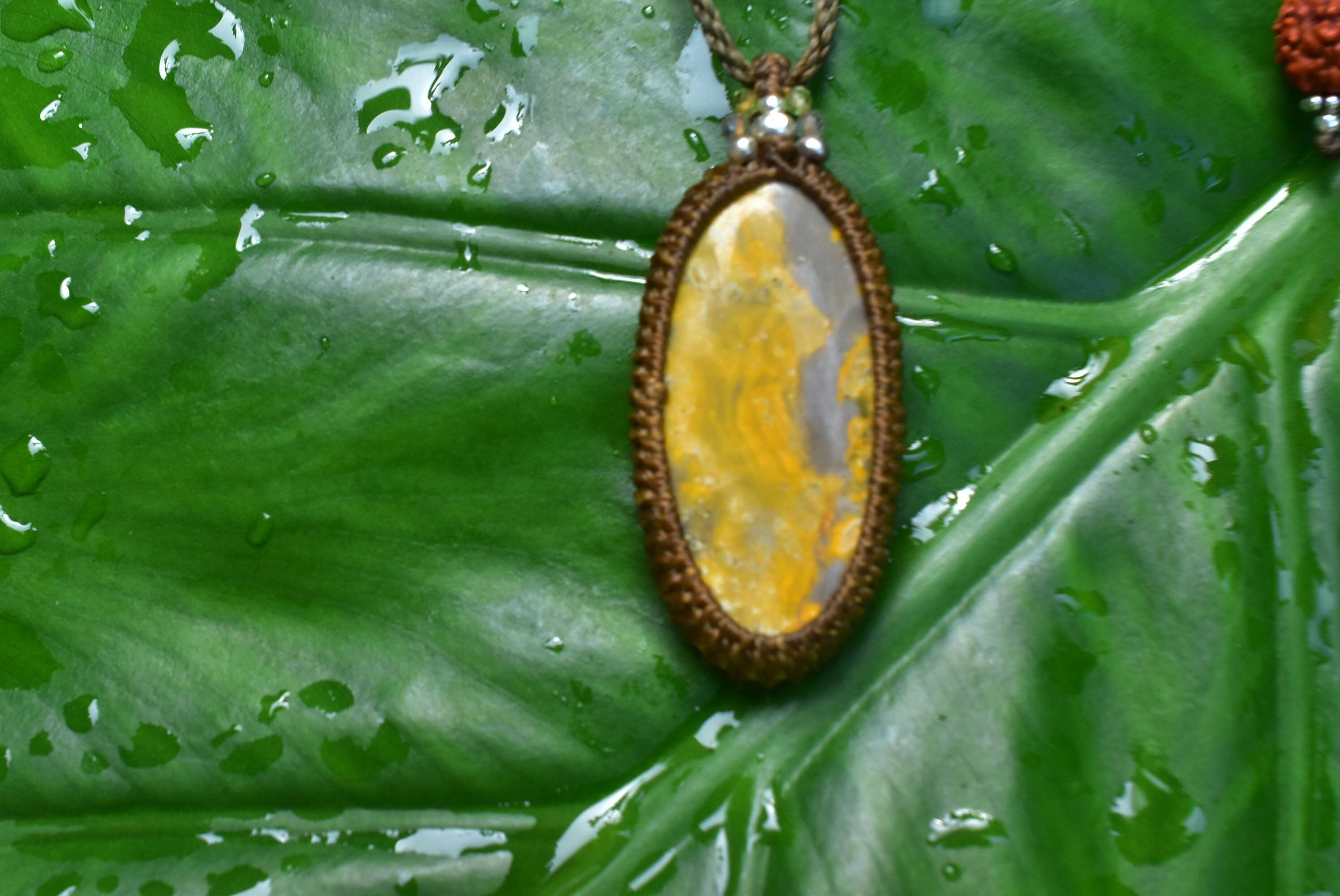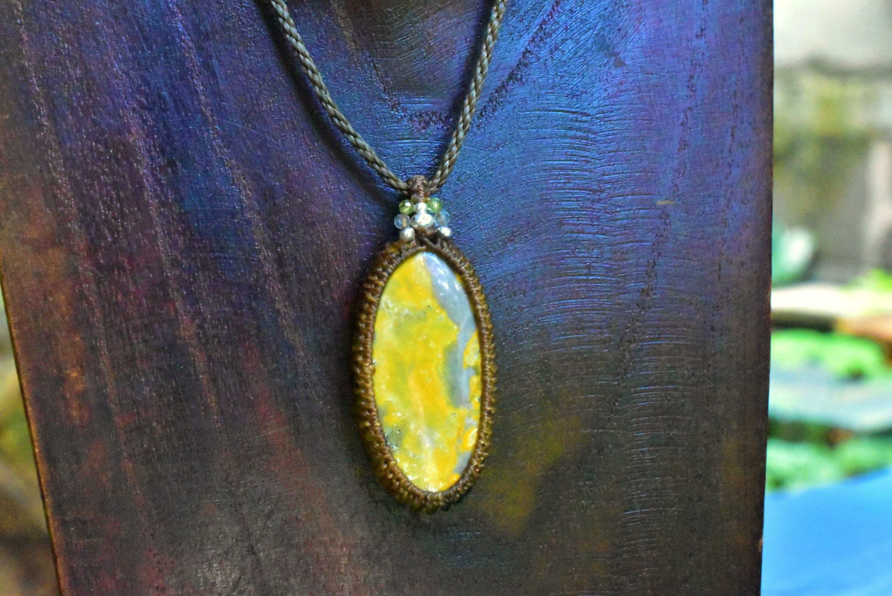 未知なる黄星★エクリプス★バンブルビージャスパー シンプルマクラメペンダントjay001