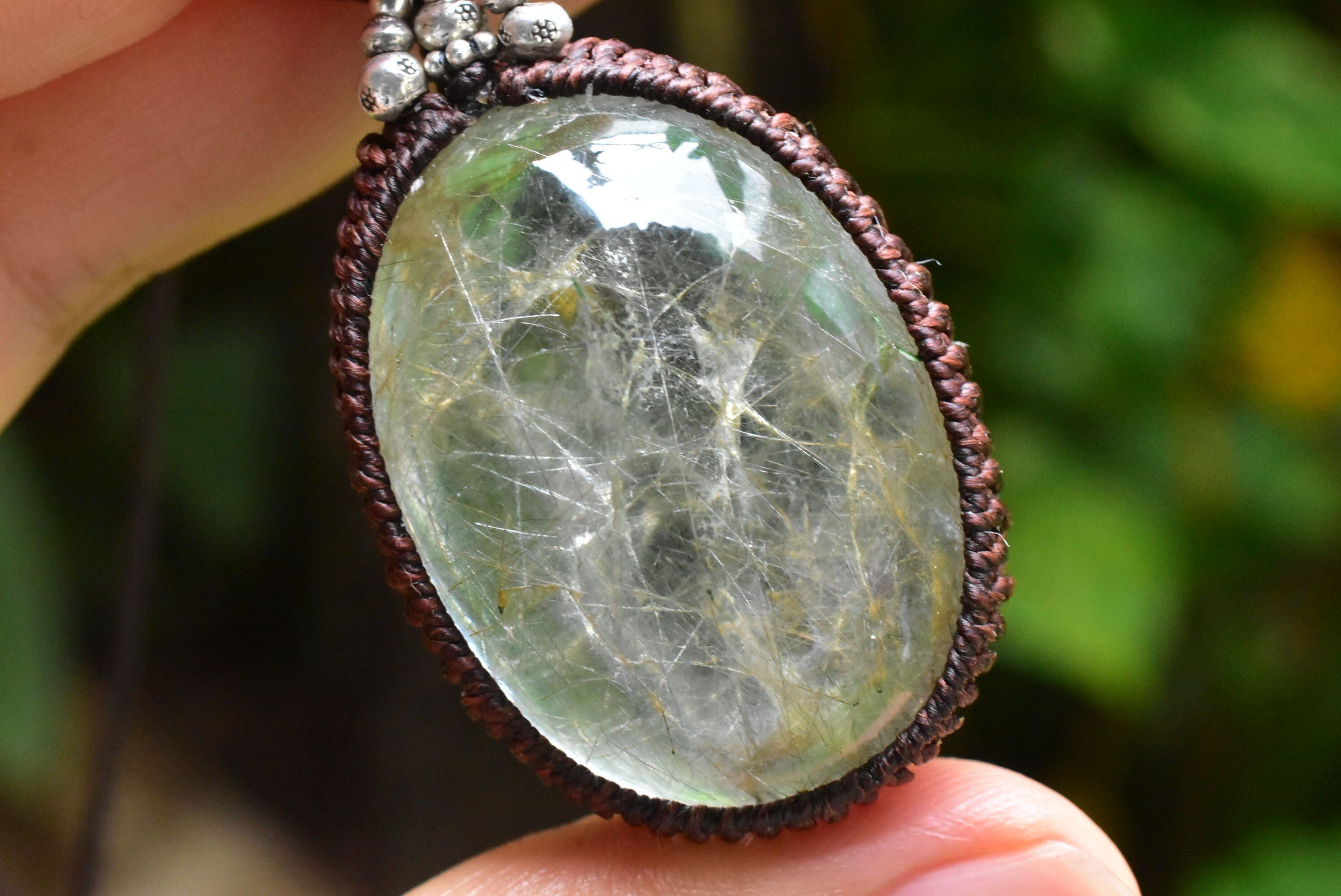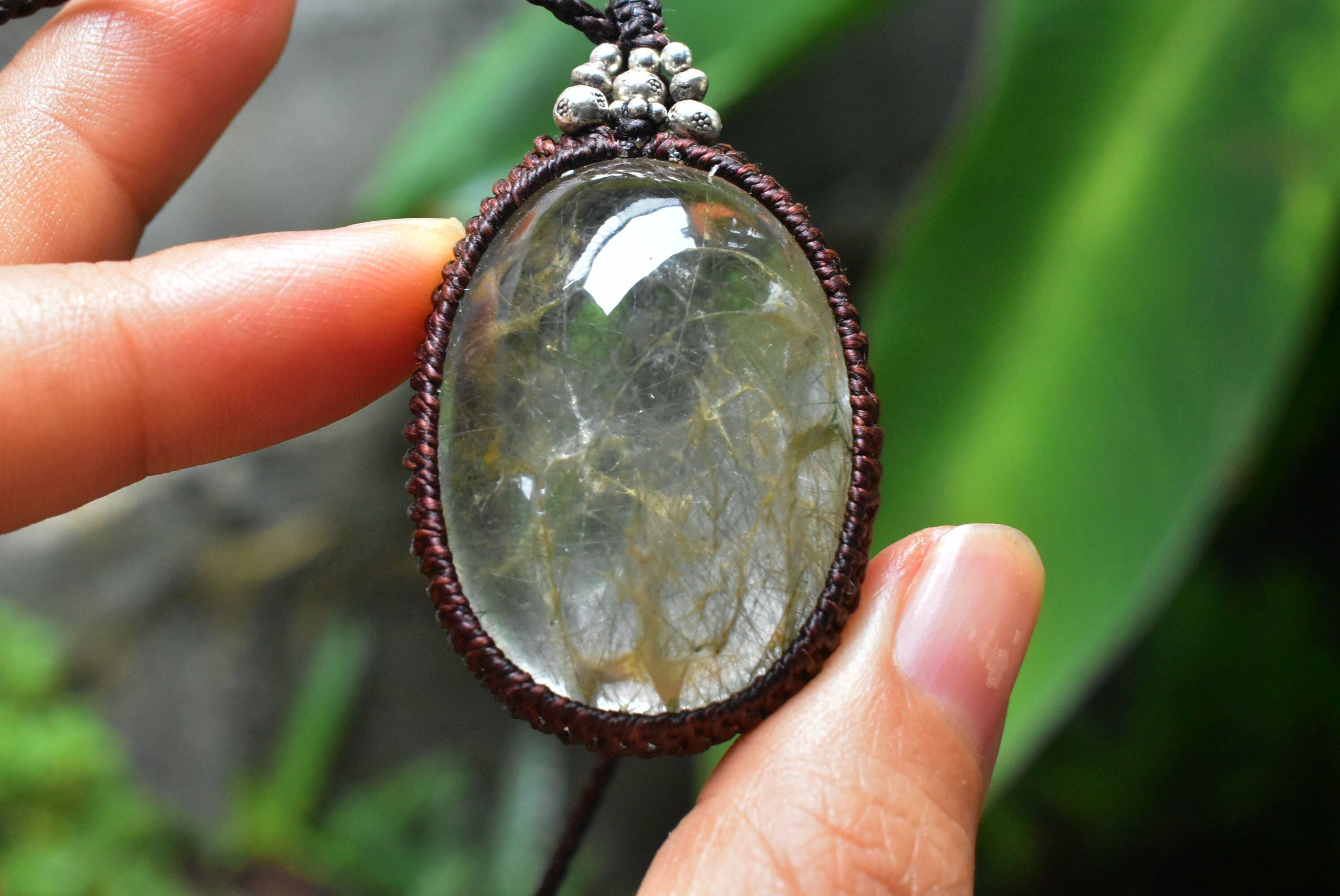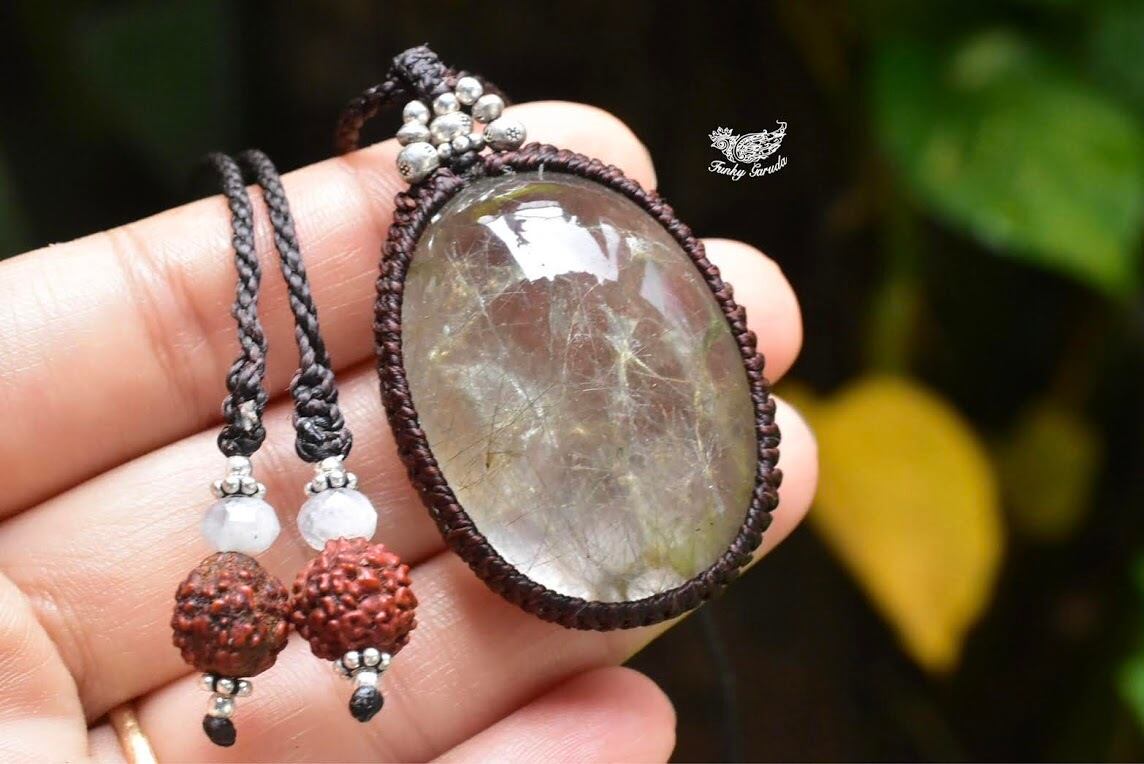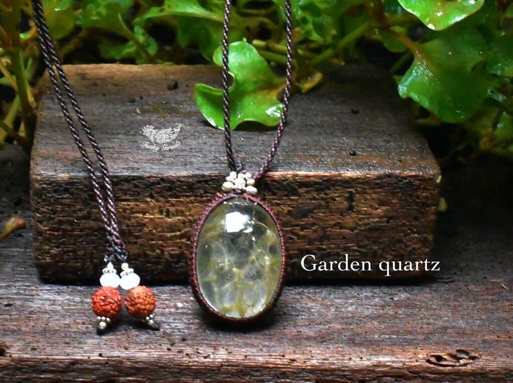 中粒★ふわり優しい綿毛★ガーデンクォーツ マクラメペンダント gy031