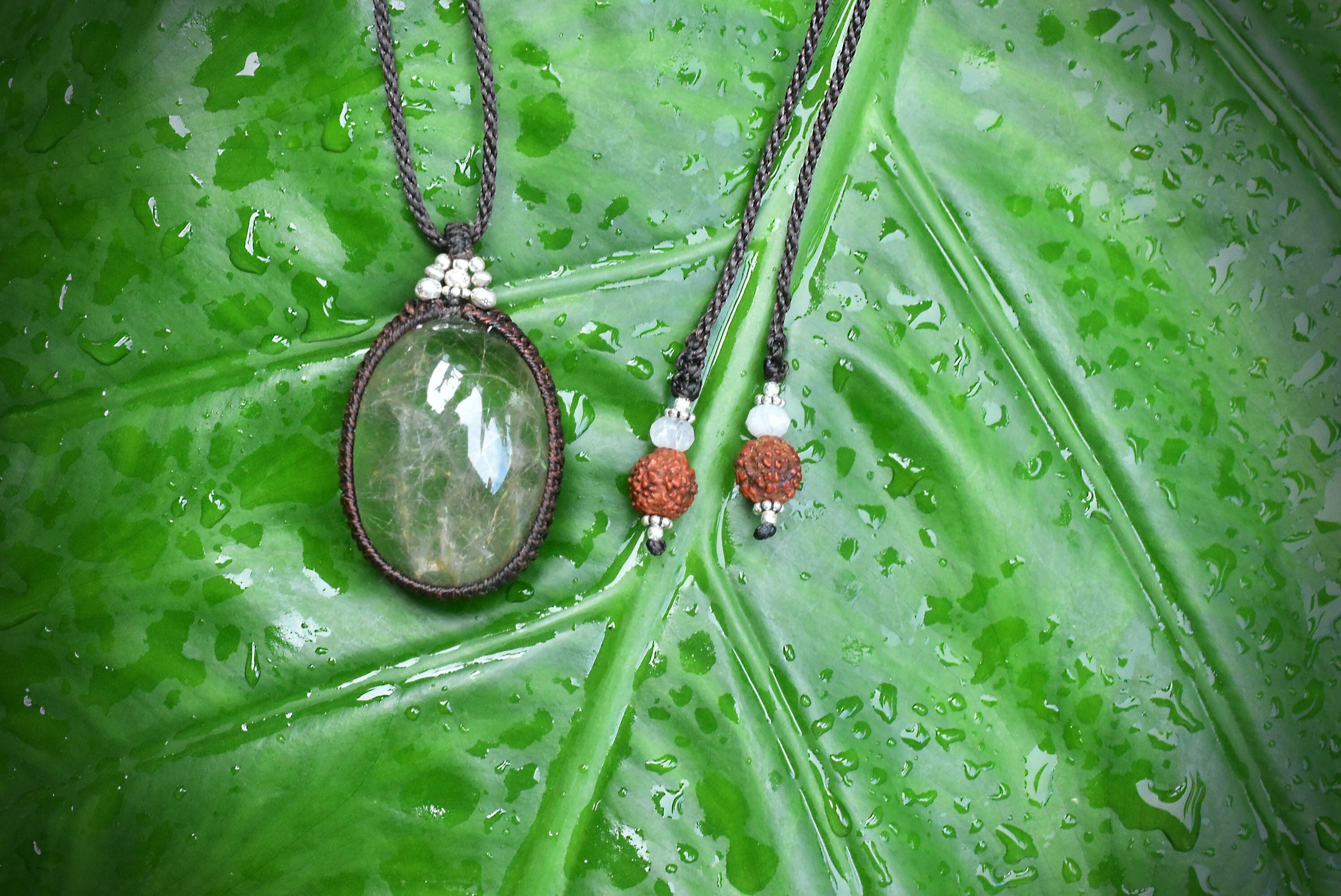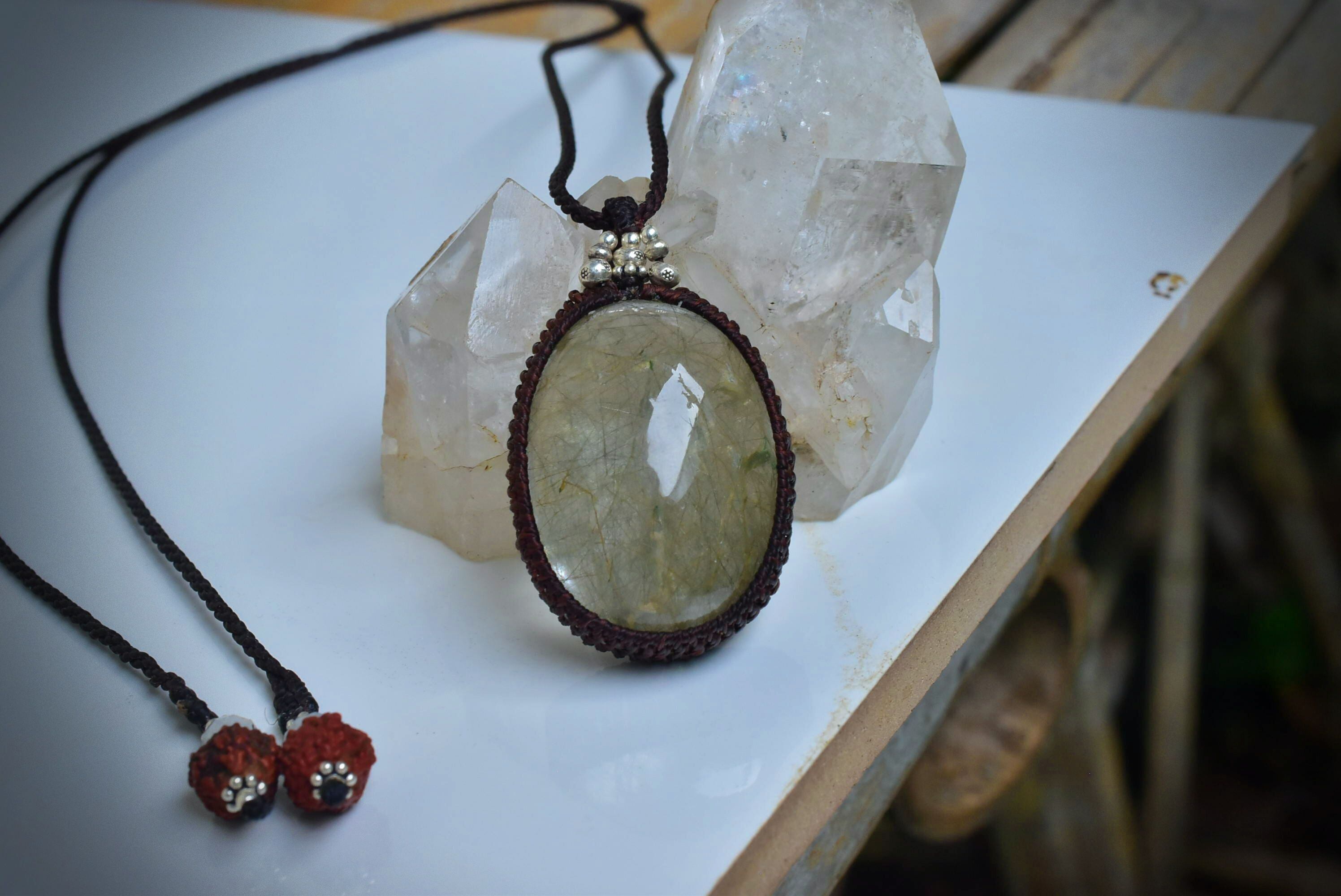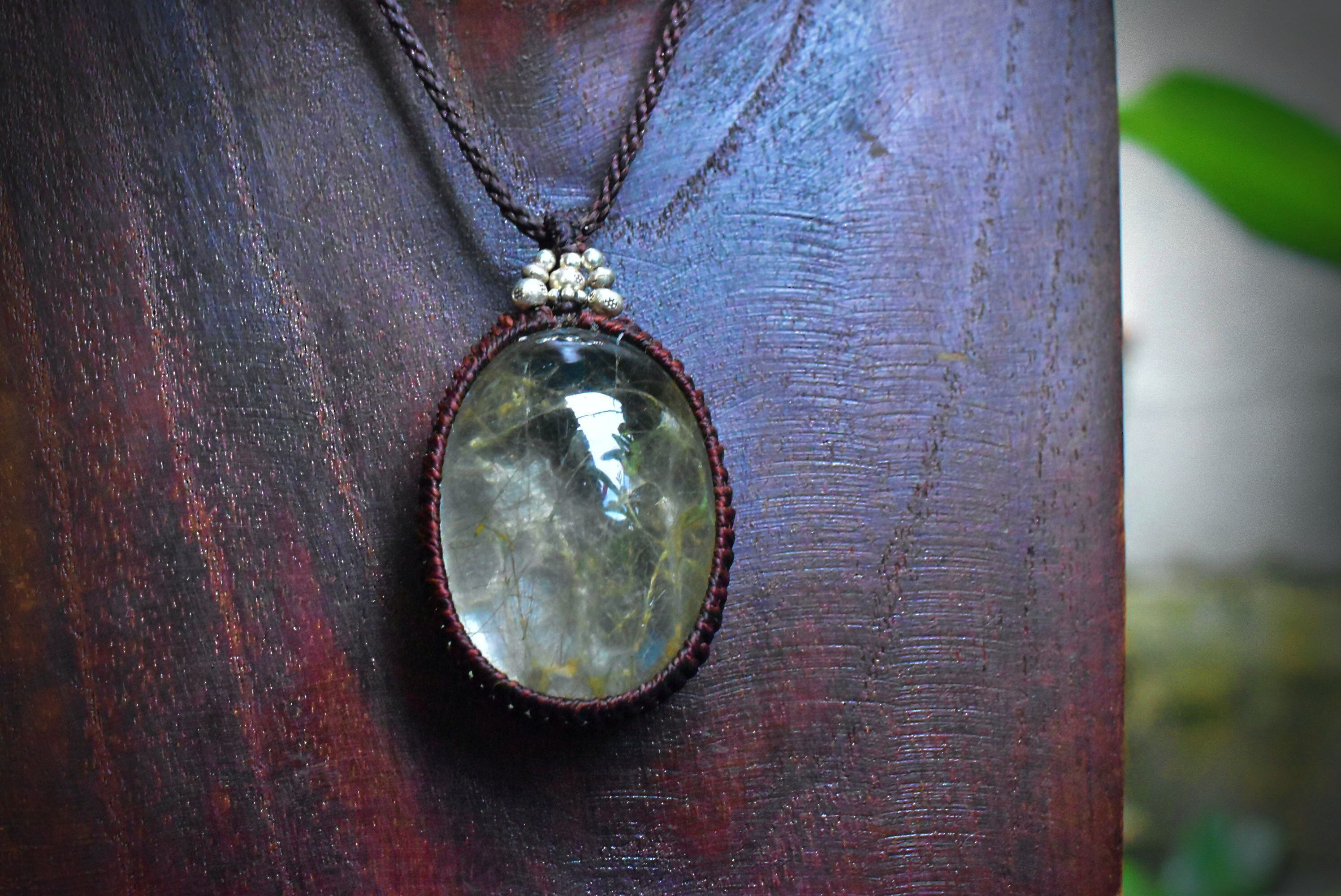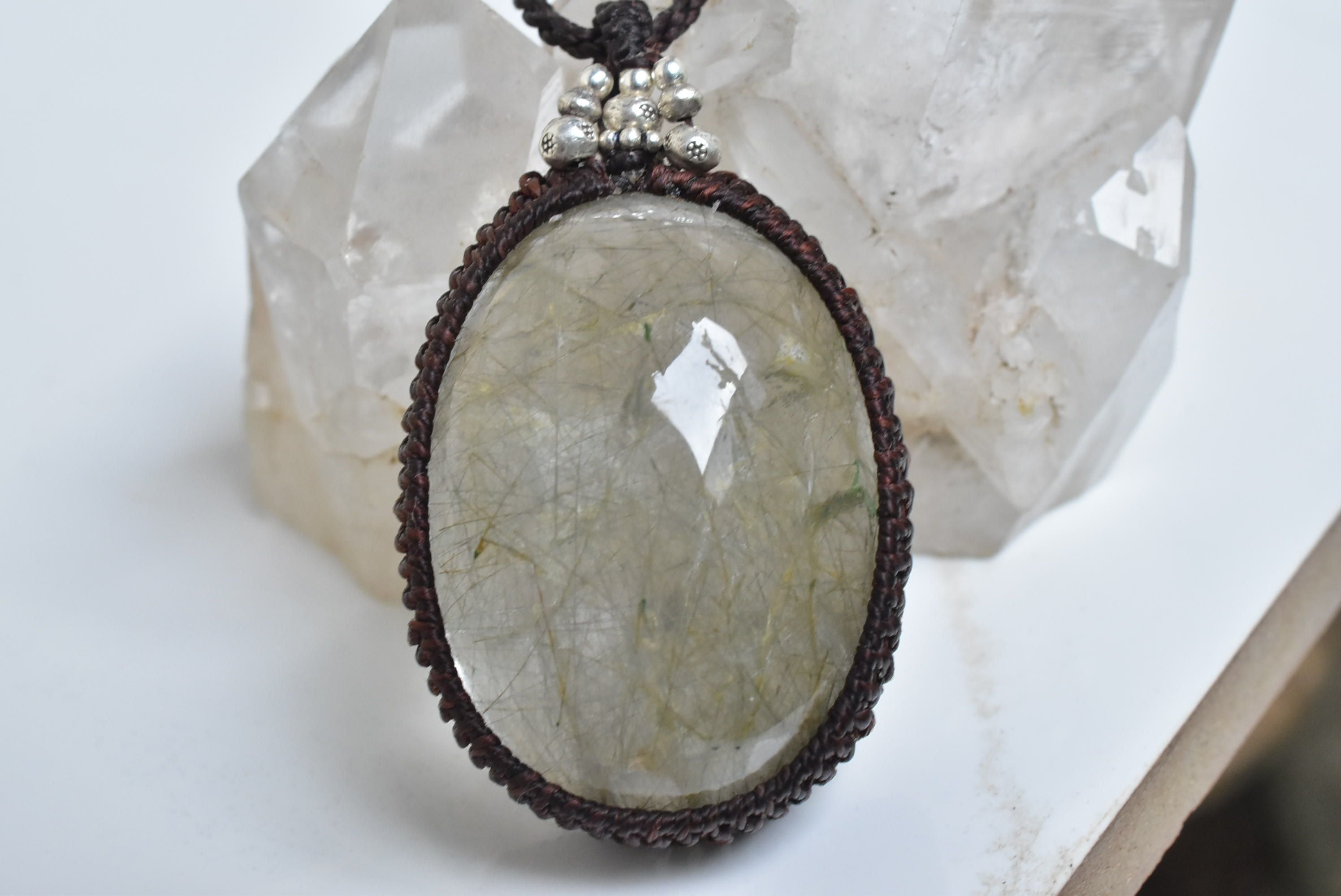中粒★ふわり優しい綿毛★ガーデンクォーツ マクラメペンダント gy031