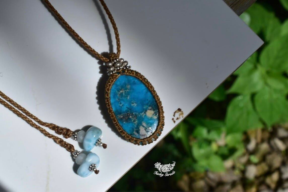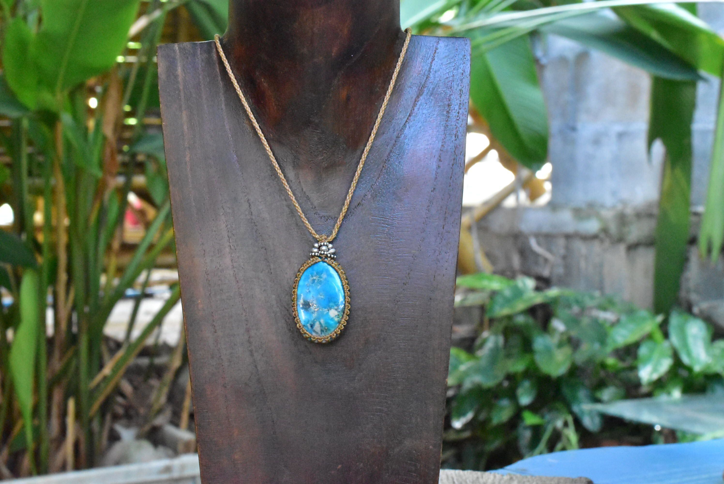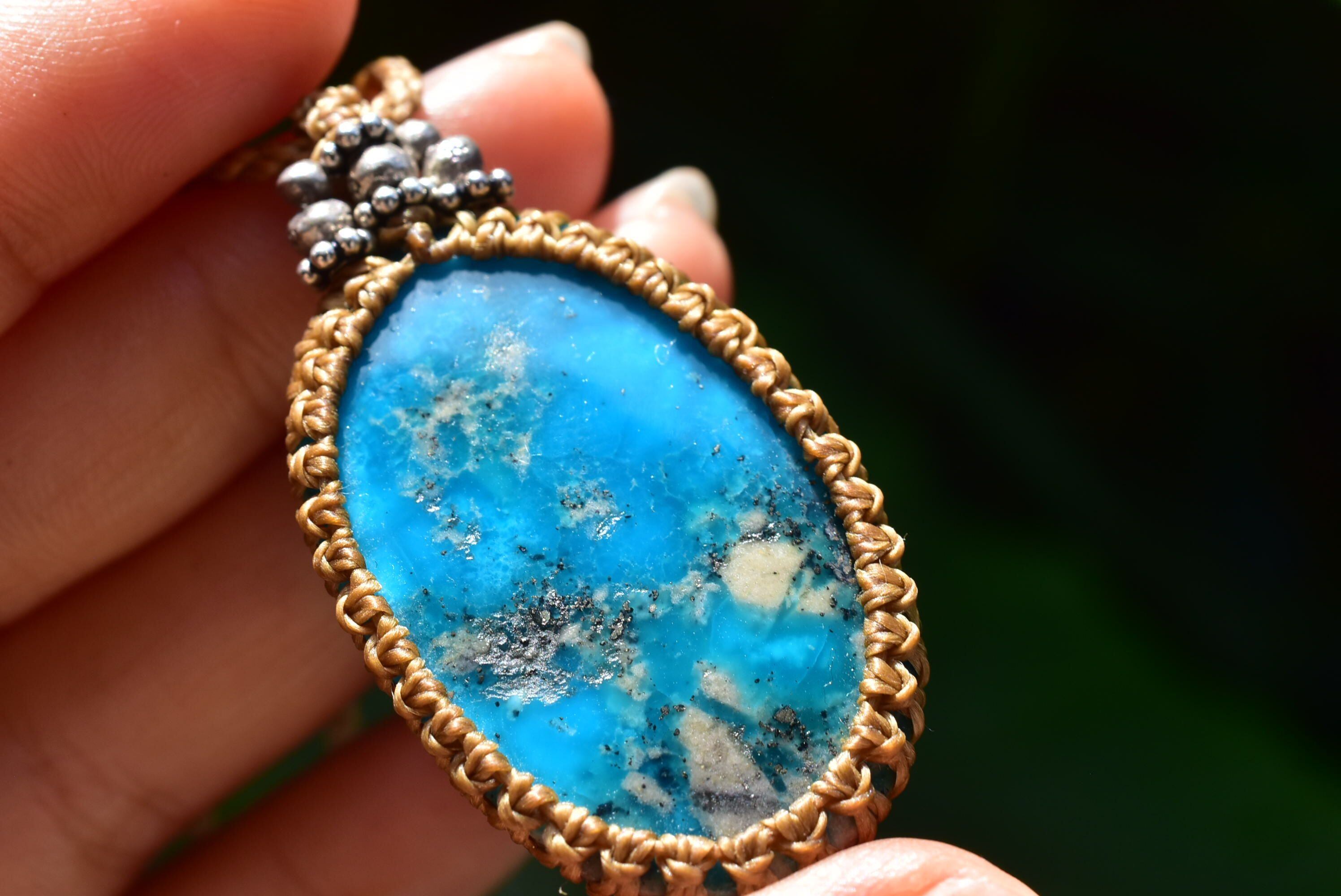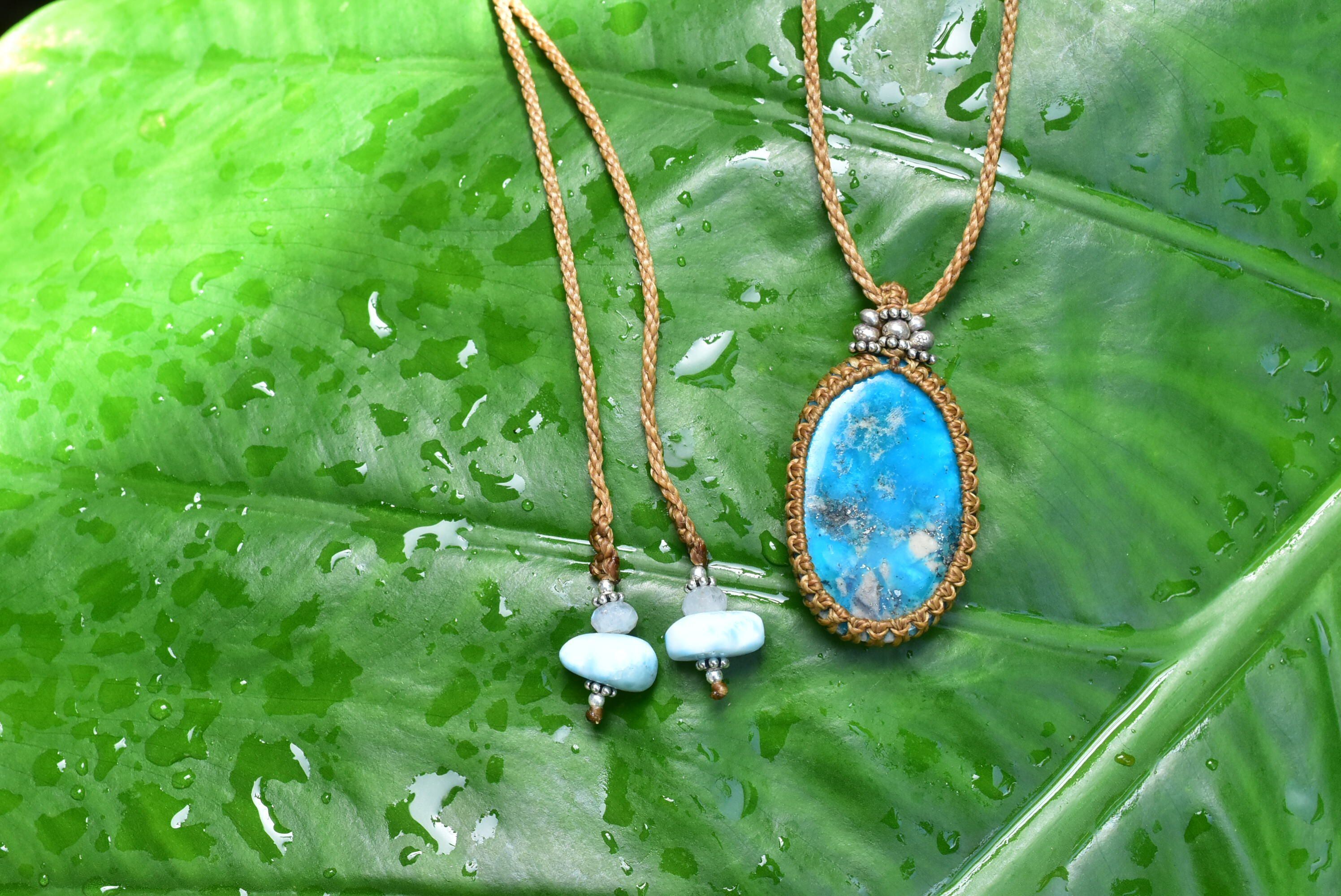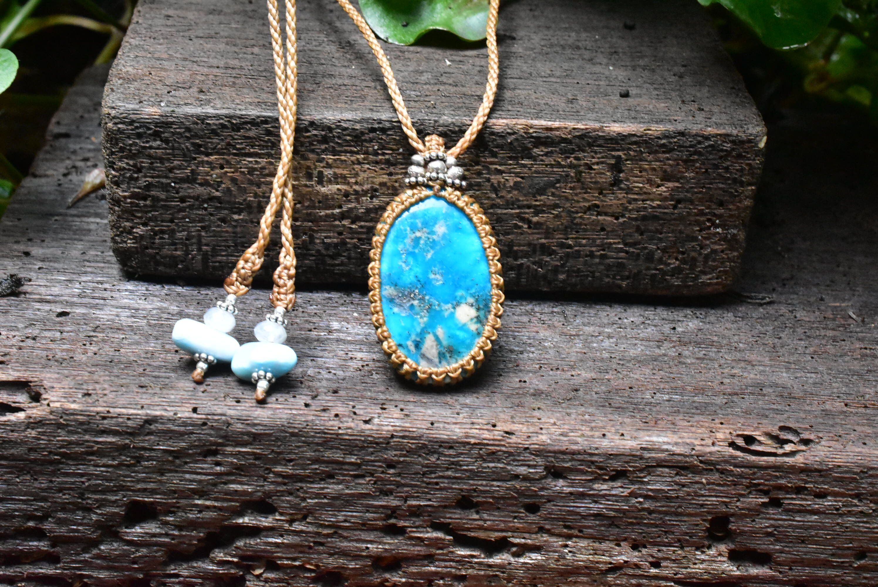 冴え渡る青★ターコイズ マクラメペンダント tury001