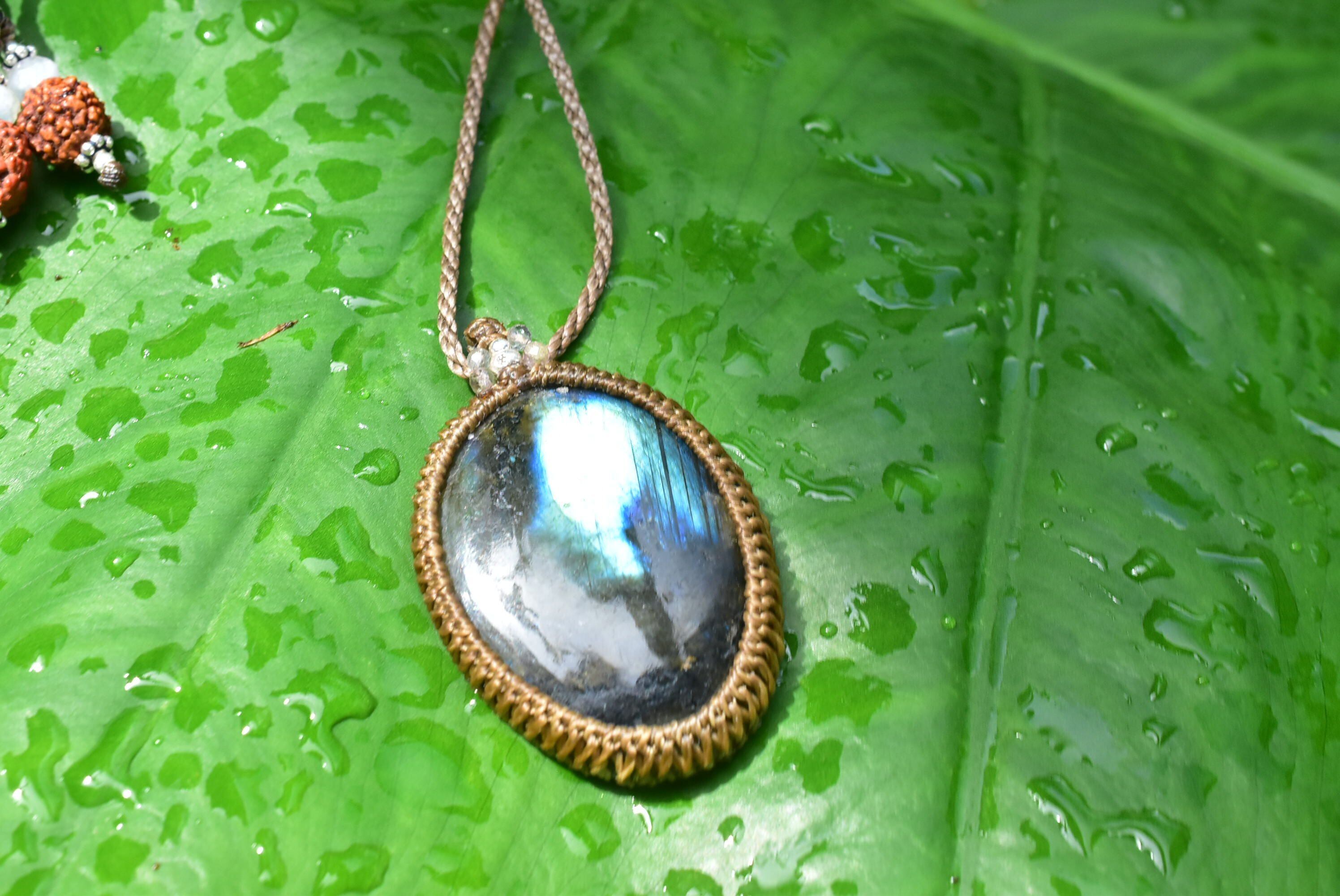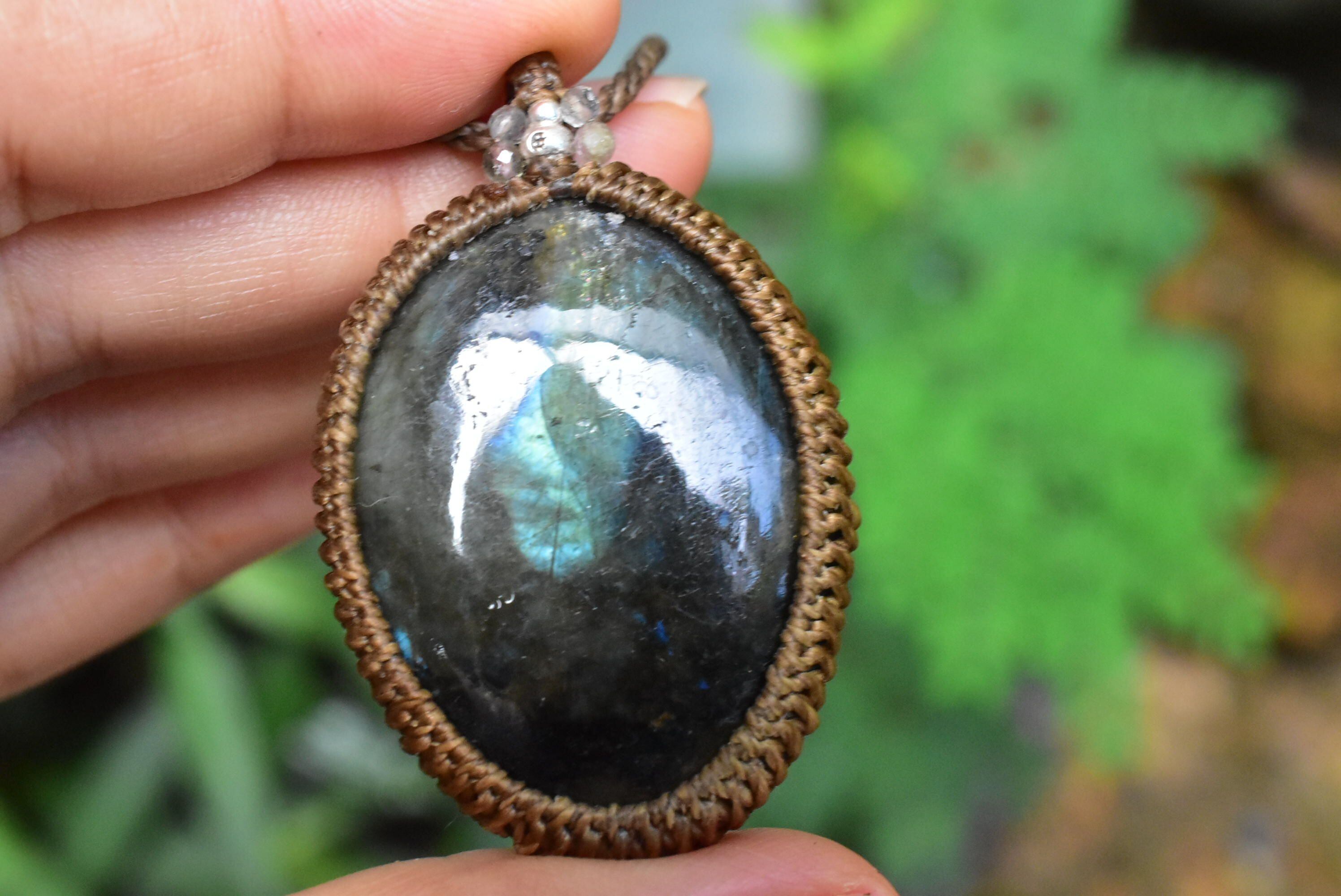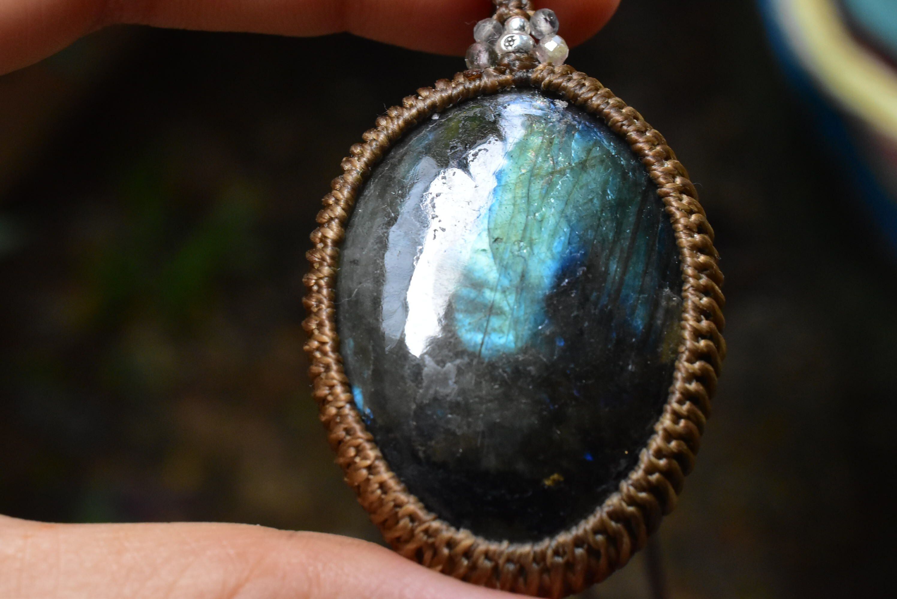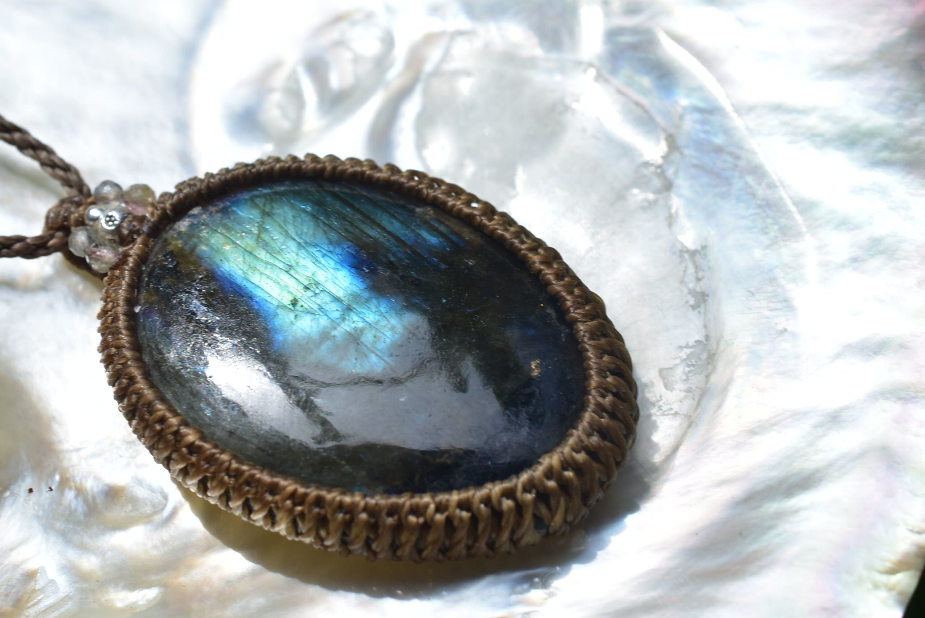 高貴な輝き★ラブラドライトマクラメペンダント laby009