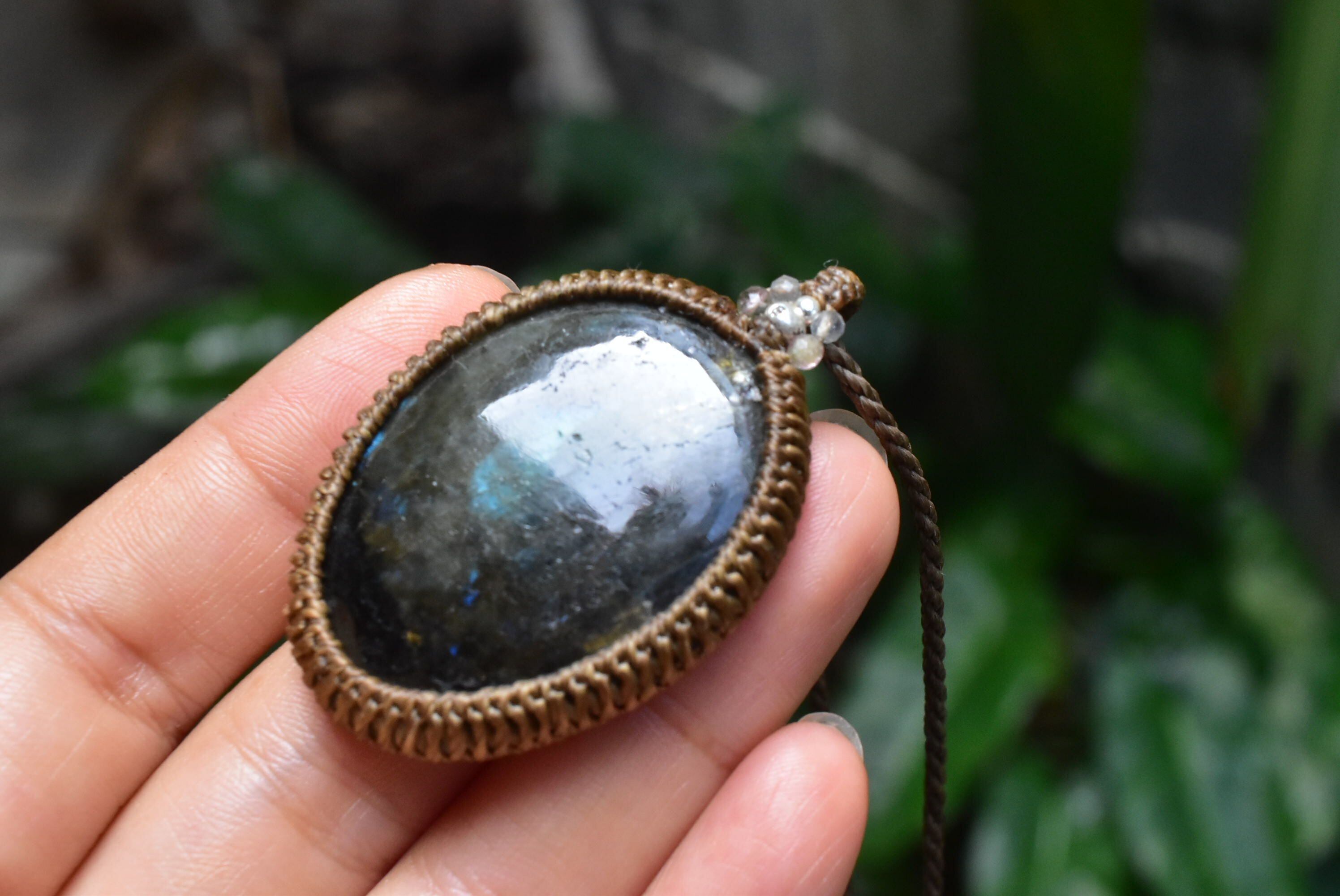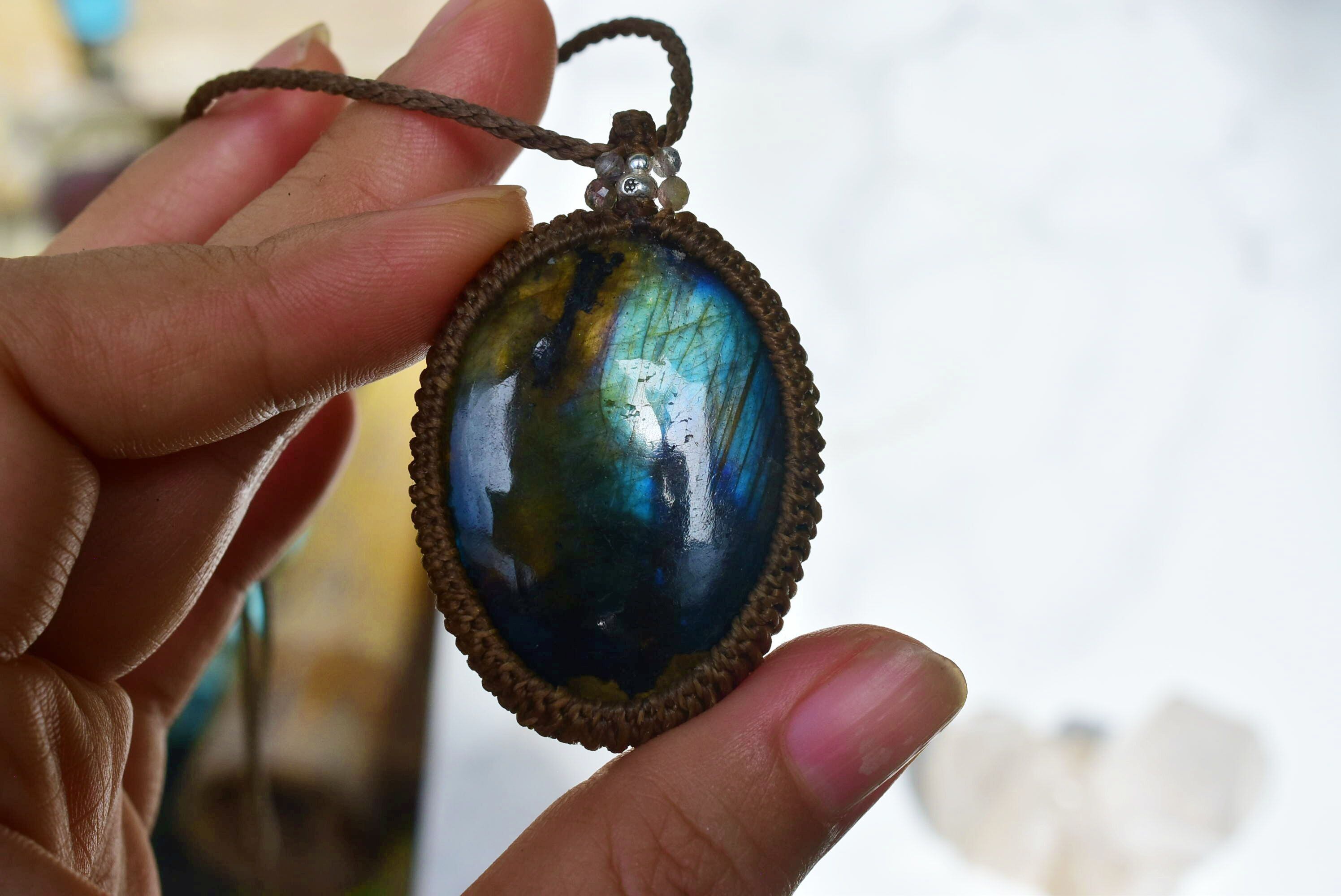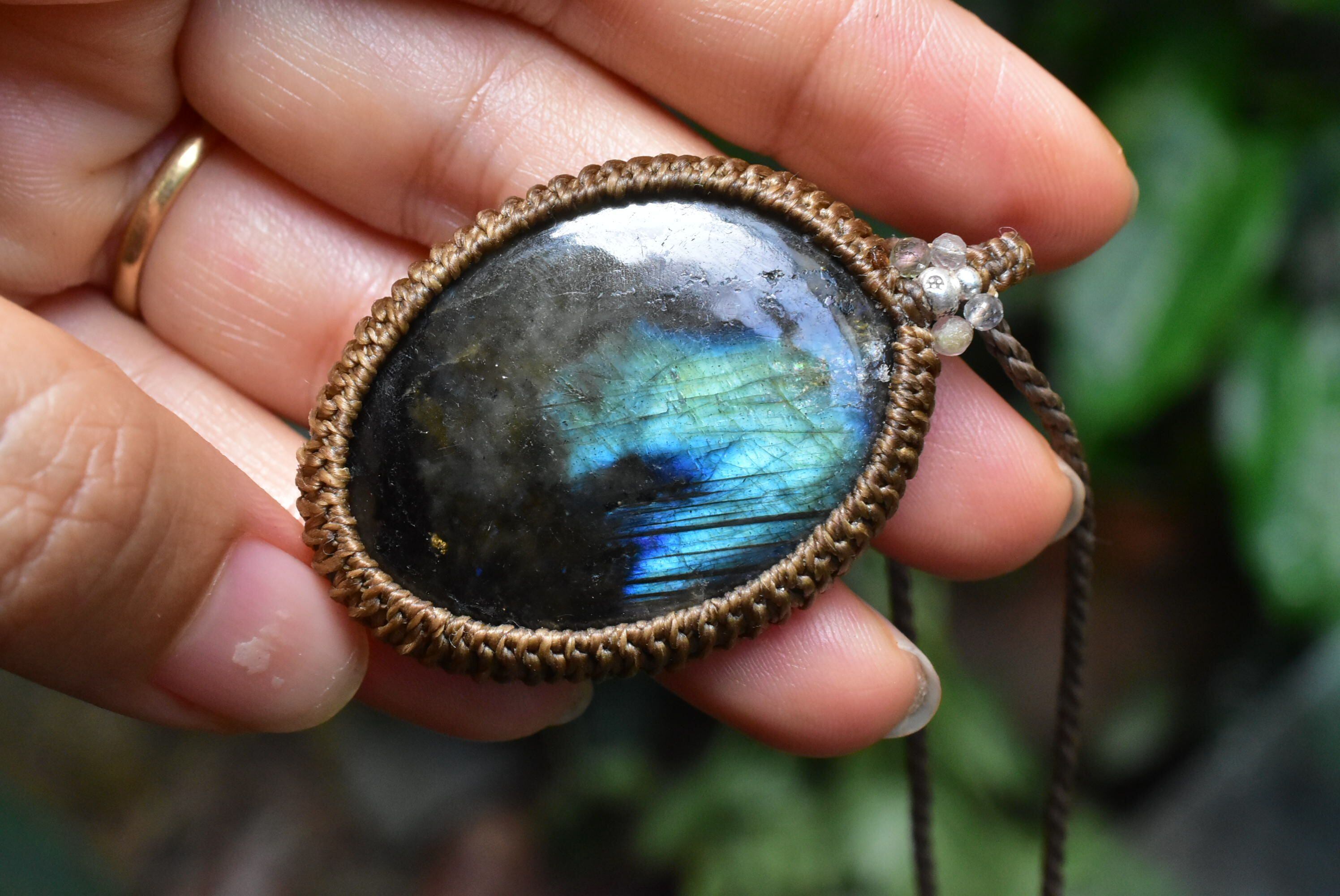 高貴な輝き★ラブラドライトマクラメペンダント laby009