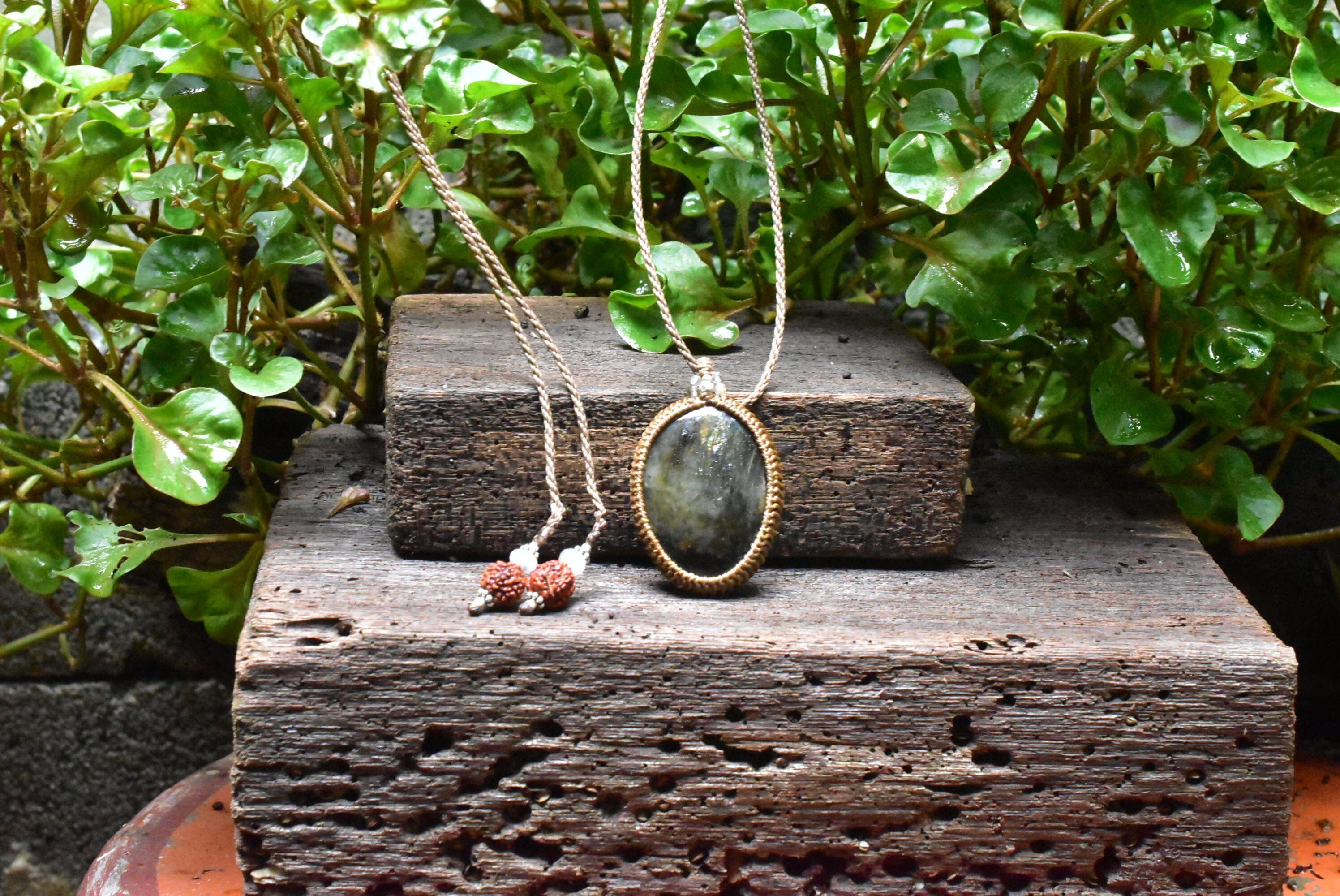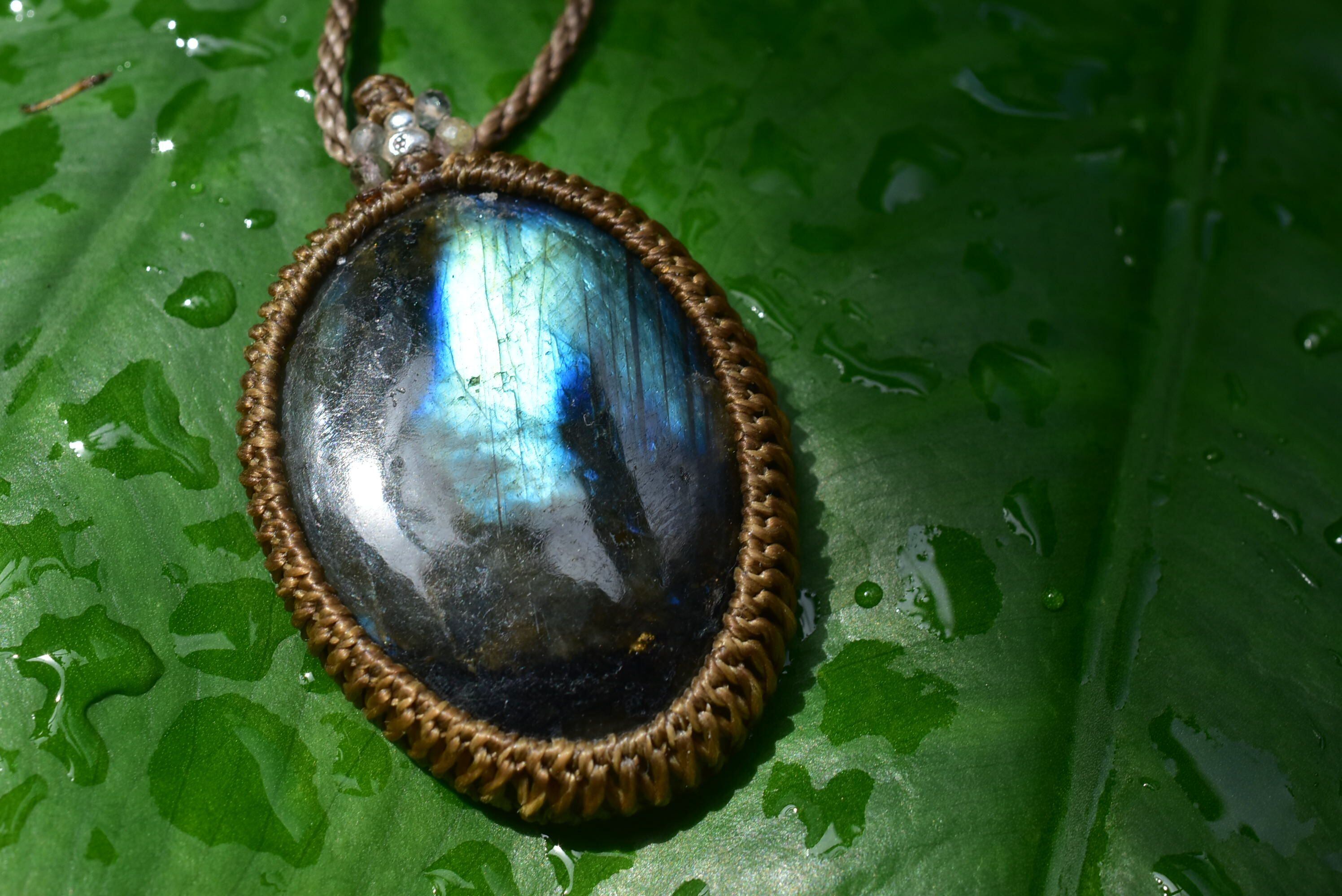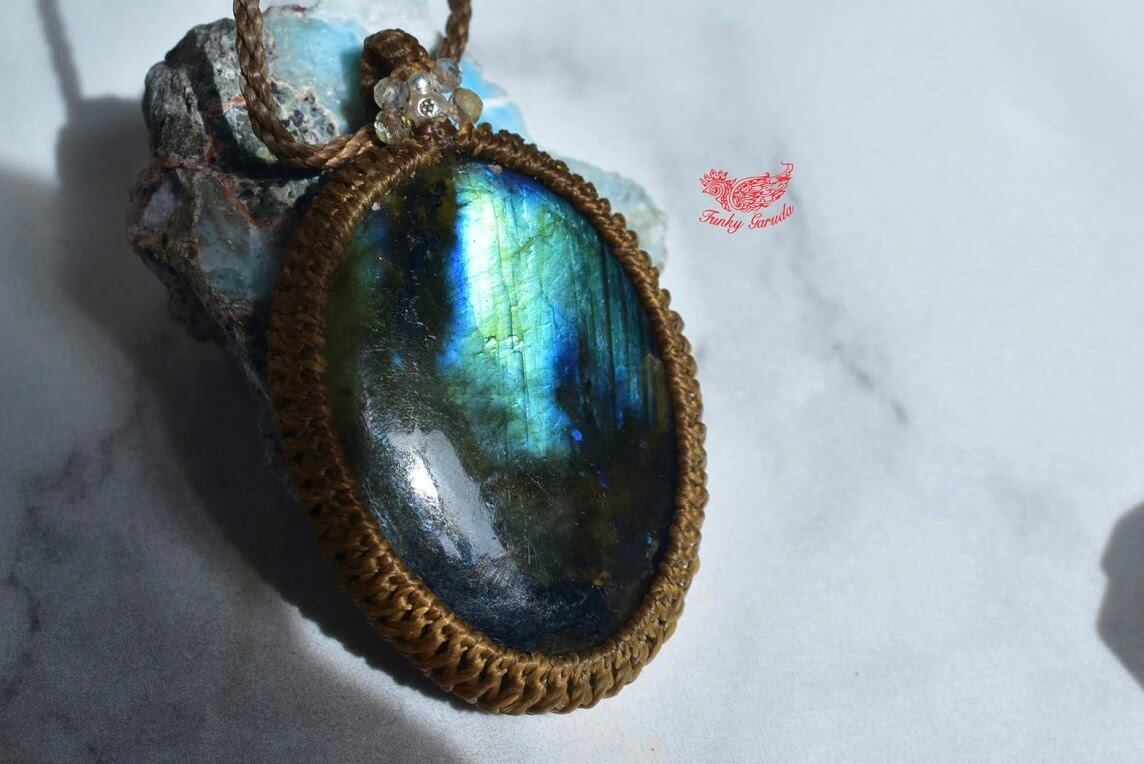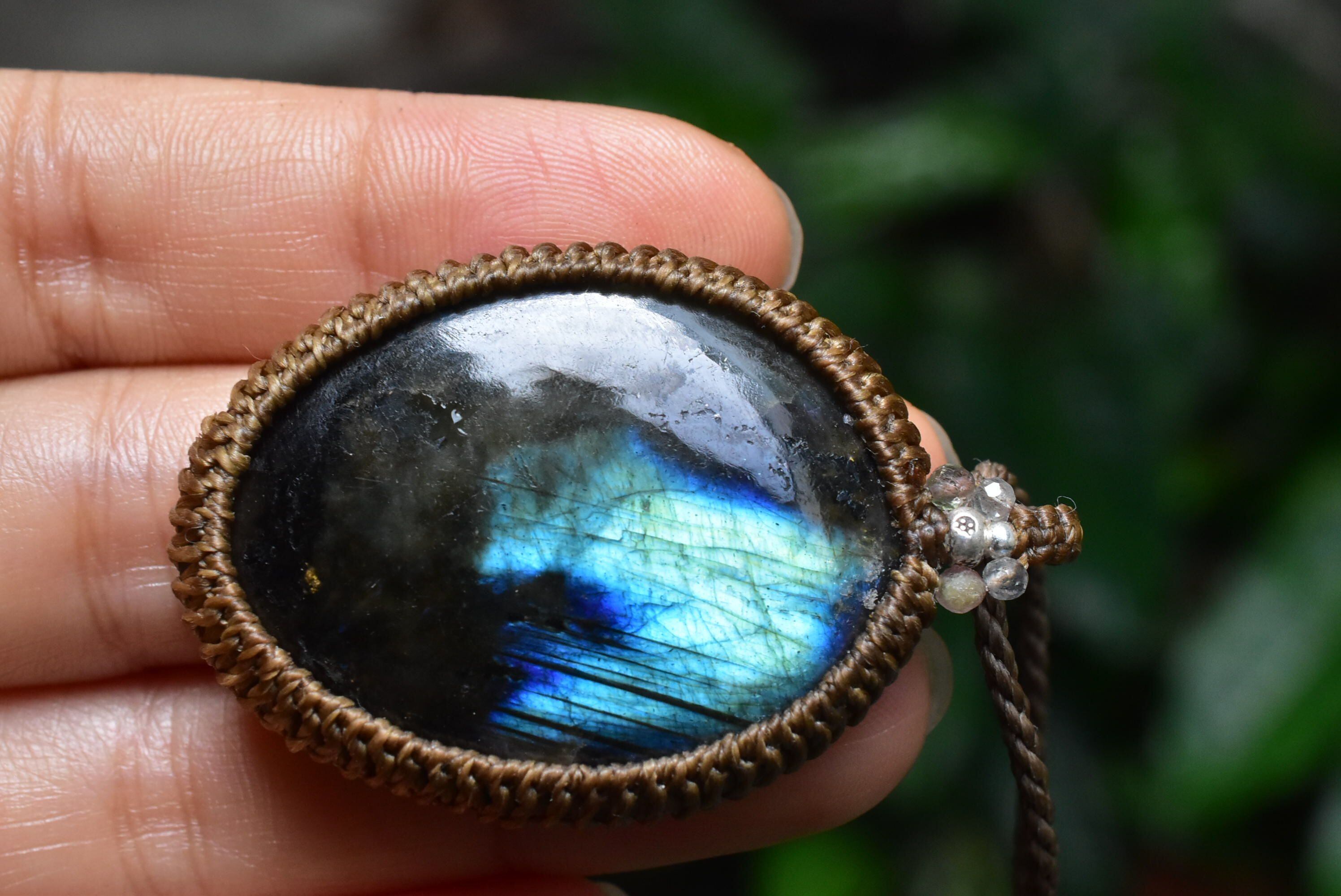 高貴な輝き★ラブラドライトマクラメペンダント laby009