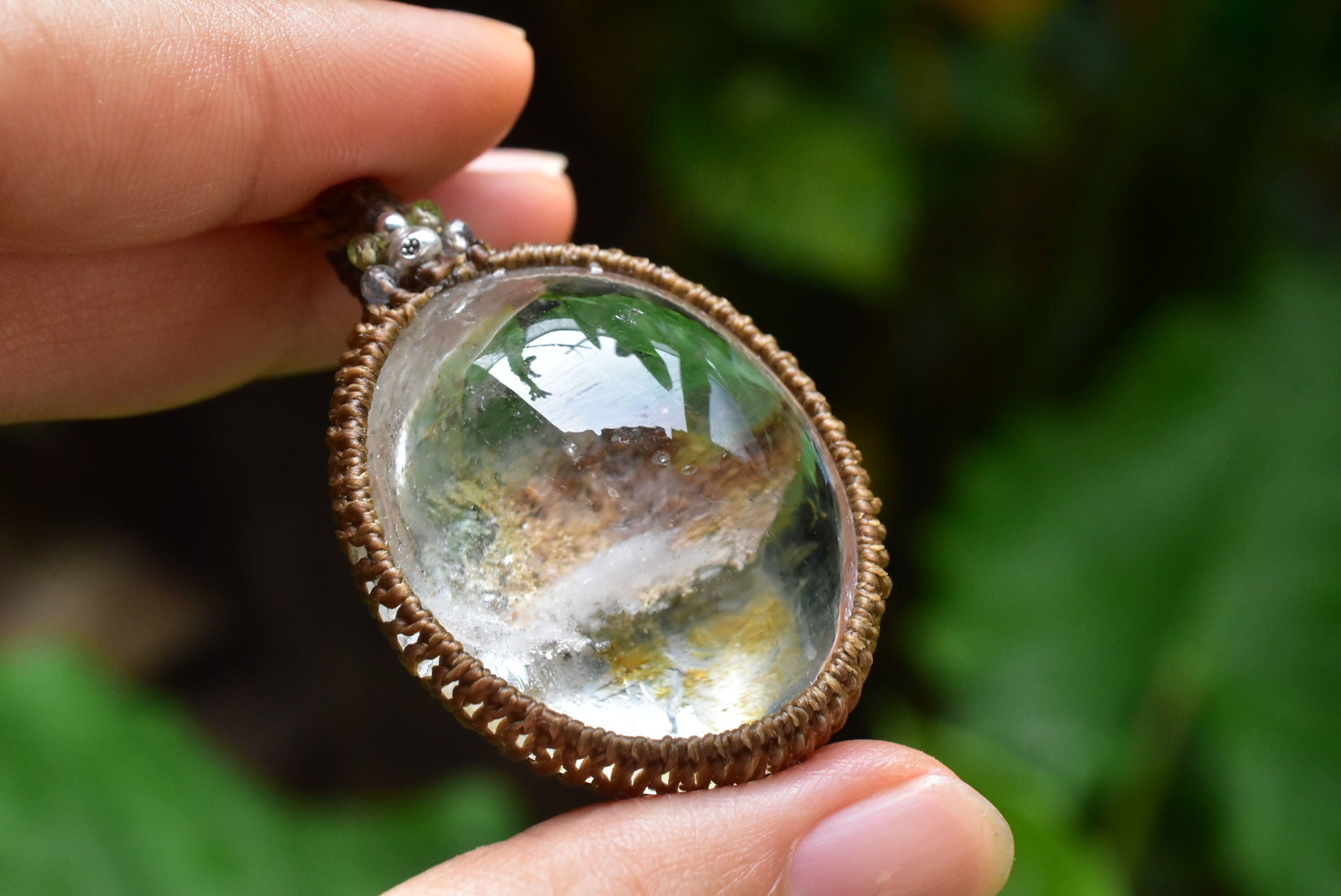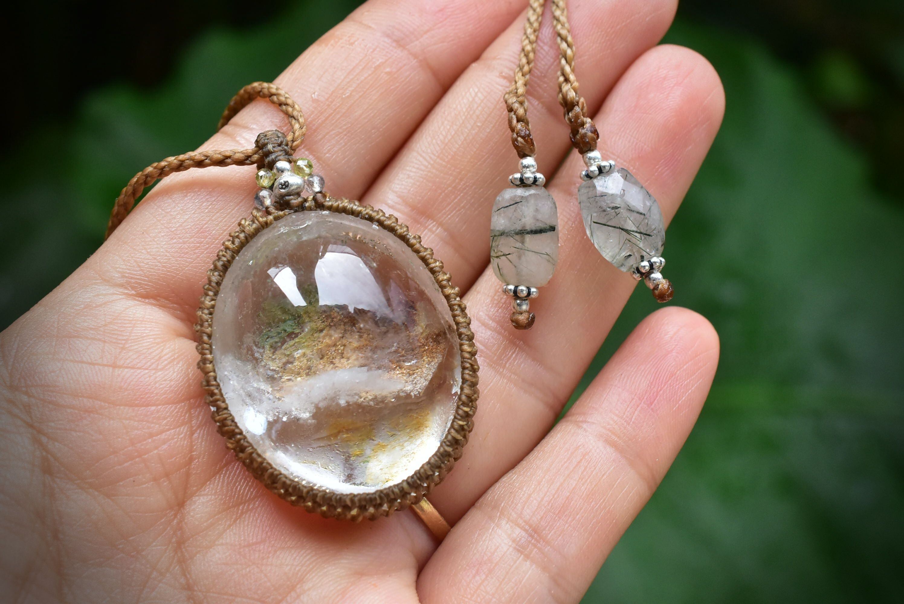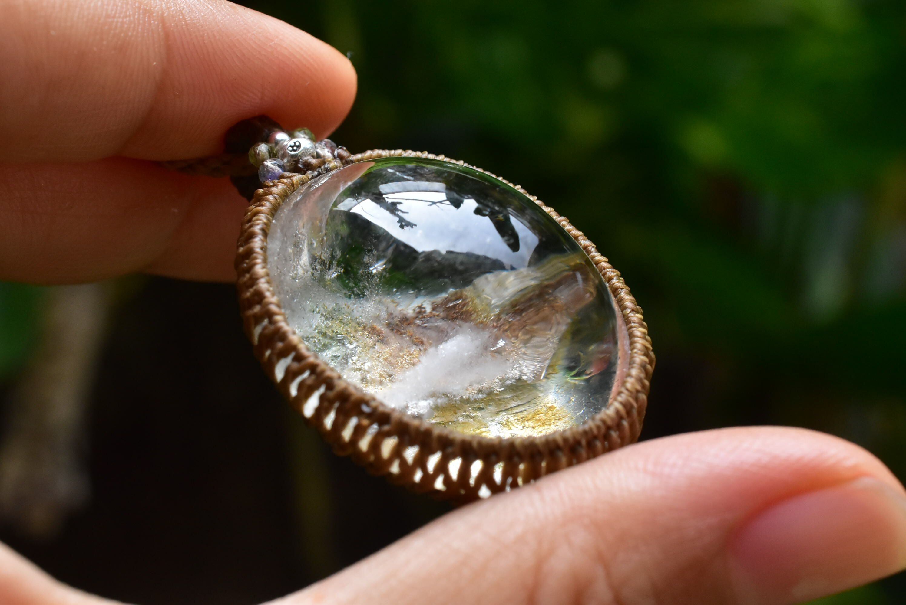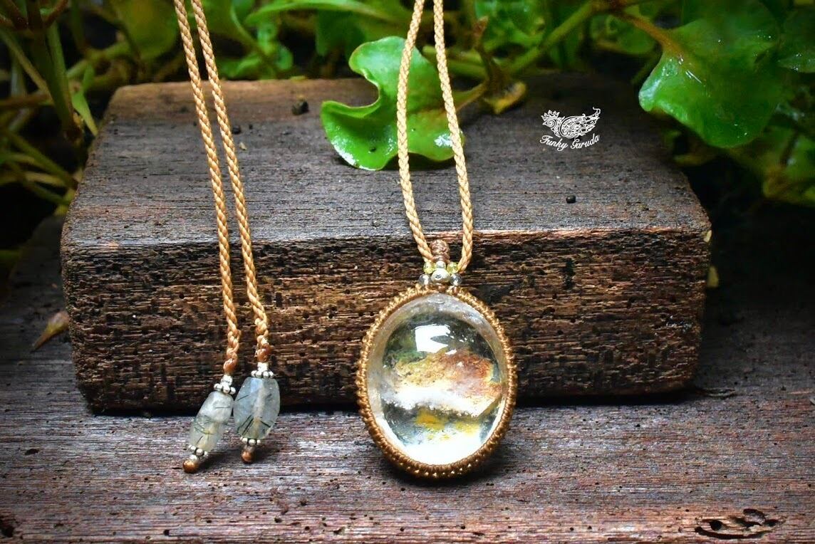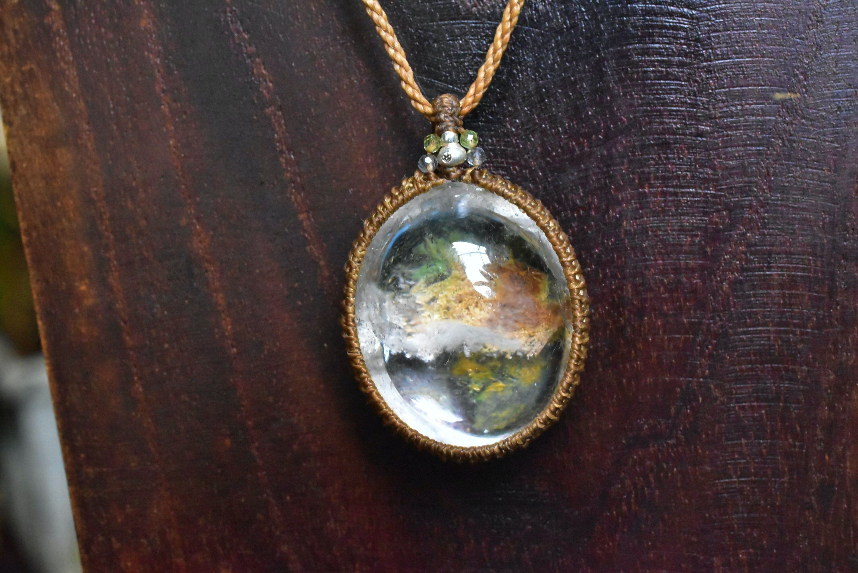 奥行感ある個性的な景色を優しく包むように、シンプルなマクラメ編みペンダントに仕上げました。