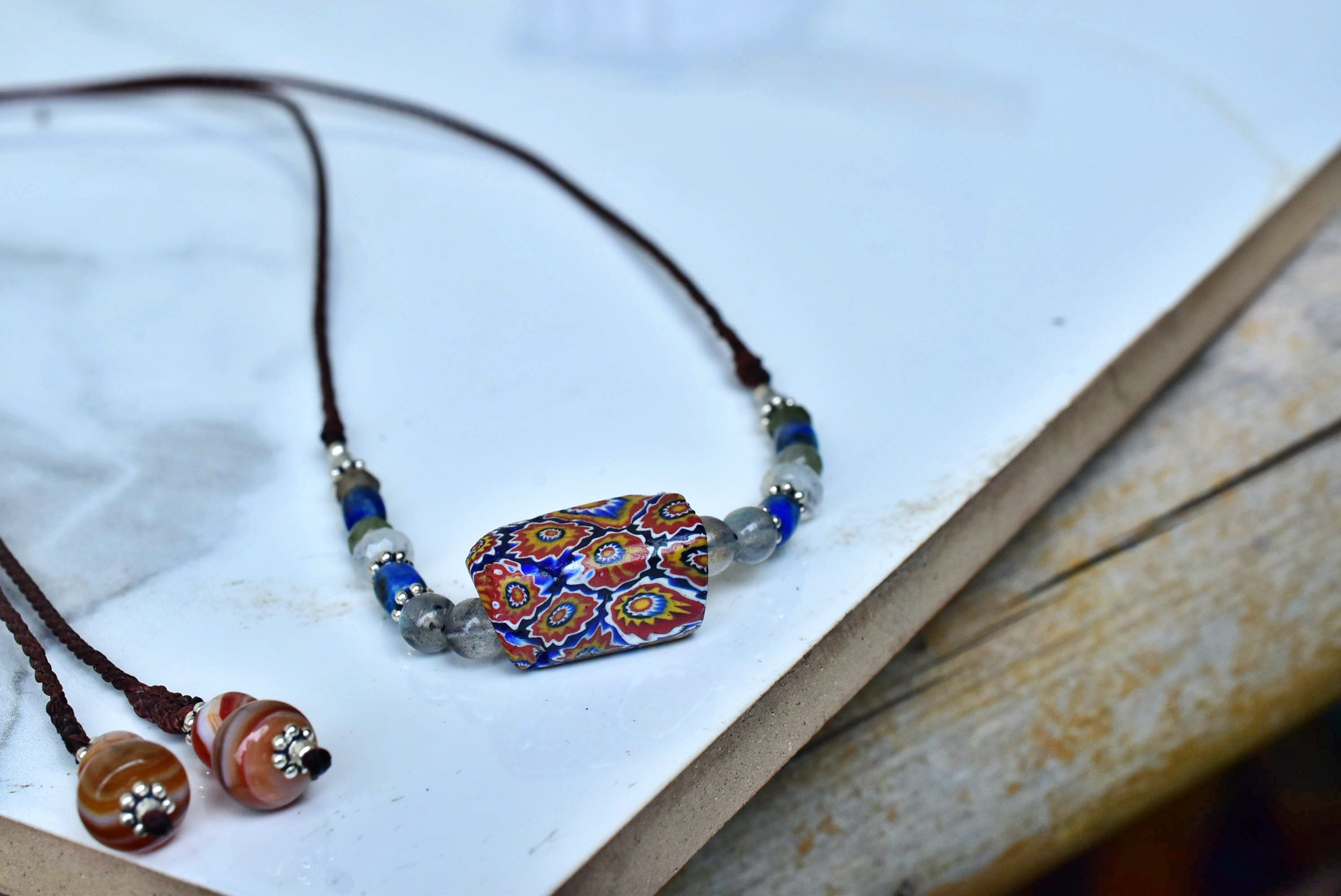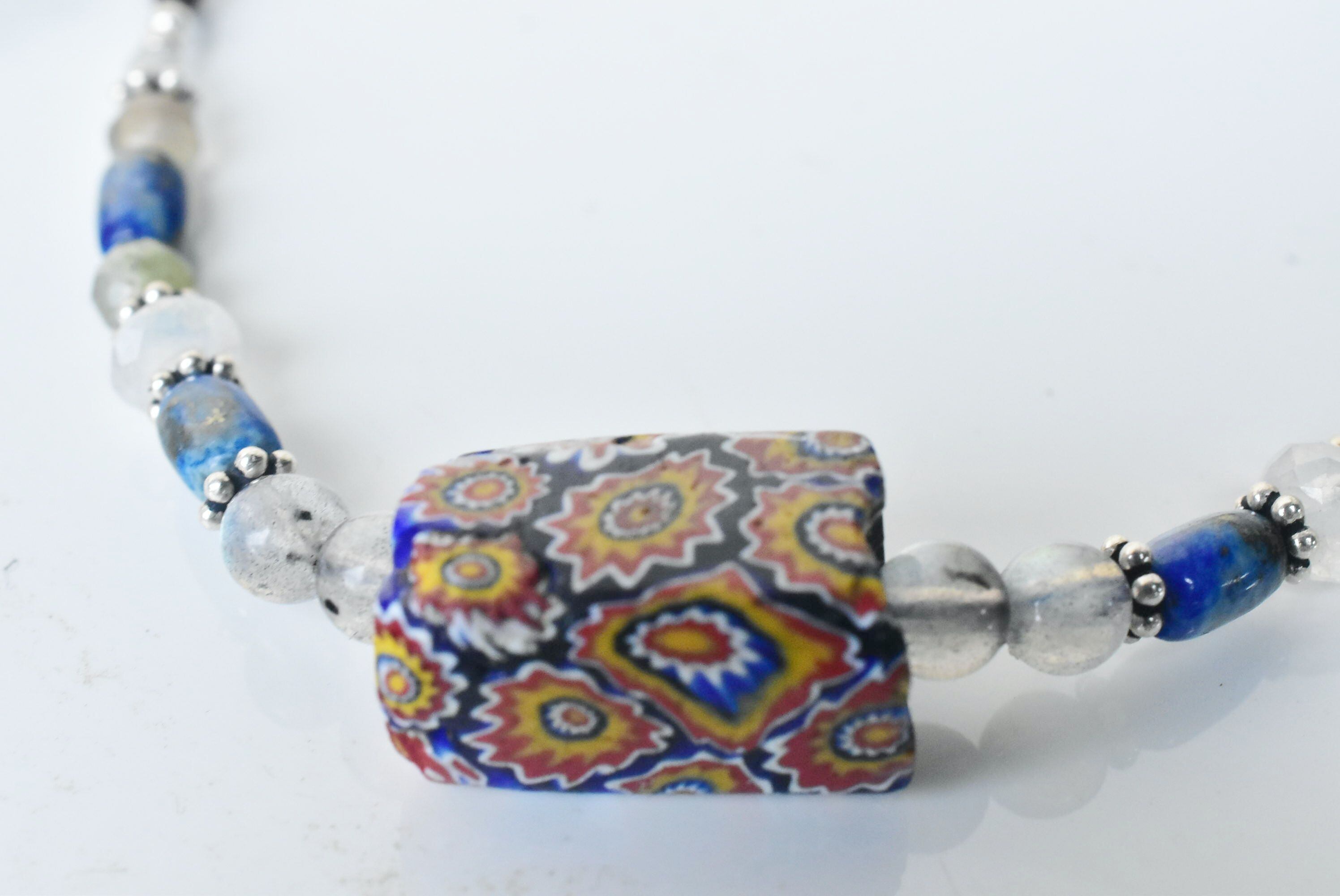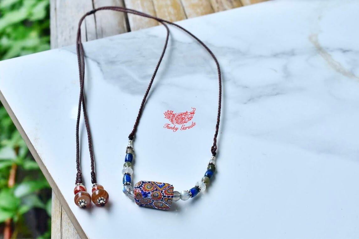 ブルー★モロッコ産アンティークビーズネックレスany001