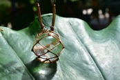◆このたびはゴールドブラウン色の蝋引き糸を使用しマクラメ編み装飾を施しました。