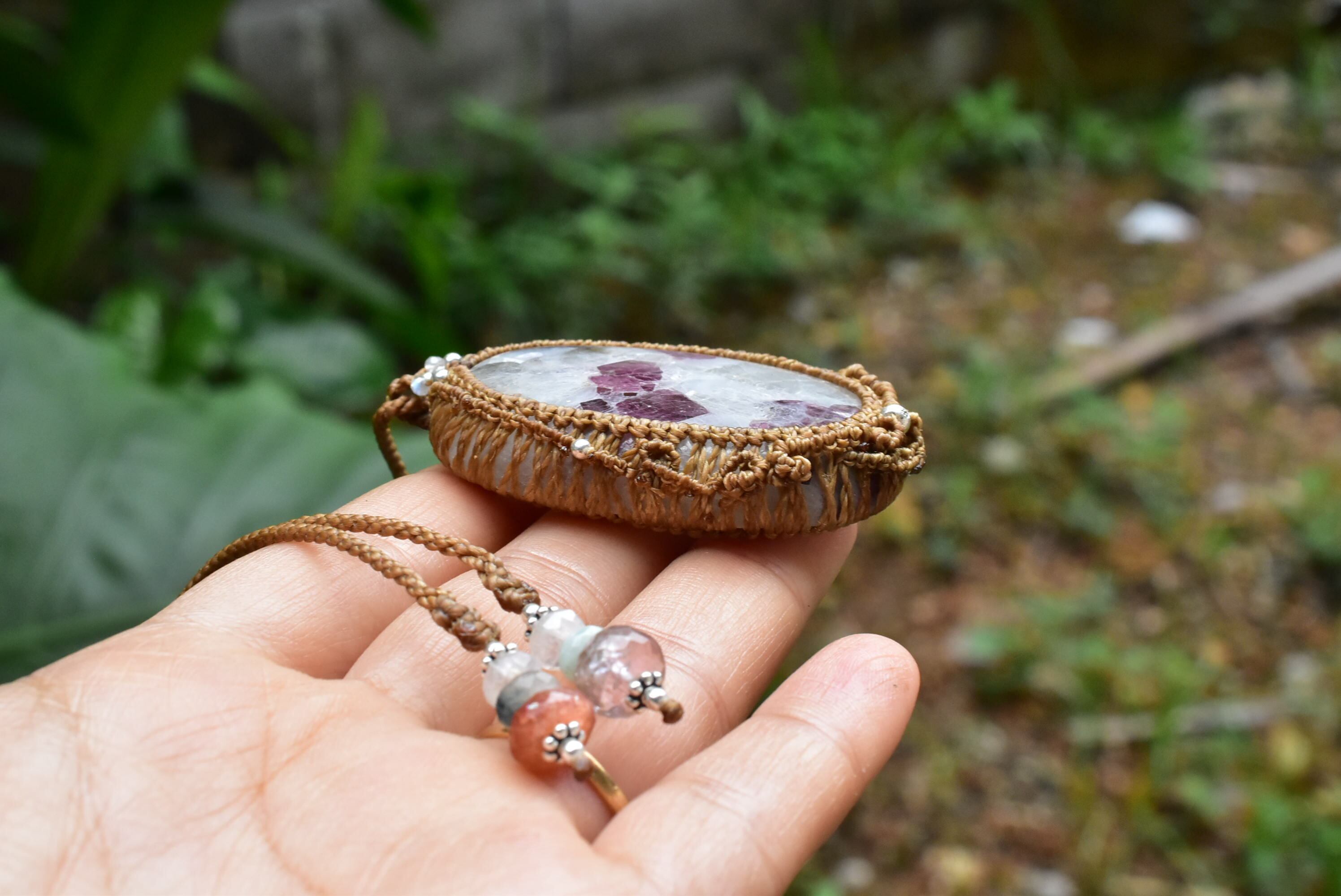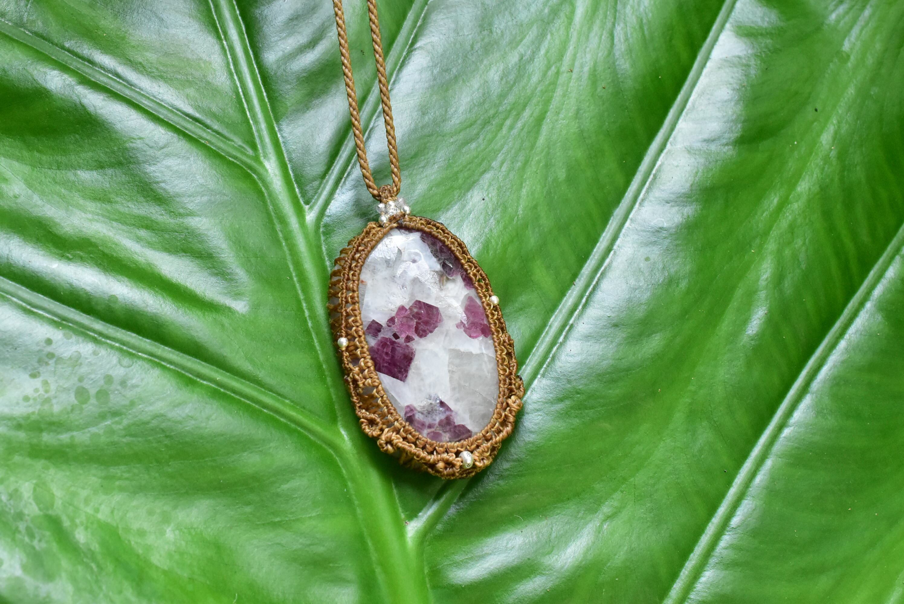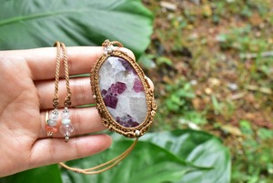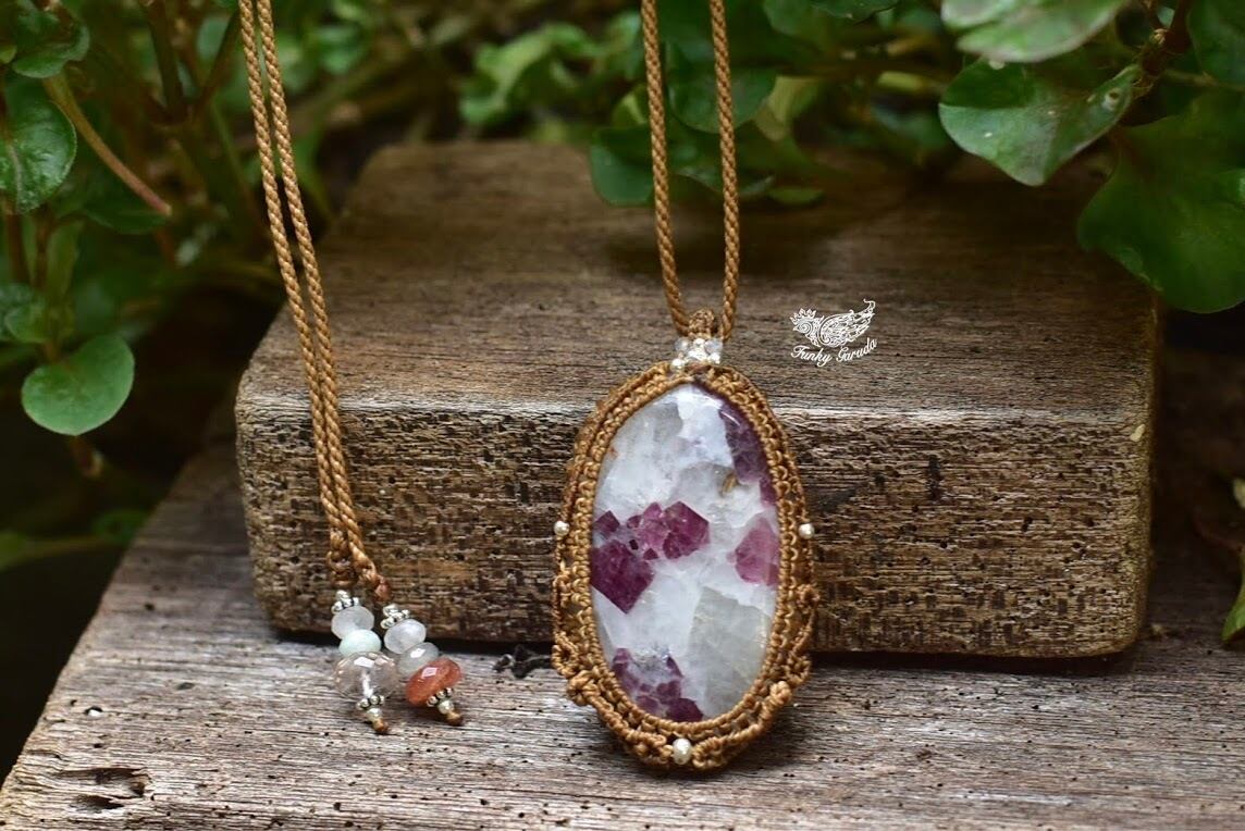 大粒★トルマリンインクォーツ マクラメペンダント tor001