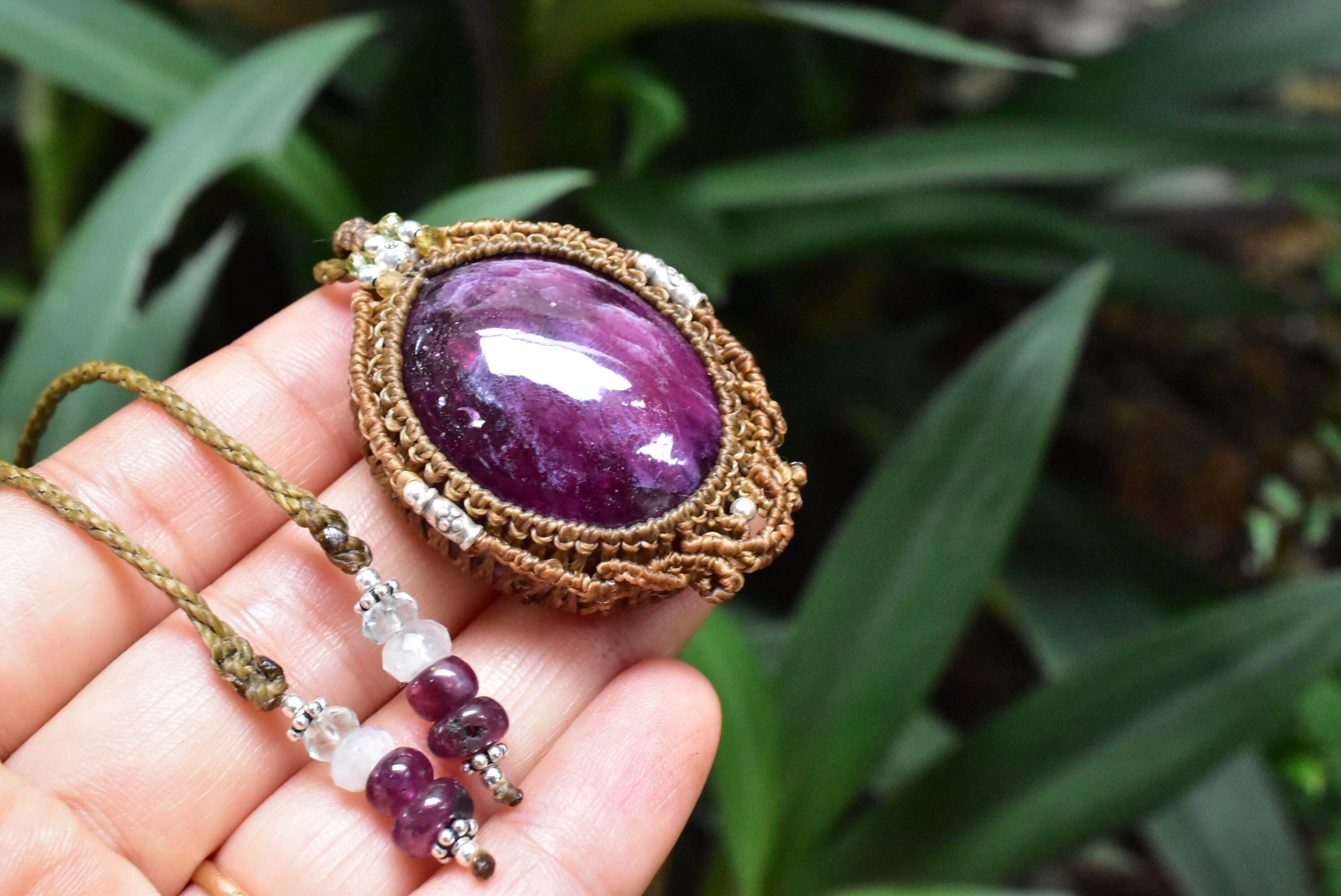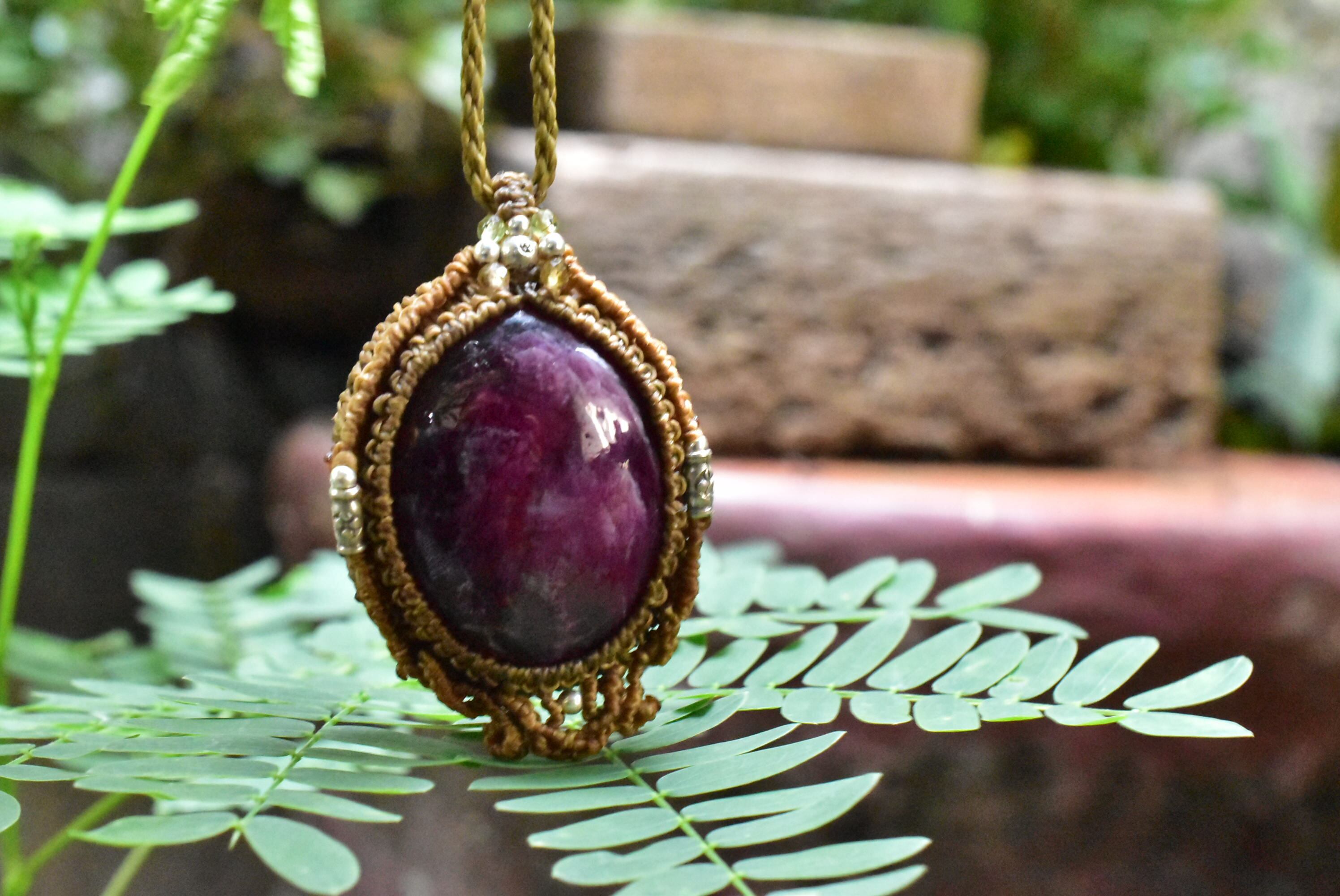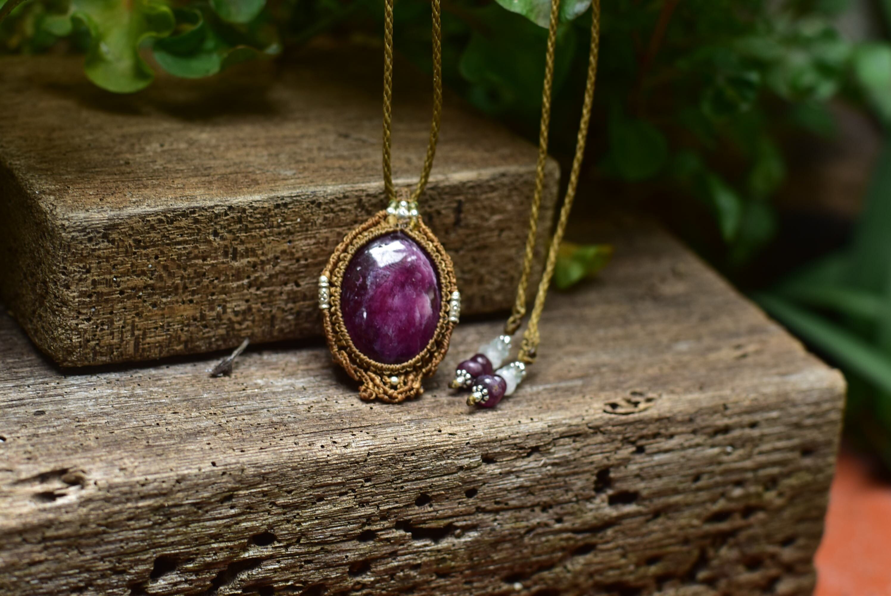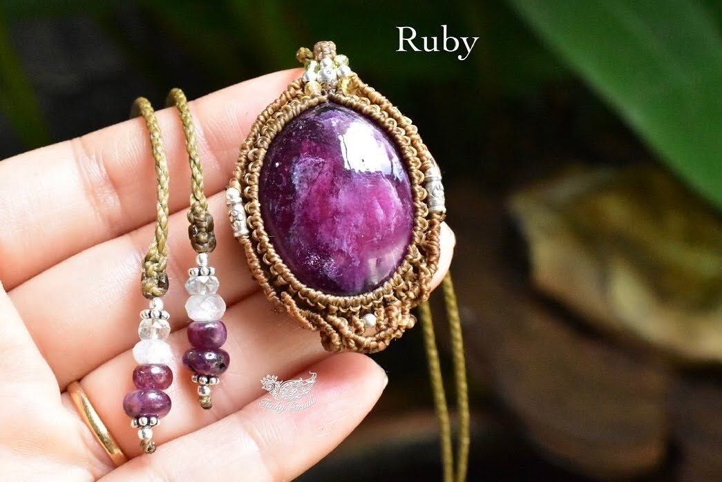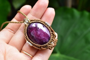 ディープワイン★大粒150ct★アフリカ産ルビー マクラメペンダントruby017