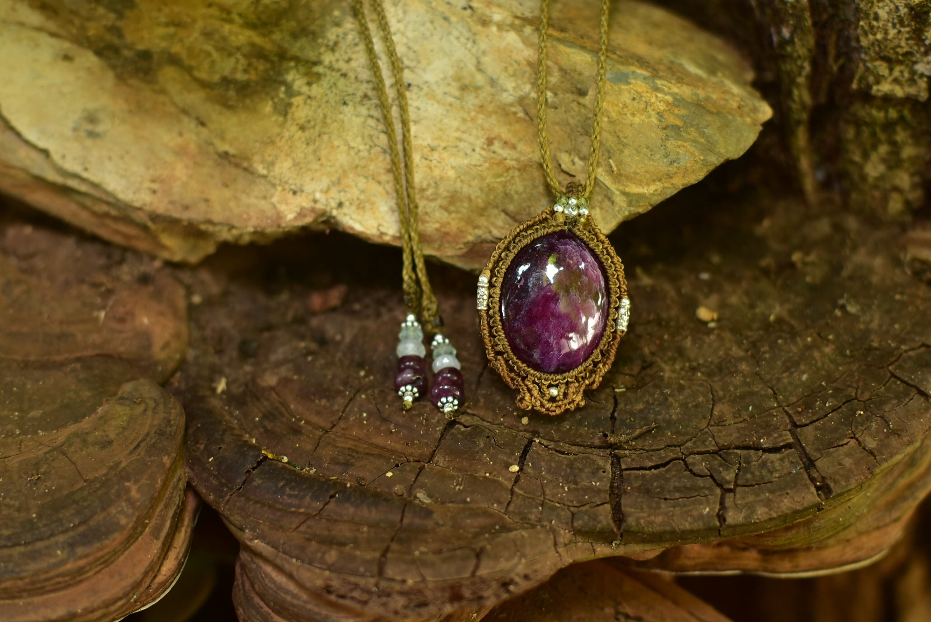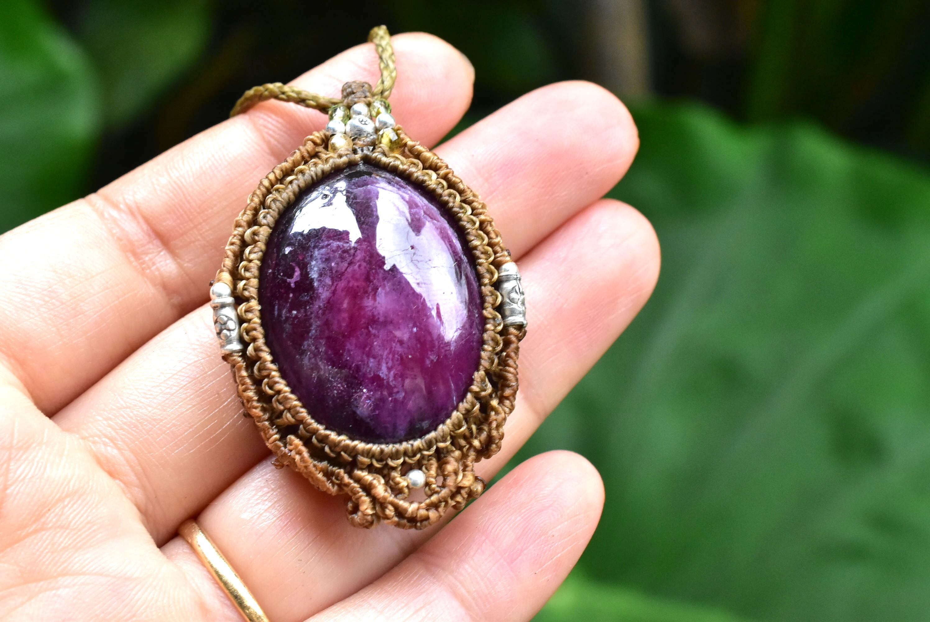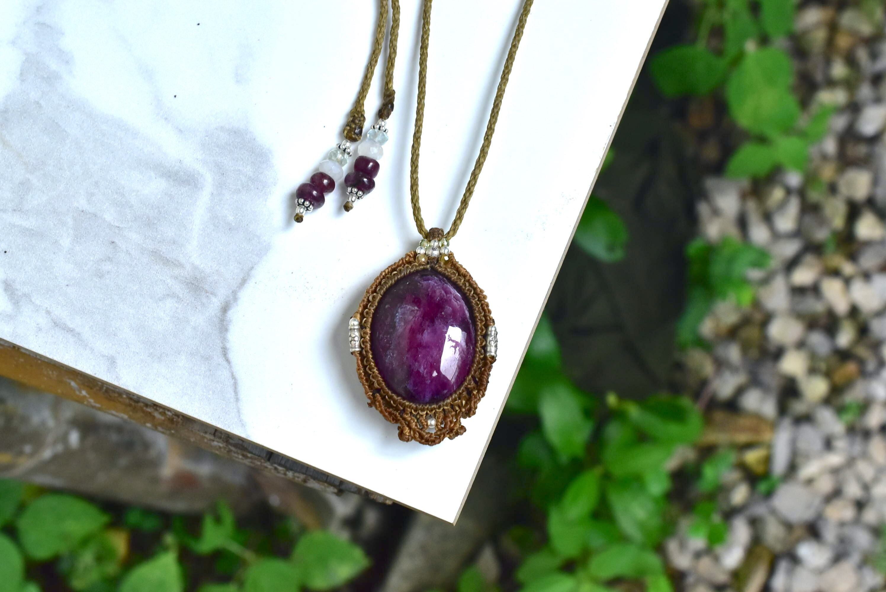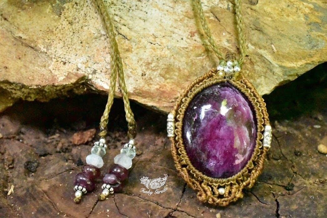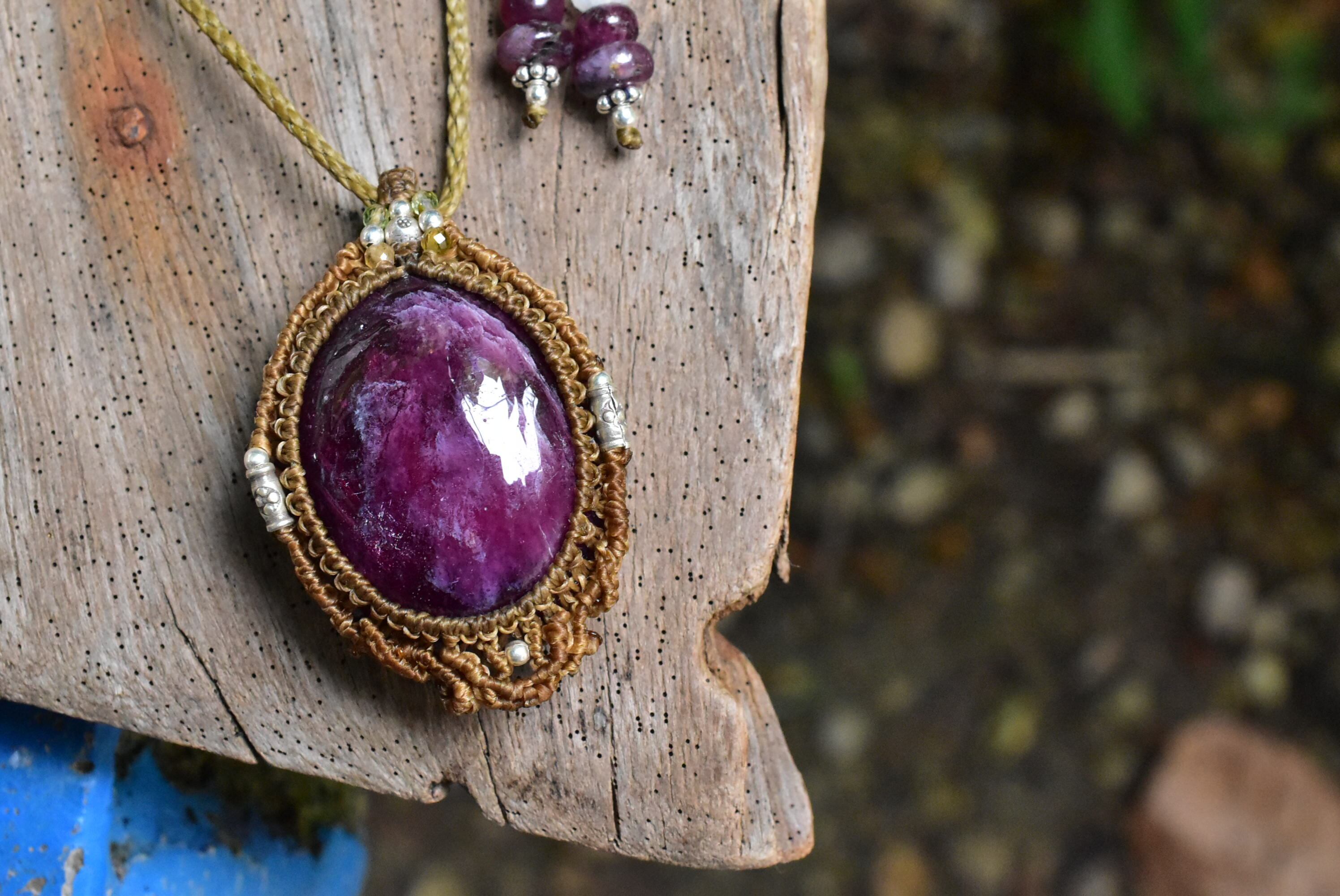 ディープワイン★大粒150ct★アフリカ産ルビー マクラメペンダントruby017