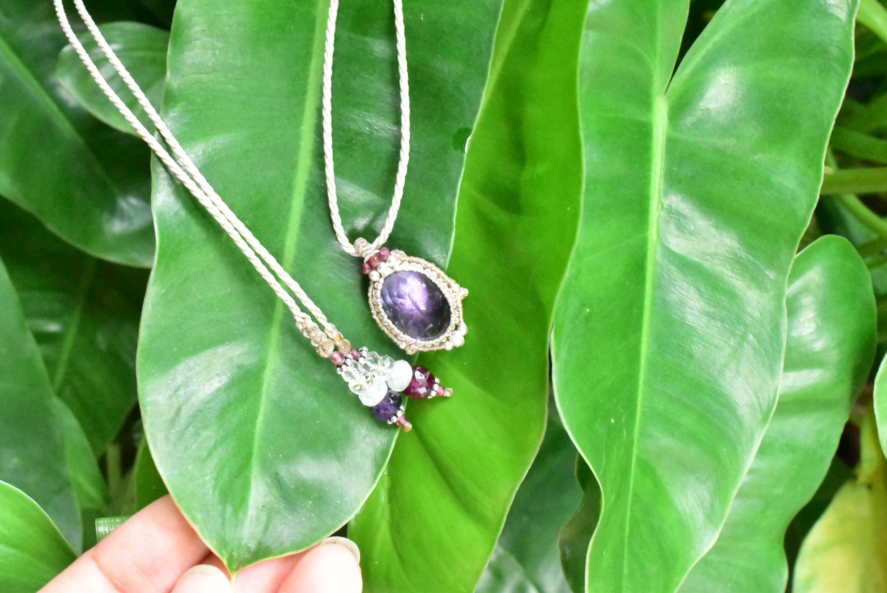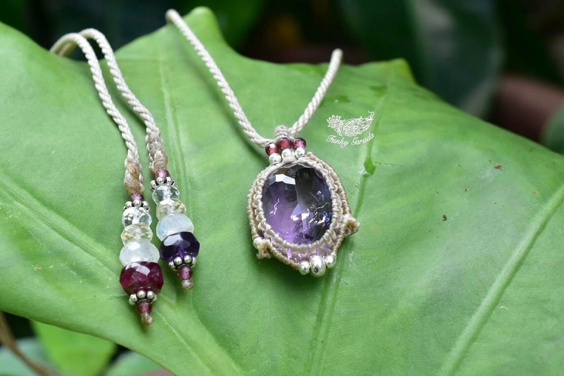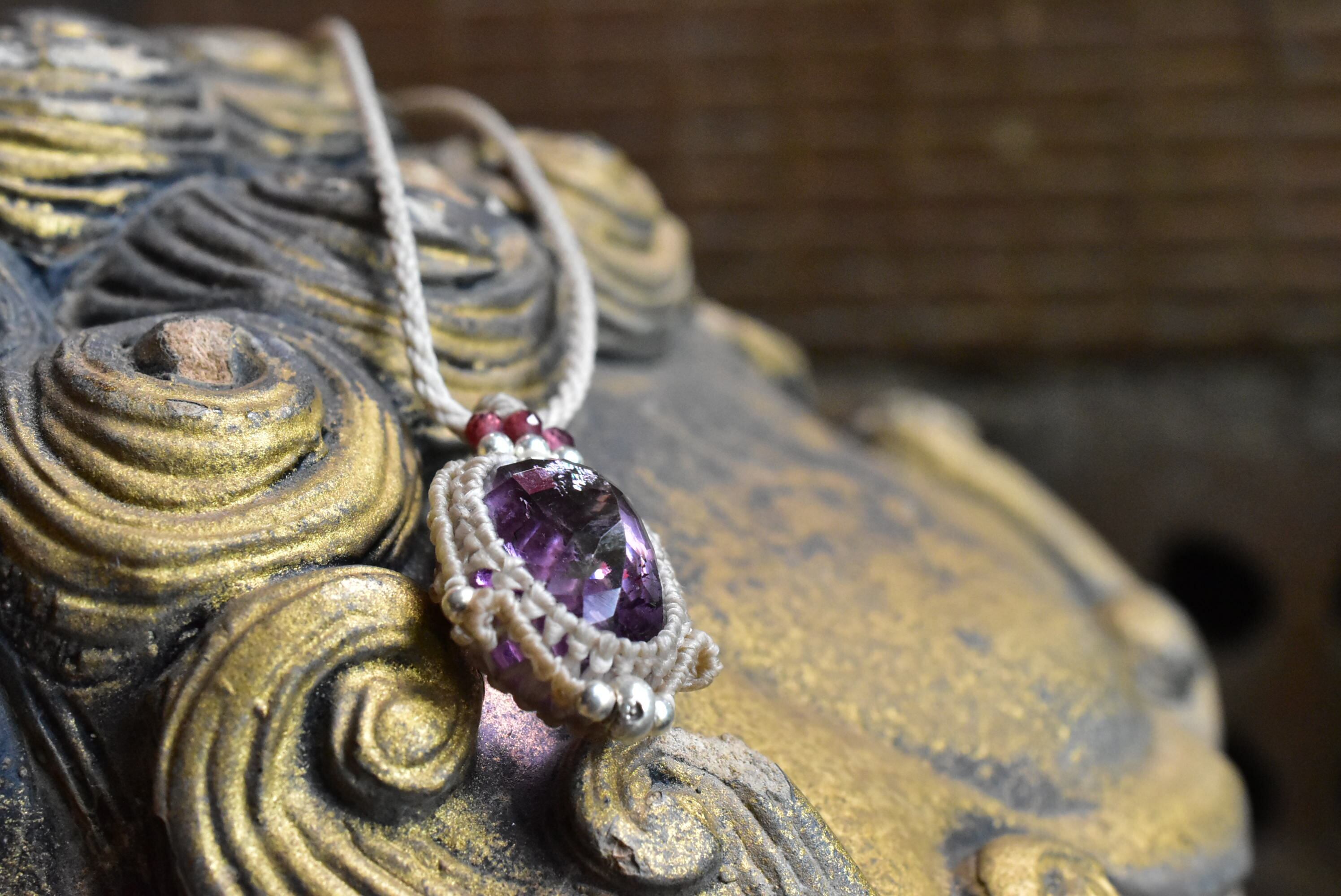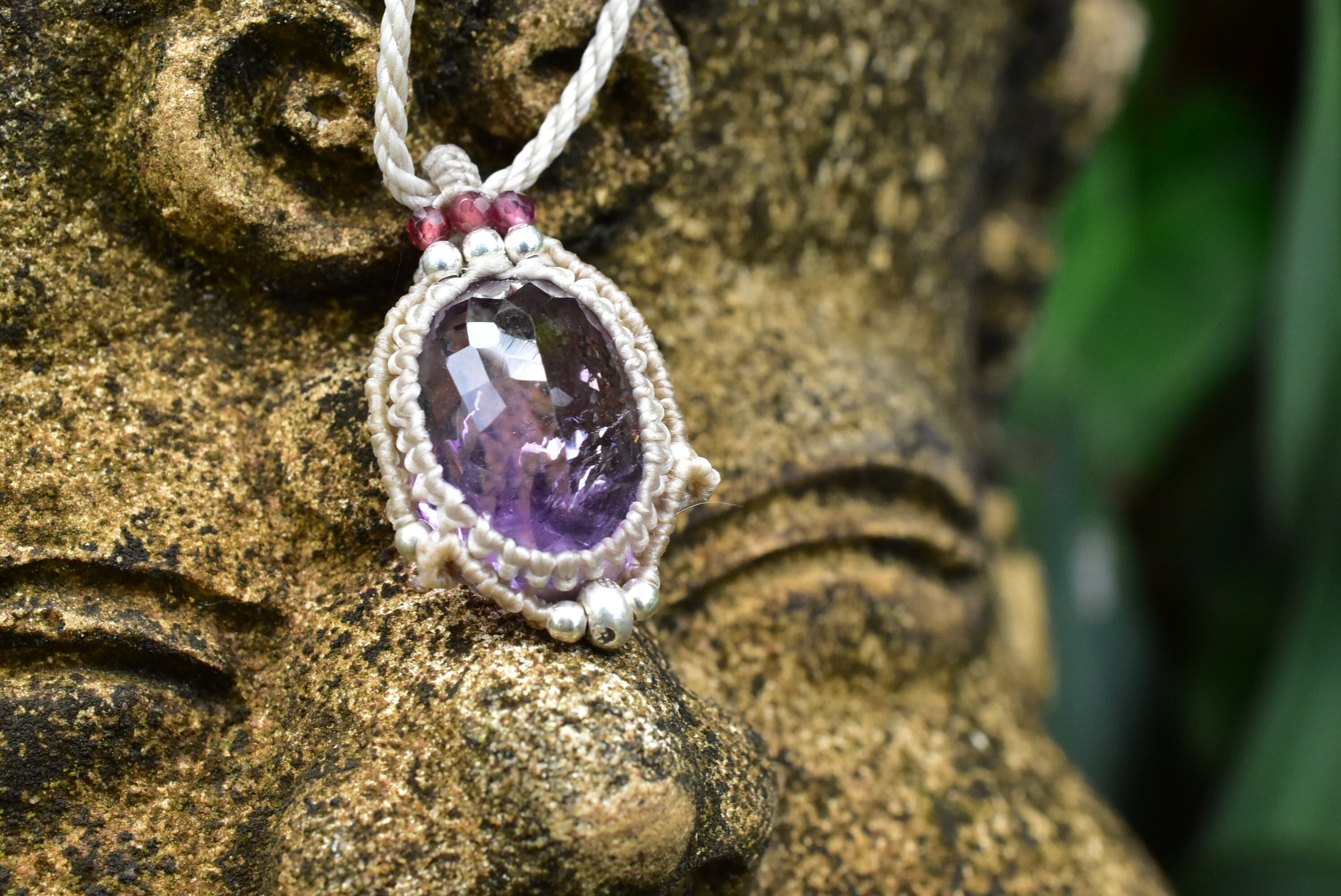 煌めく虹入り★14ct ファセットカット アメジスト マクラメペンダントame006