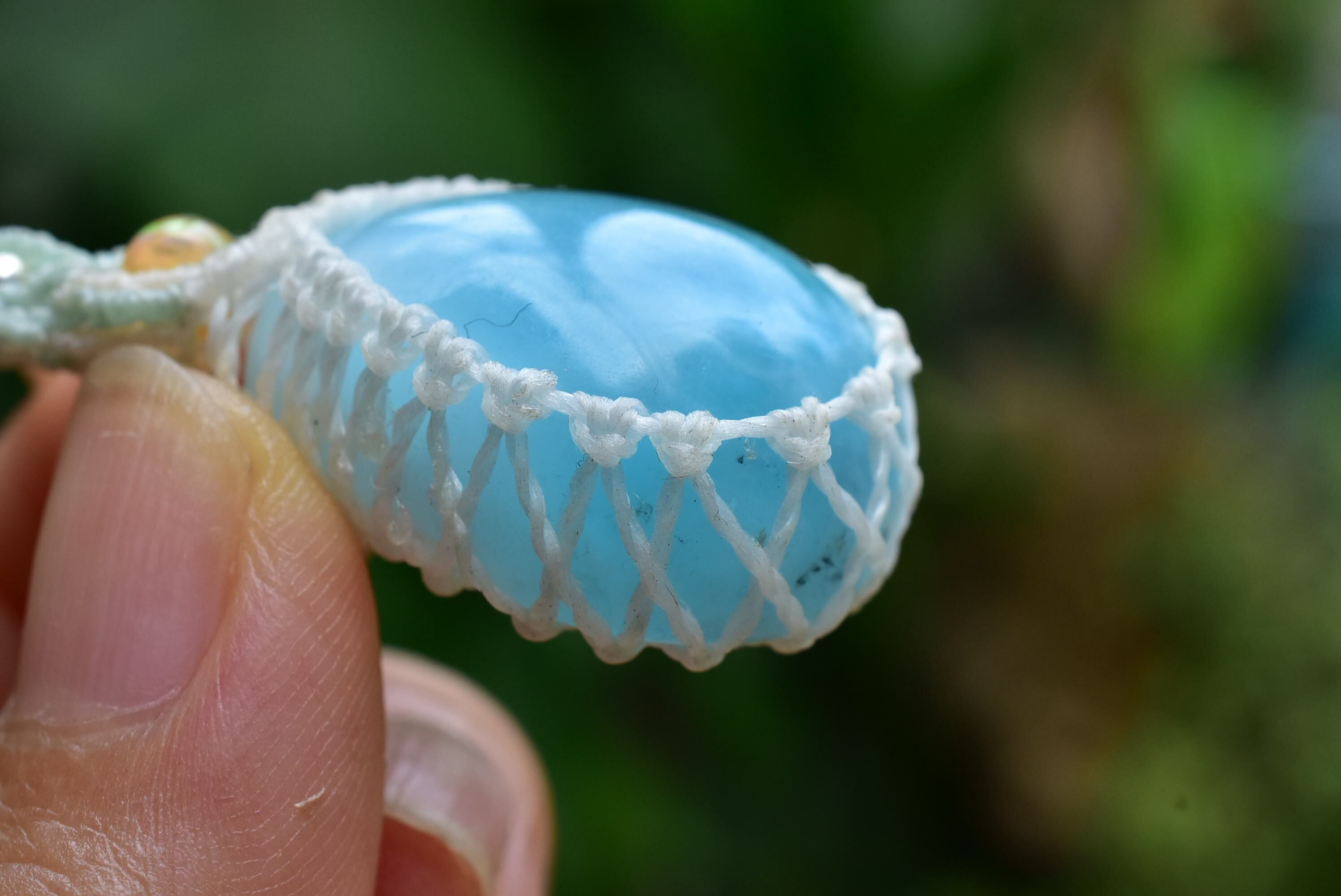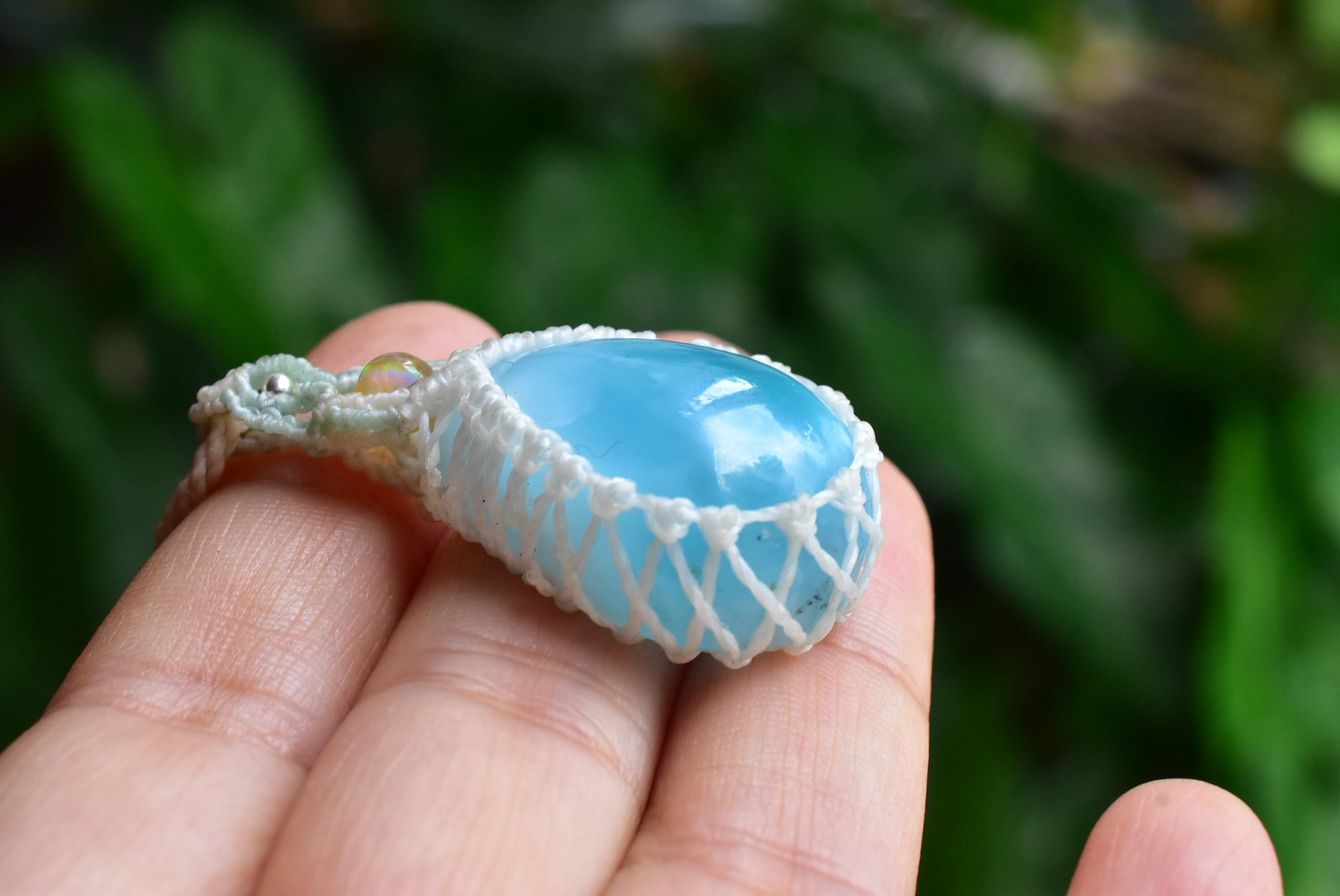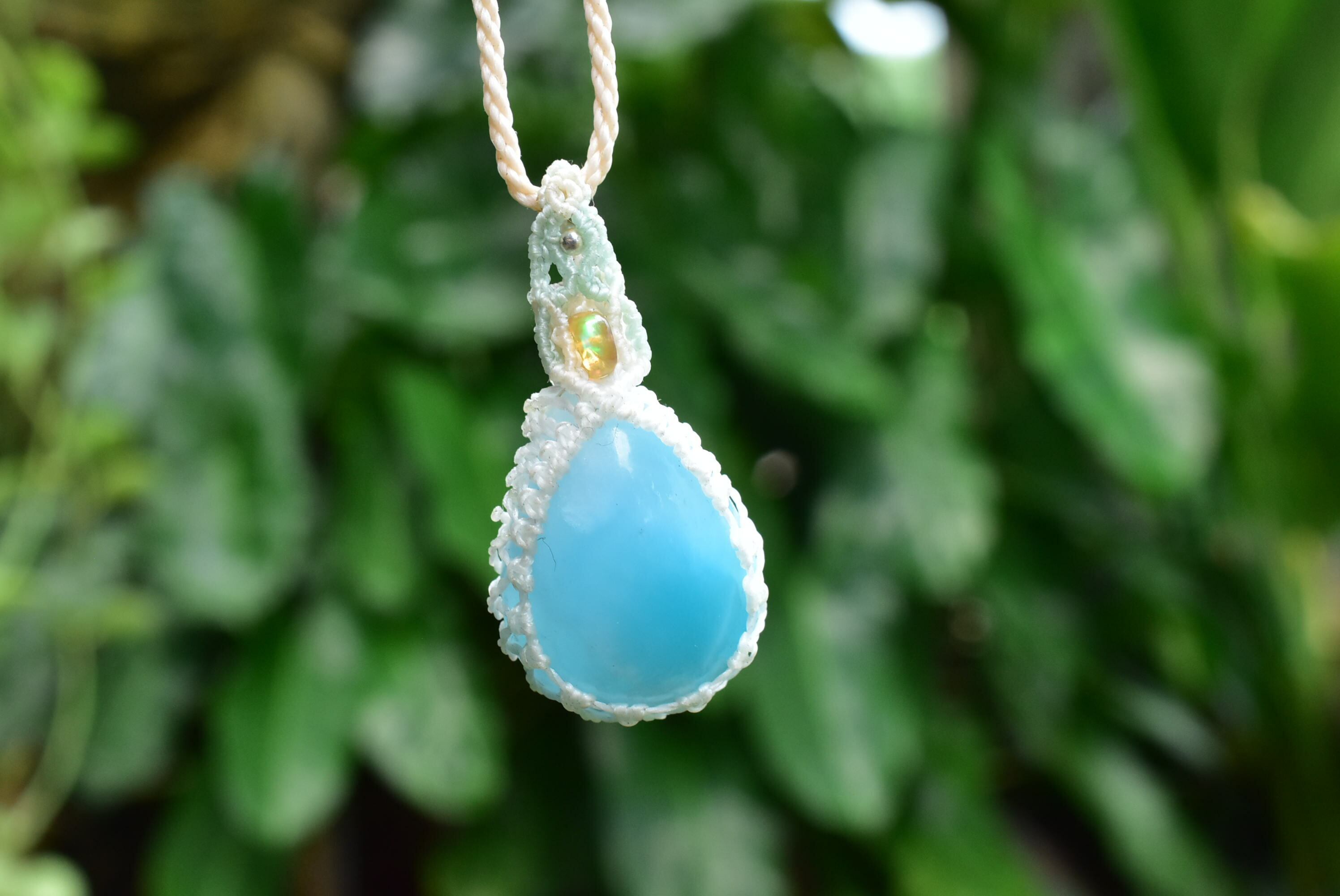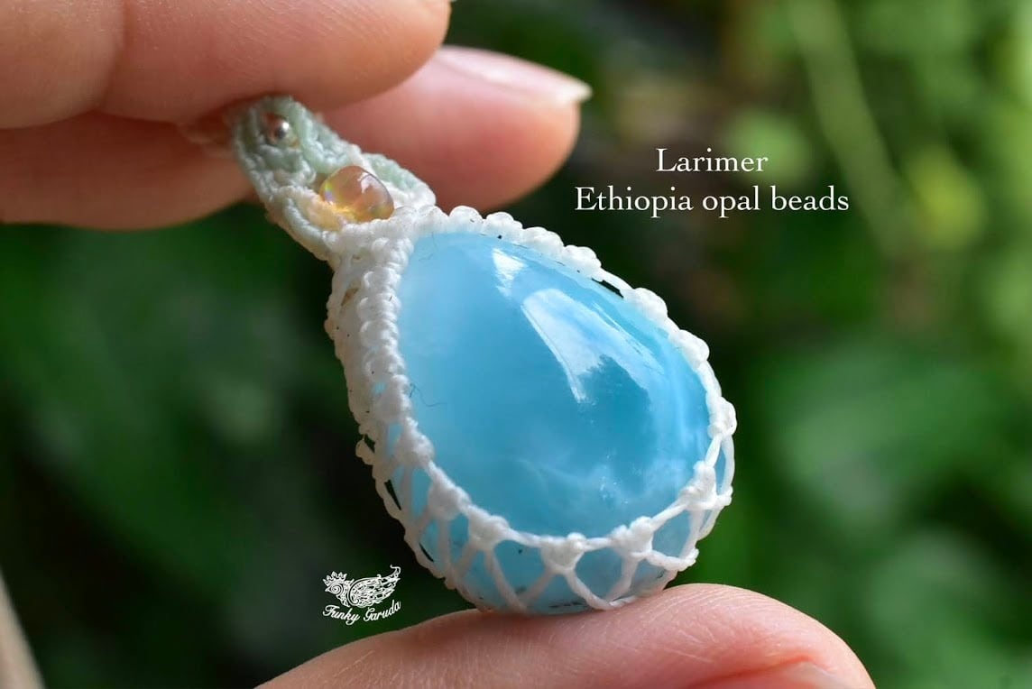 透明感ラリマーとエチオピアンオパール ビーズ マクラメペンダントlari038